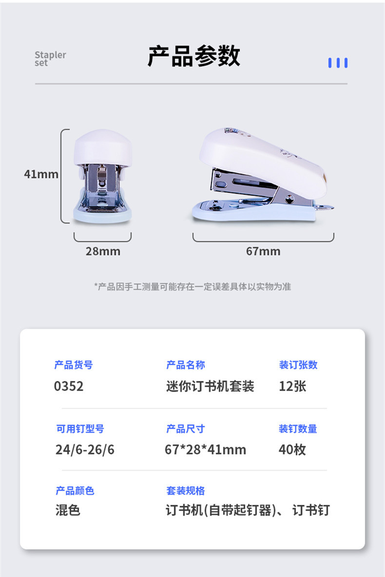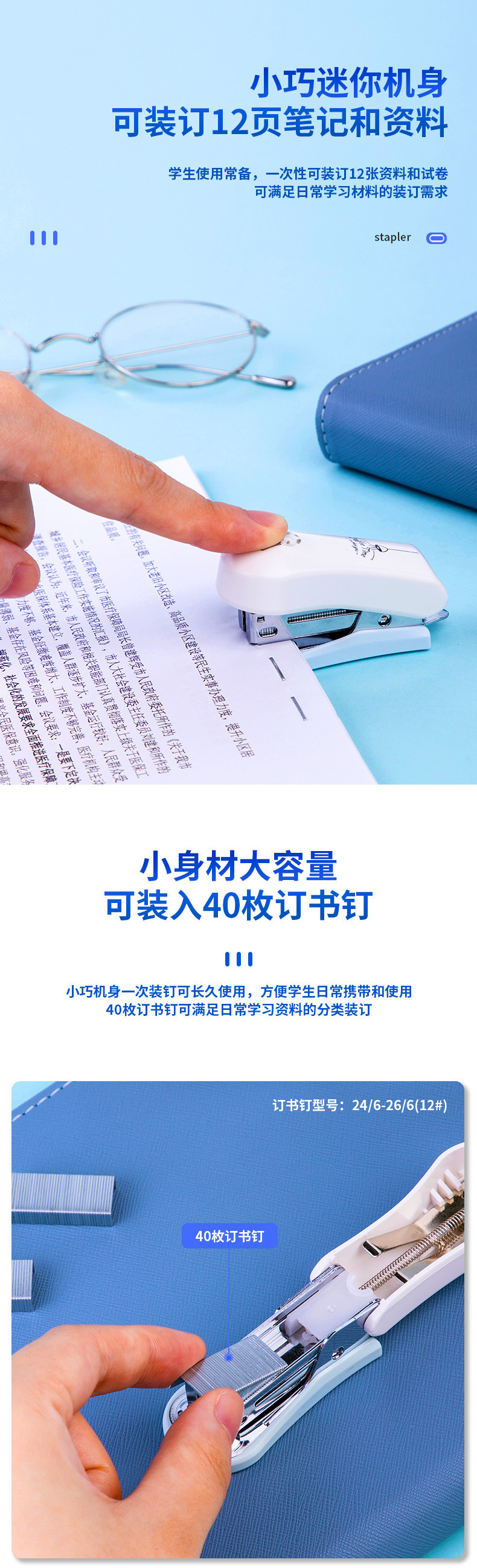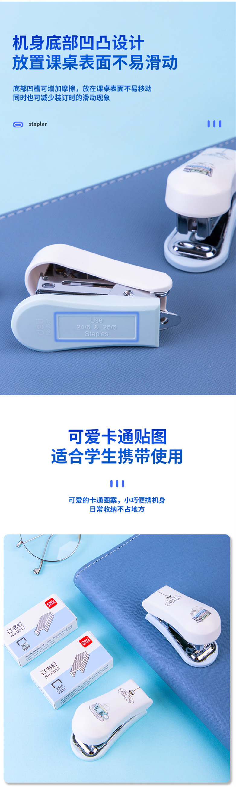 델리 0352 스테이플러 만화 작은 학생 홈 네일 풀러 12 # 바인딩 기계 스테이플러 세트 함께 제공