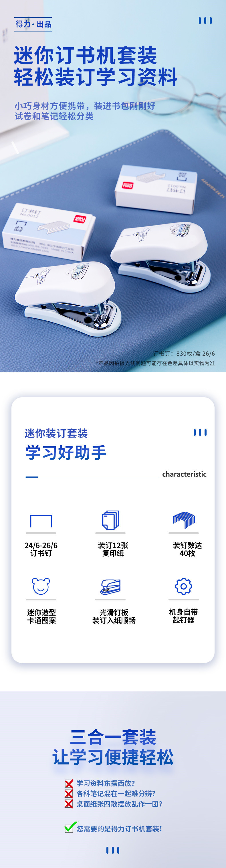 델리 0352 스테이플러 만화 작은 학생 홈 네일 풀러 12 # 바인딩 기계 스테이플러 세트 함께 제공스토어 가기