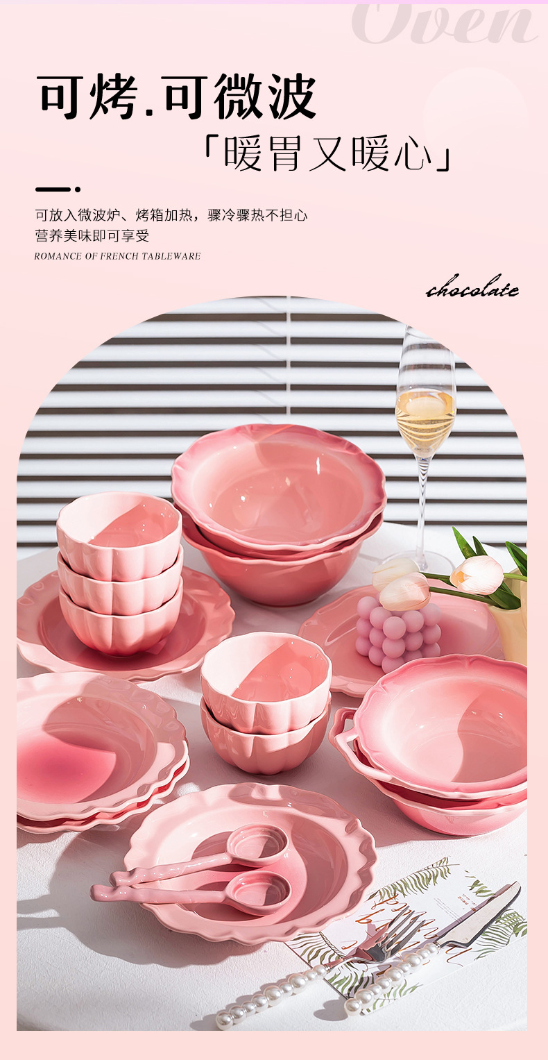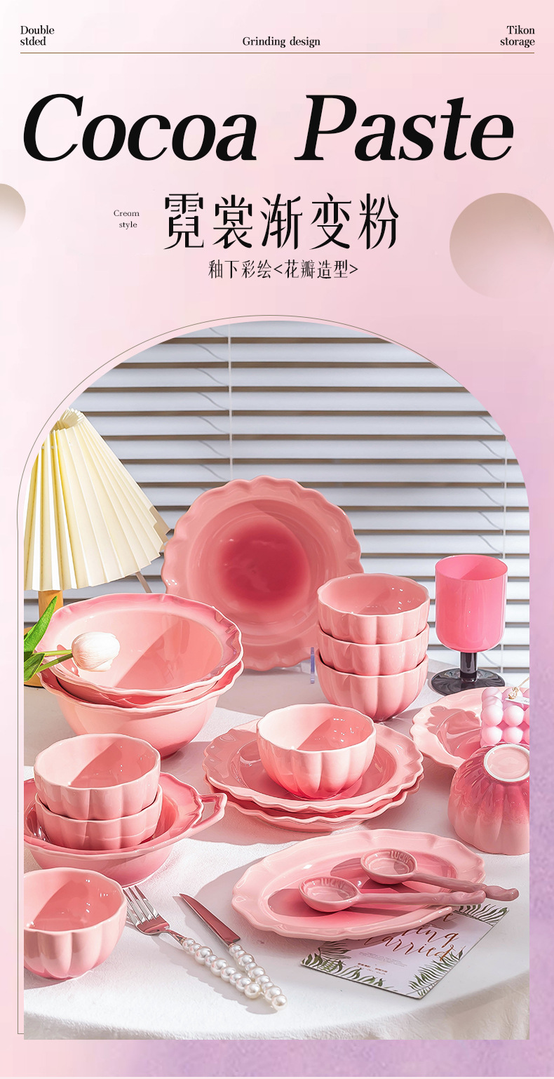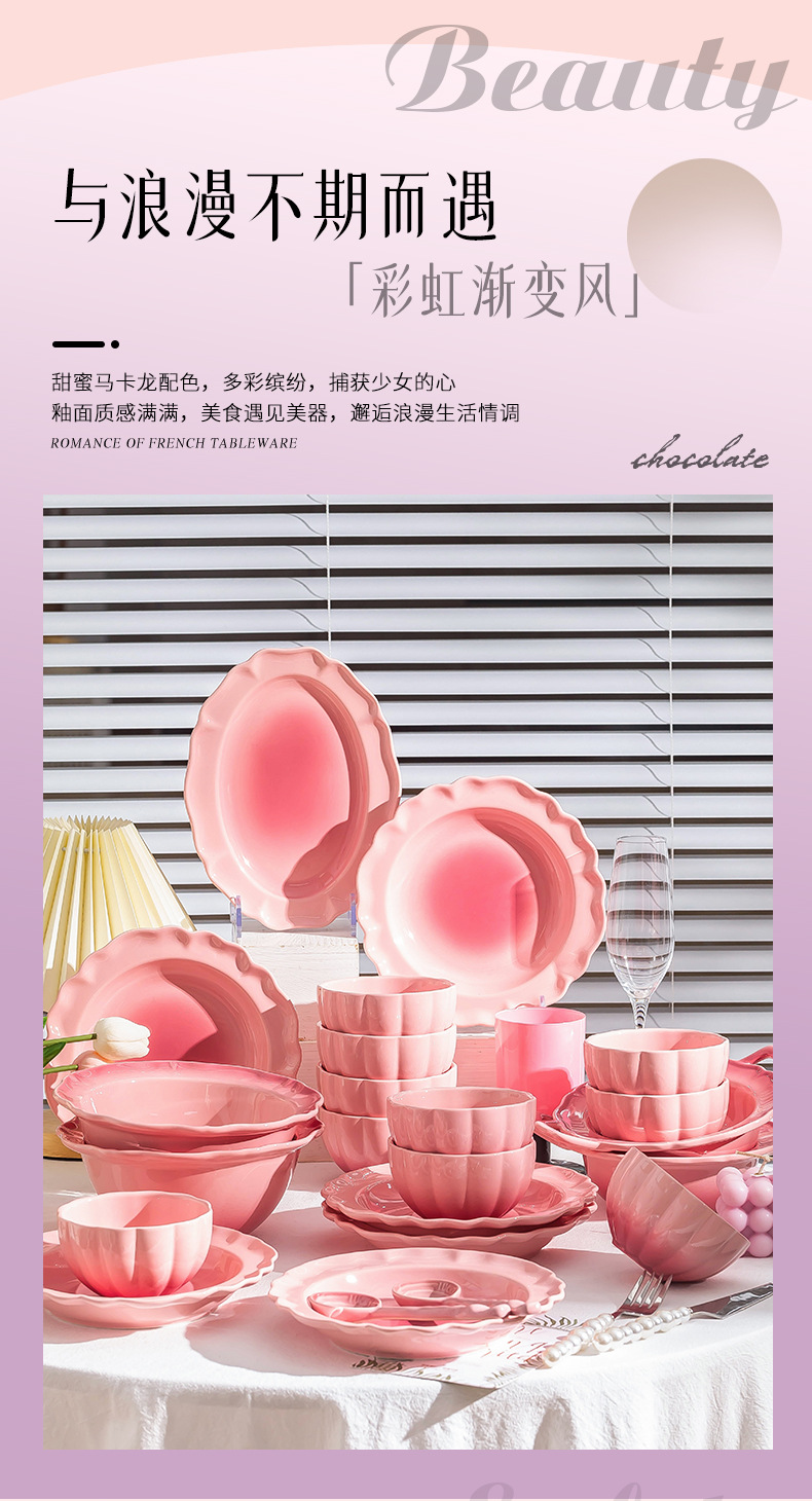 • 8 인치 그라디언트 파우더 꽃잎 플레이트 (전자 레인지 식기 세척기에 넣을 수 있음)