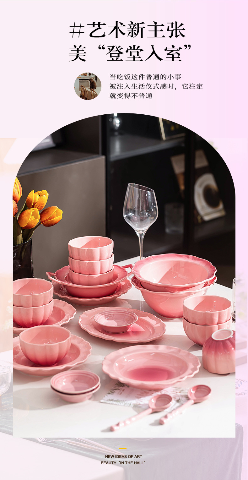 강모 핑크 보라색 식기 세라믹 밥 그릇 가구 무료 일치하는 높은 모양의 크림 스타일 그릇 접시 가정용 도매
