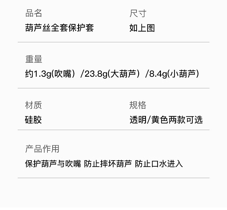 • 하나의 노란색 마우스 피스 + 하나의 크고 작은 보호 슬리브