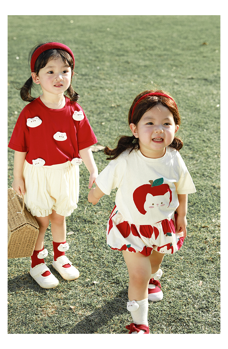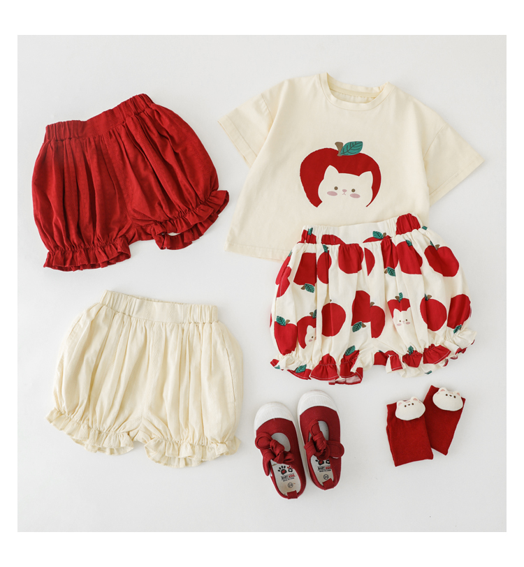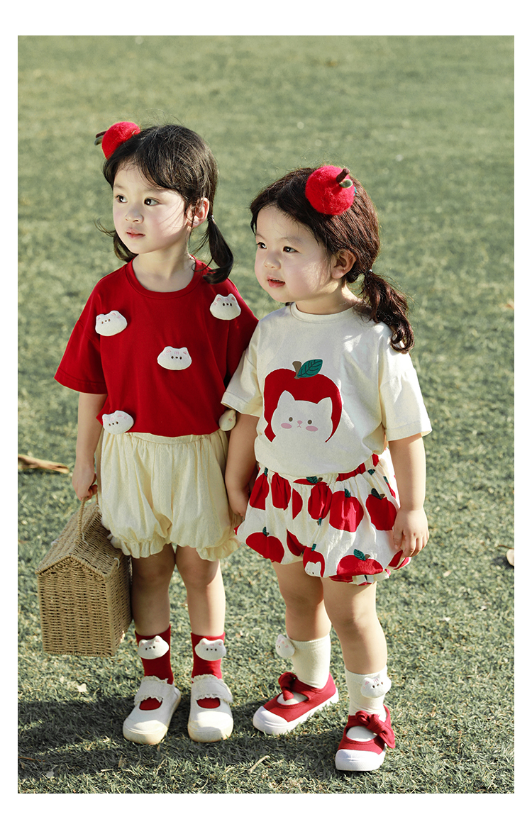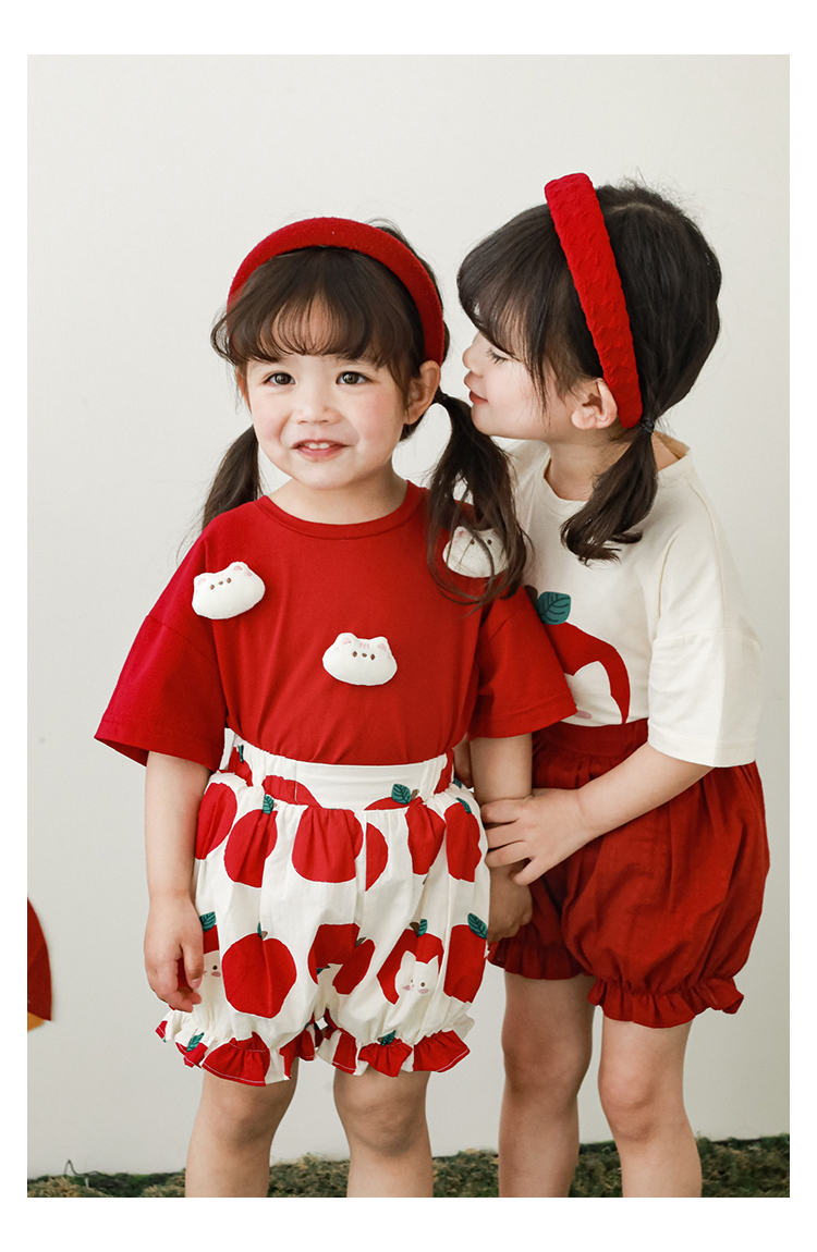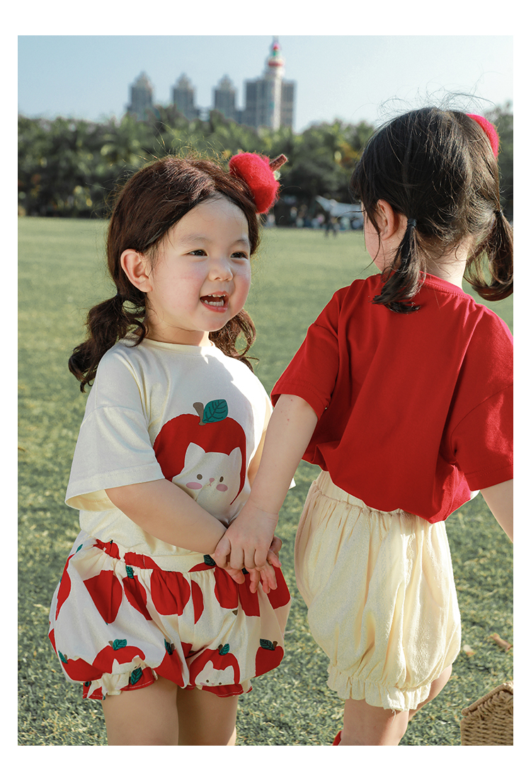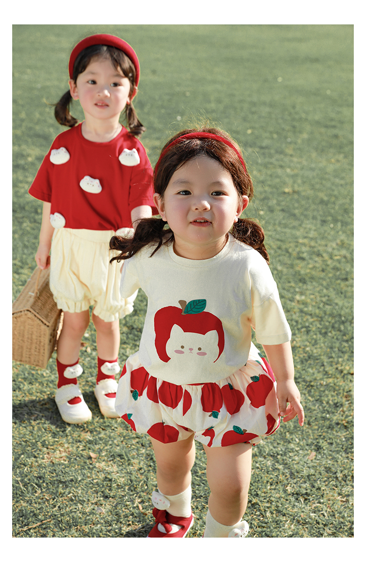 Wuri Boo Girls Apple 시리즈 세트 여름 아기 귀여운 풀 프린트 티셔츠 어린이 느슨한 캐주얼 바지