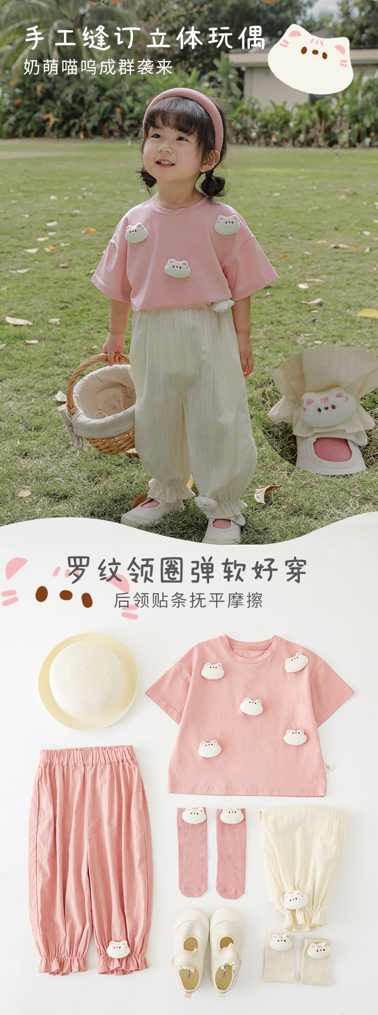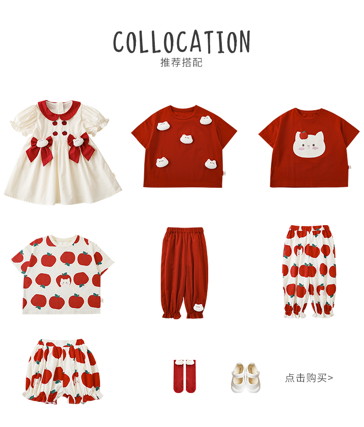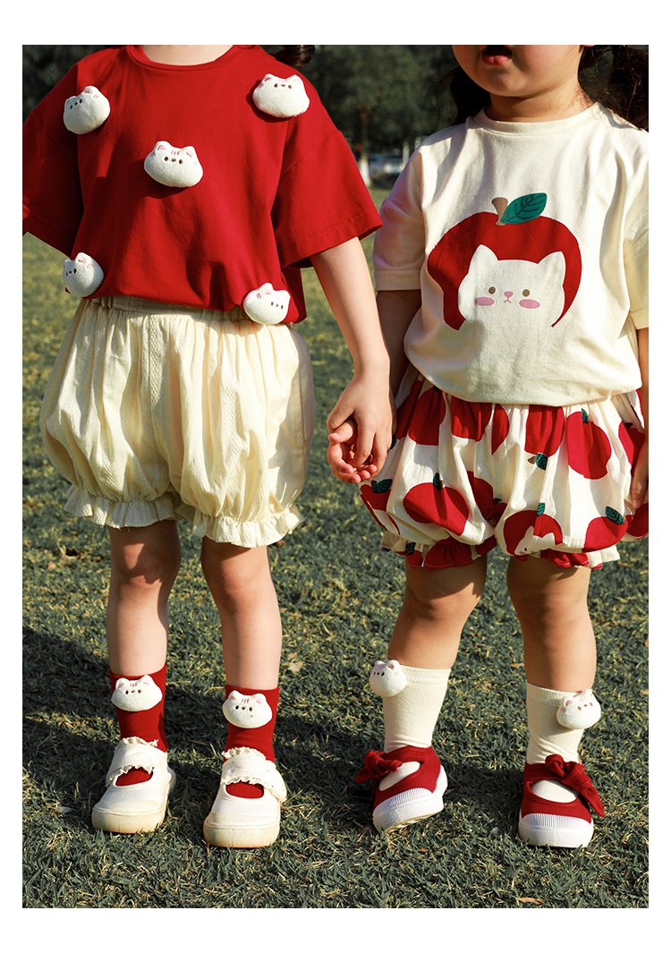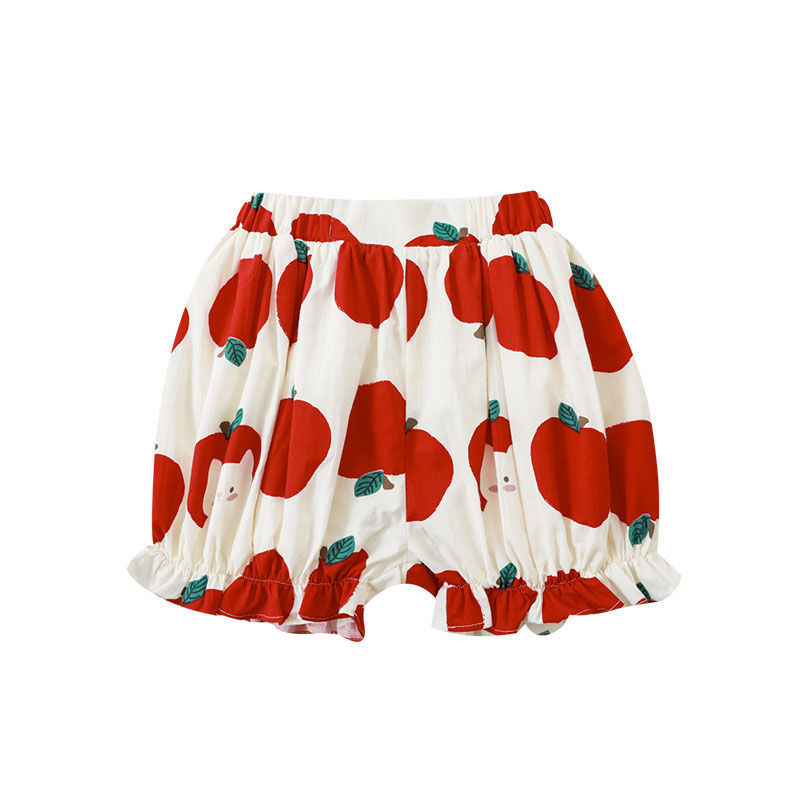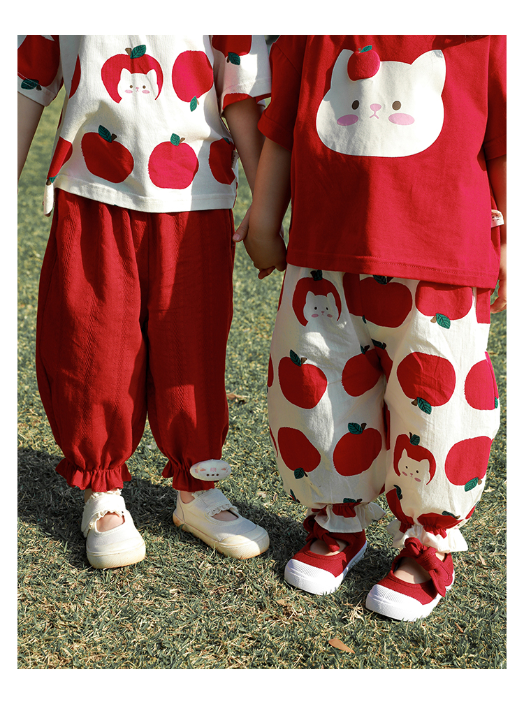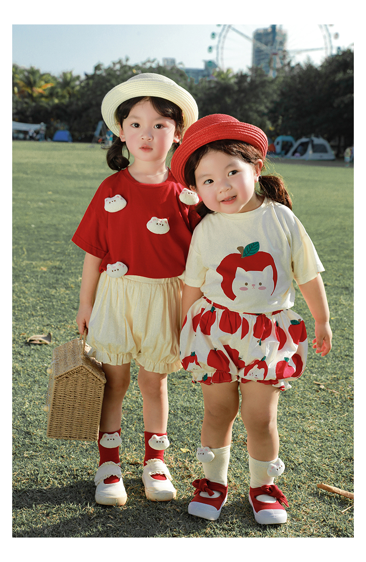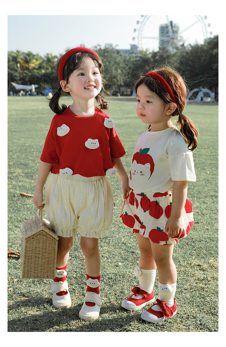 Wuri Boo Girls Apple 시리즈 세트 여름 아기 귀여운 풀 프린트 티셔츠 어린이 느슨한 캐주얼 바지