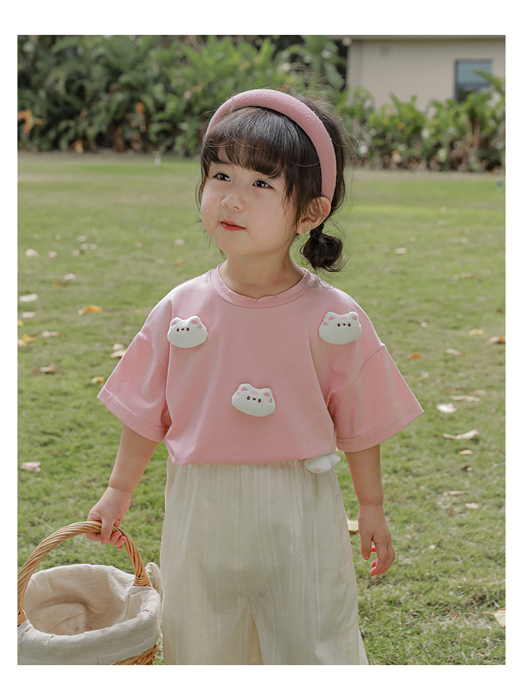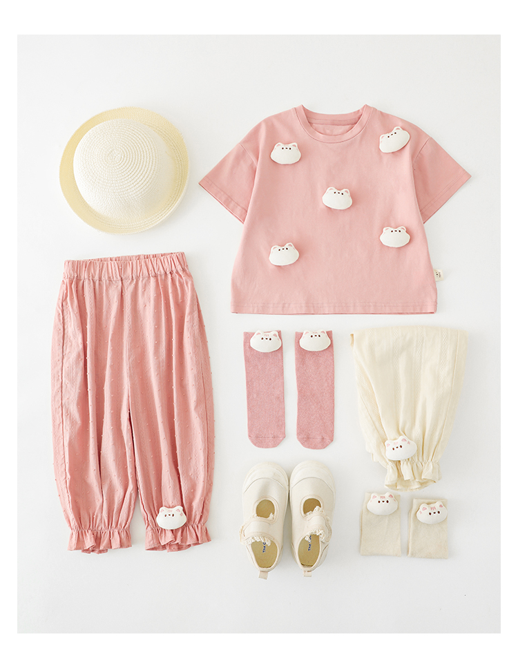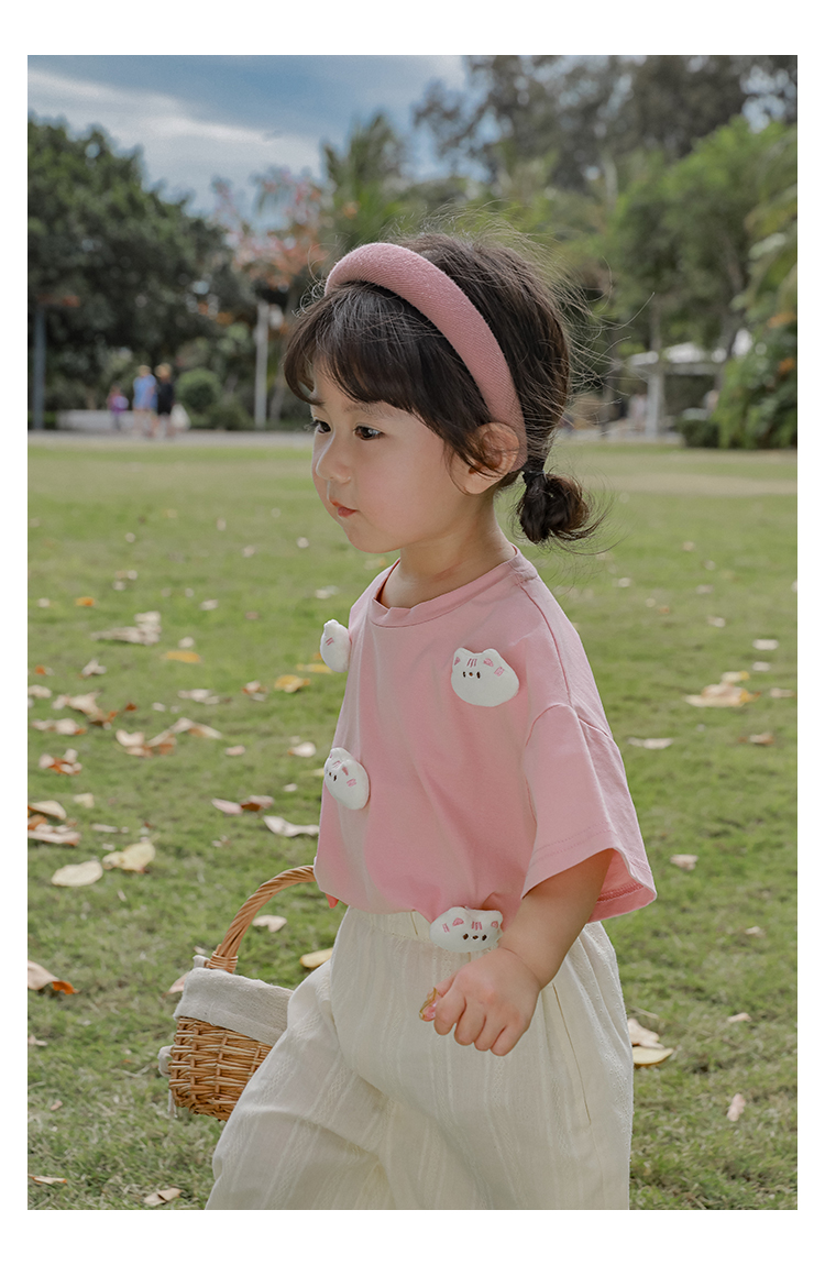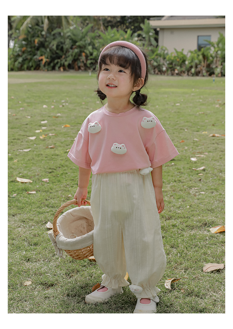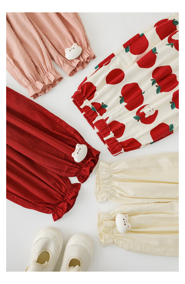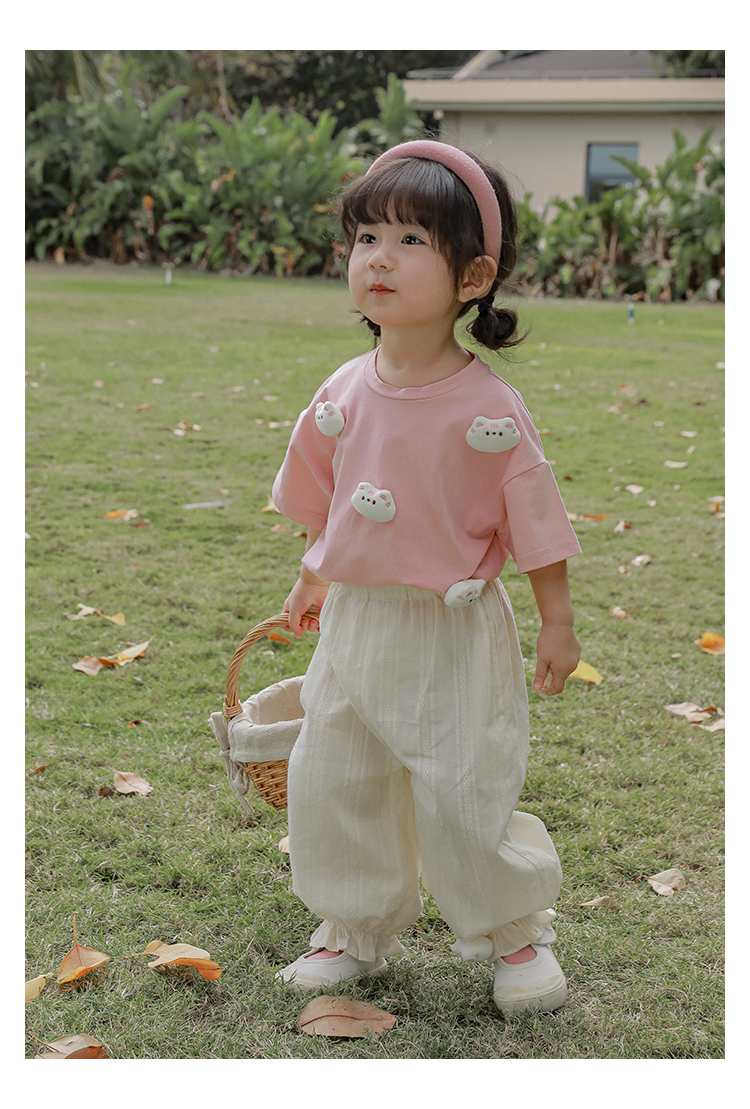 Wuri Boo Girls Apple 시리즈 세트 여름 아기 귀여운 풀 프린트 티셔츠 어린이 느슨한 캐주얼 바지
