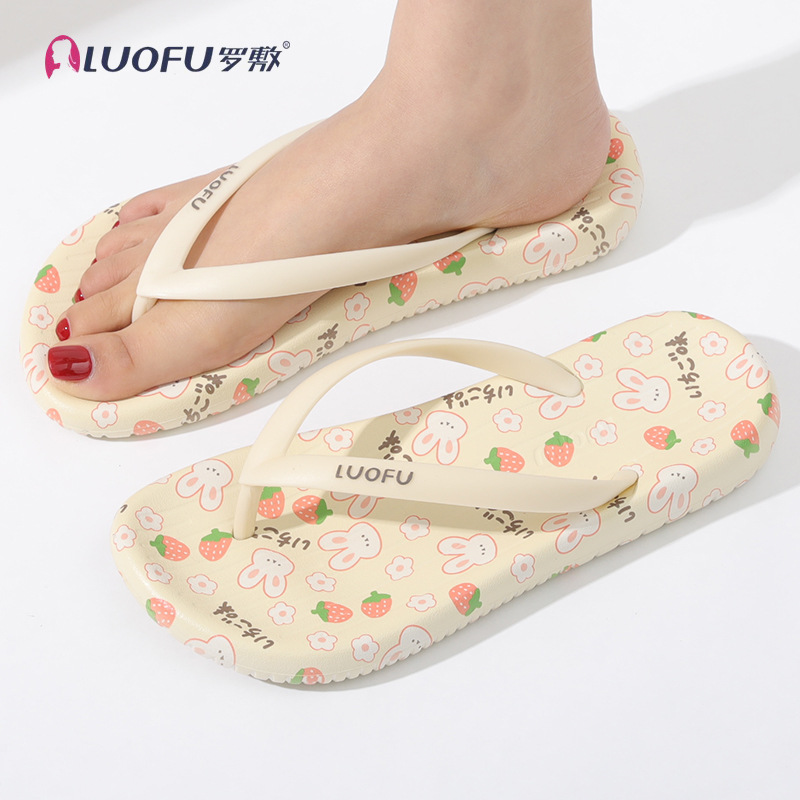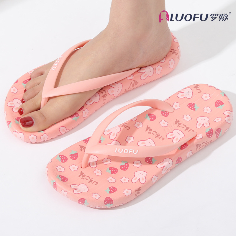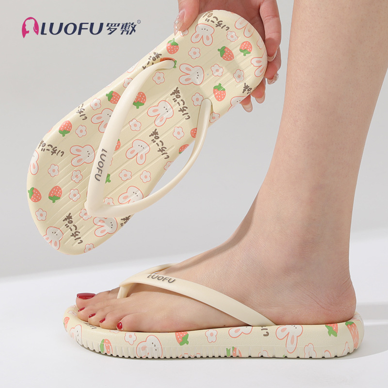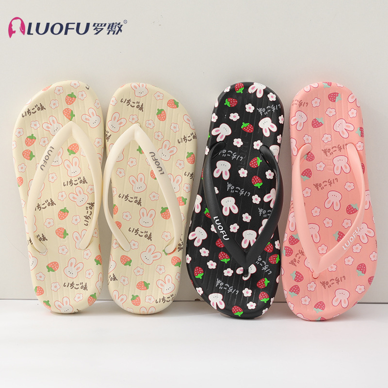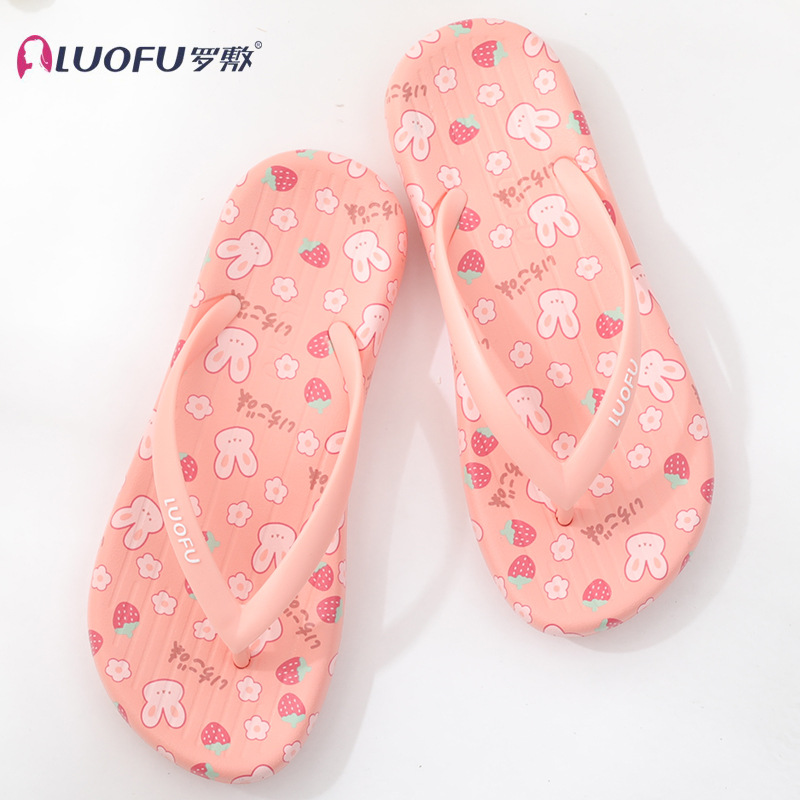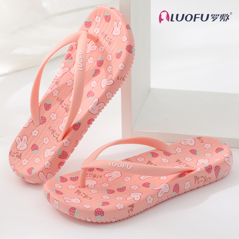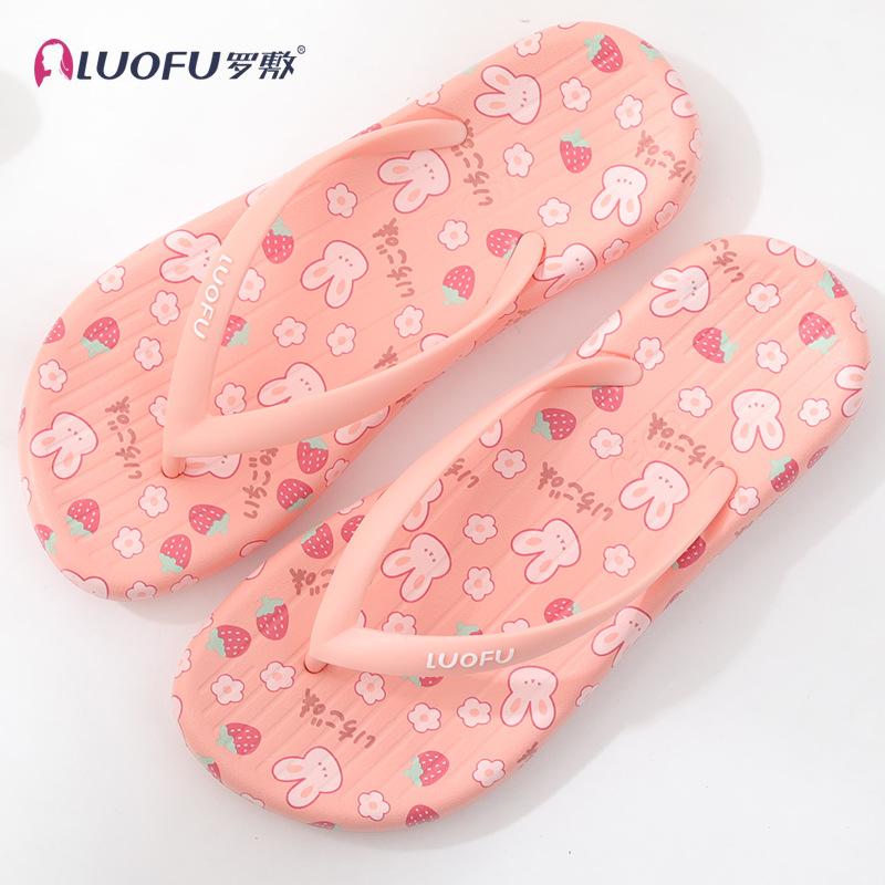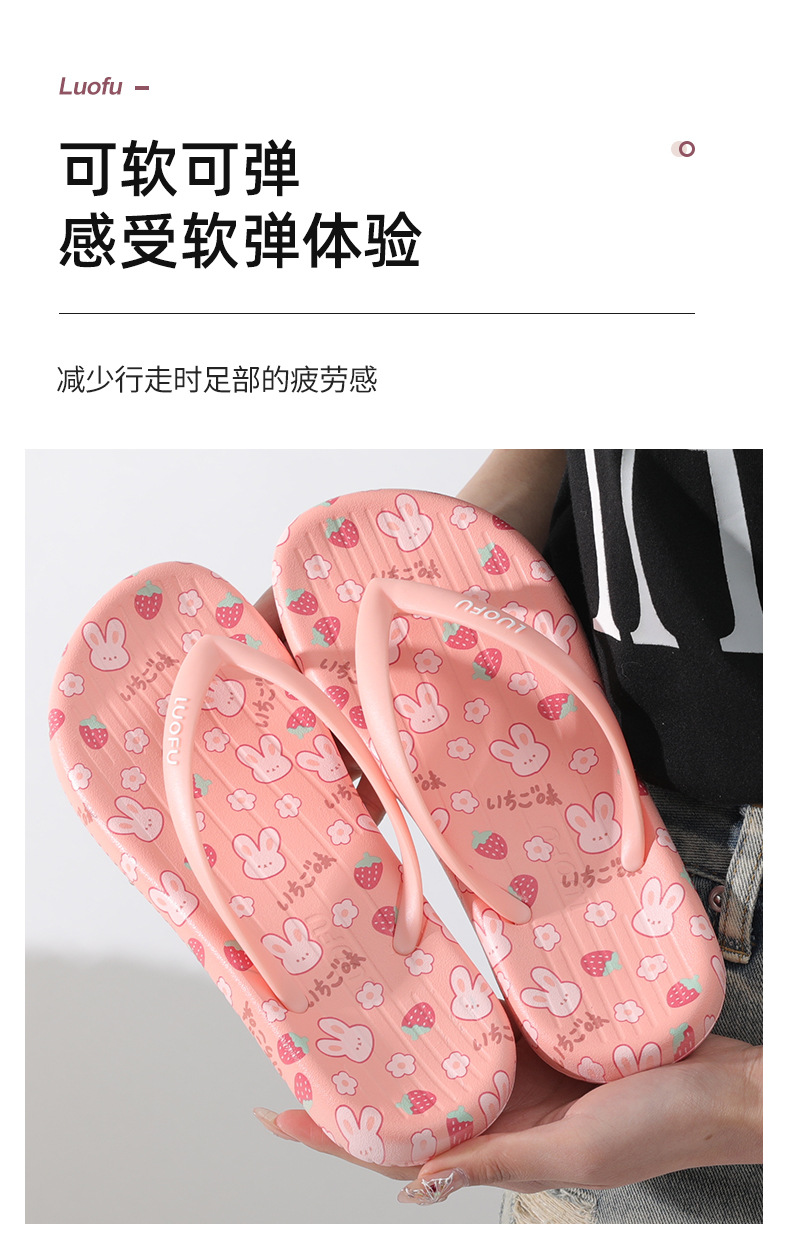Luofu 여름 두꺼운 밑창 토끼 만화 플립 플롭 여성을위한 모든 경기 야외 초경량 슈퍼 부드러운 캔디 컬러 비치 샌들스토어 가기