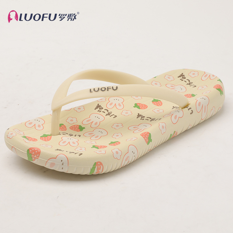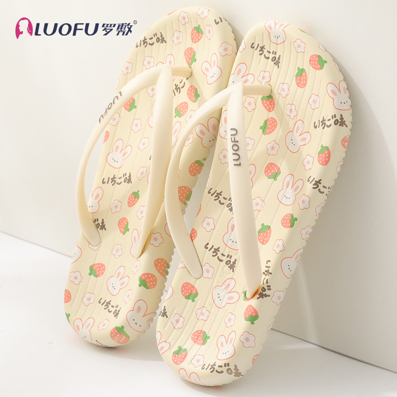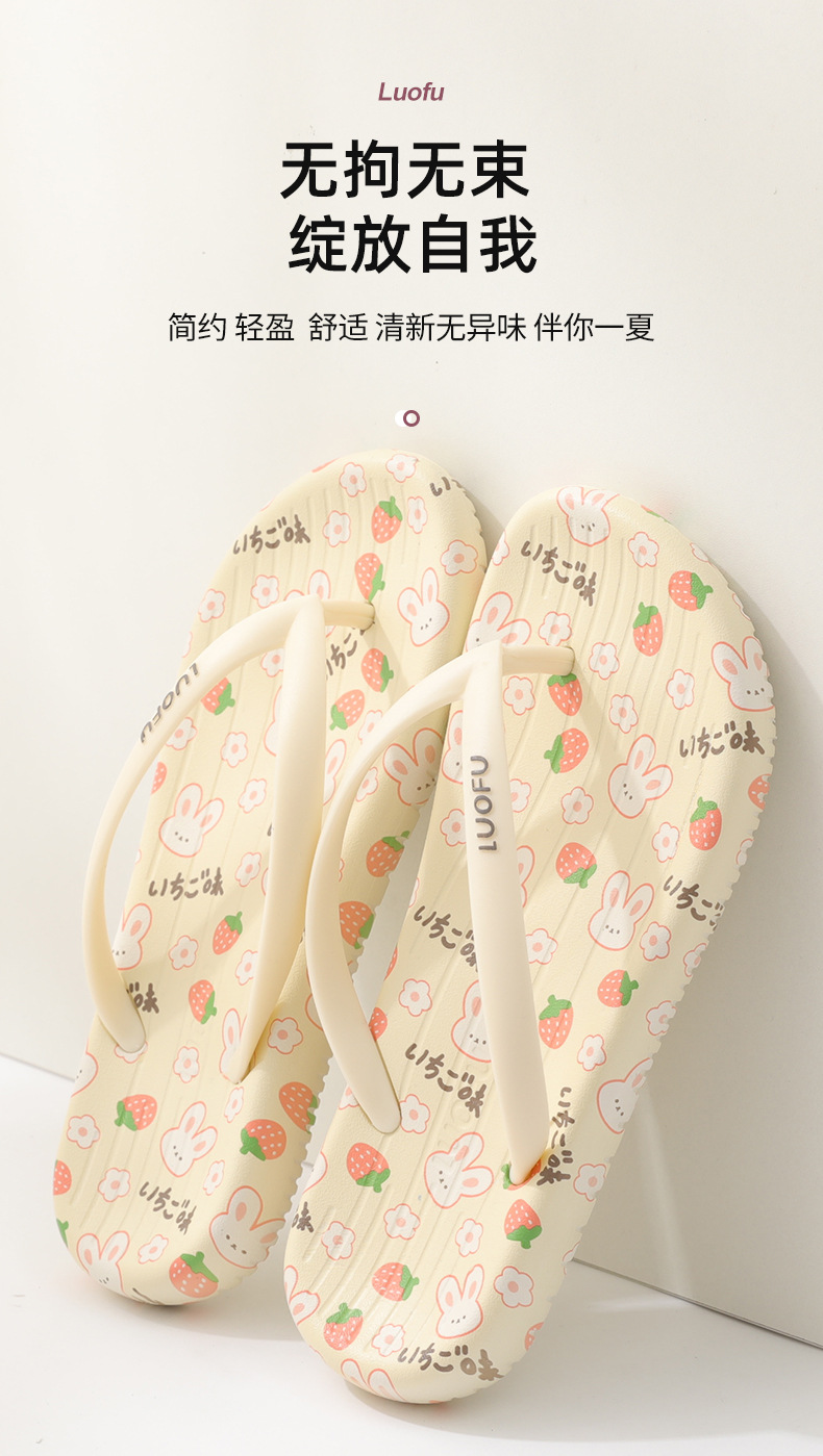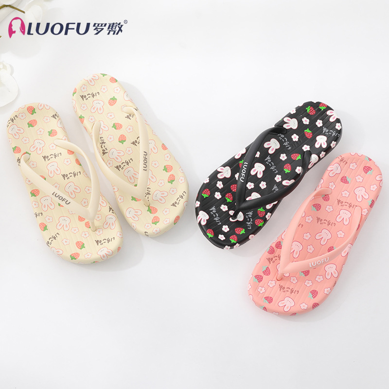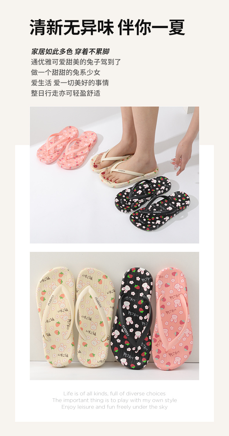 Luofu 여름 두꺼운 밑창 토끼 만화 플립 플롭 여성을위한 모든 경기 야외 초경량 슈퍼 부드러운 캔디 컬러 비치 샌들