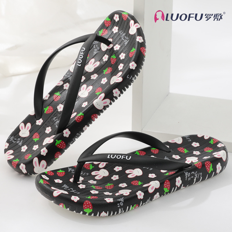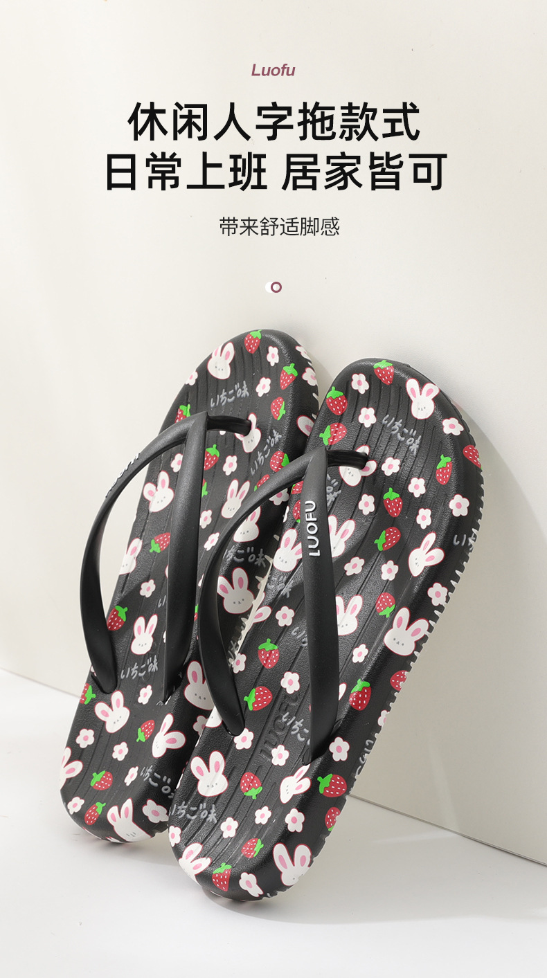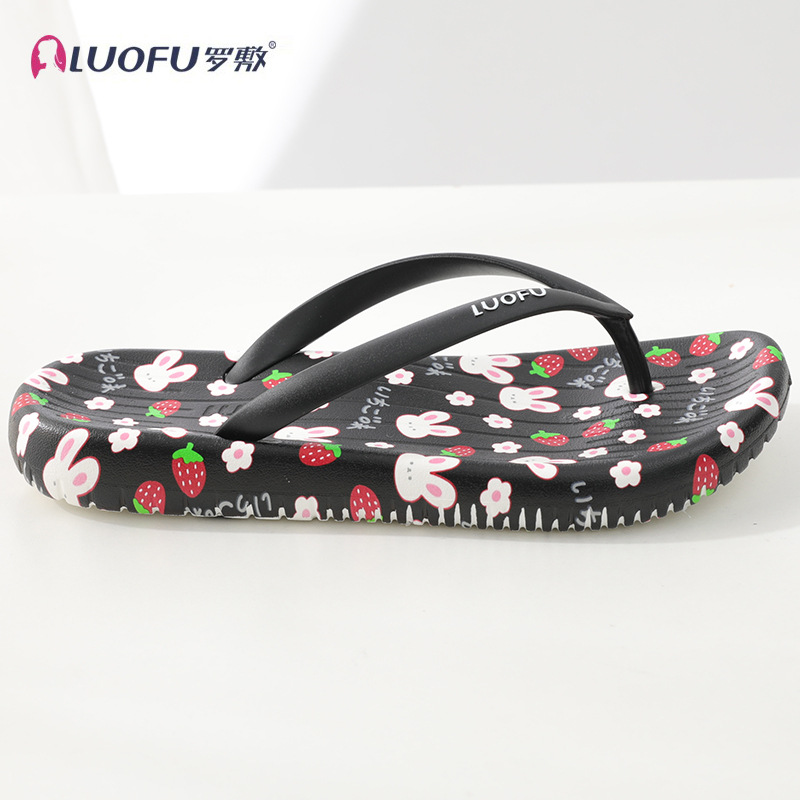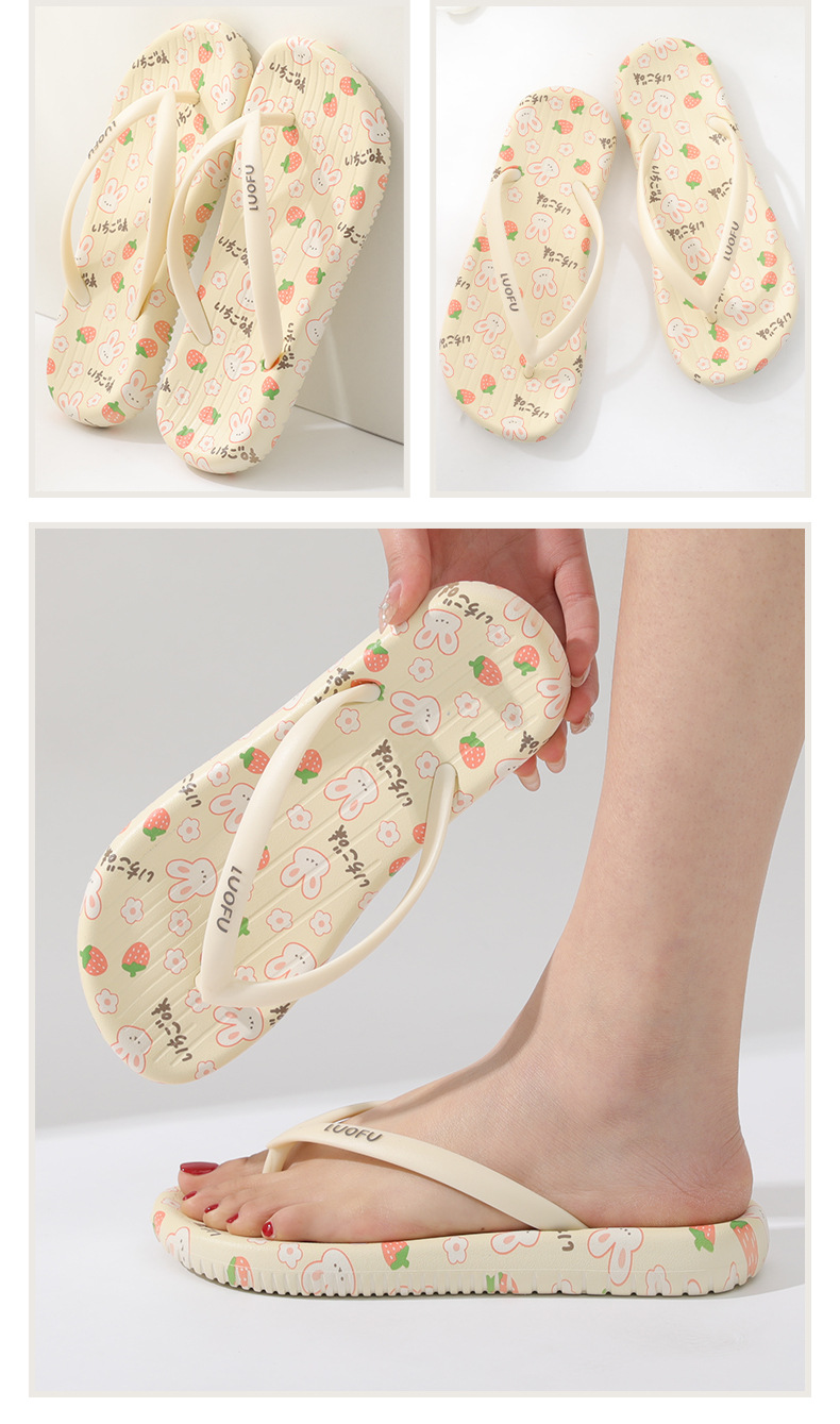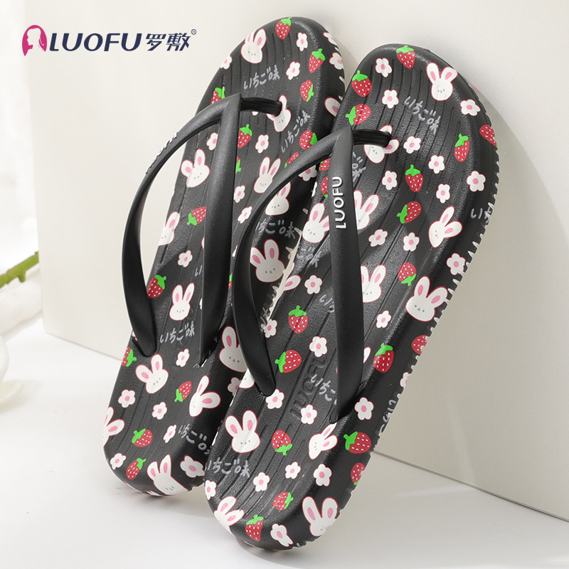 Luofu 여름 두꺼운 밑창 토끼 만화 플립 플롭 여성을위한 모든 경기 야외 초경량 슈퍼 부드러운 캔디 컬러 비치 샌들