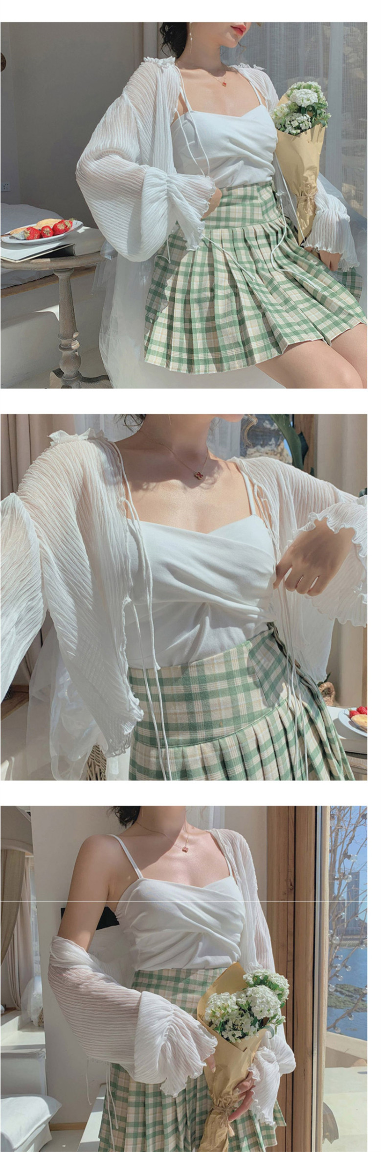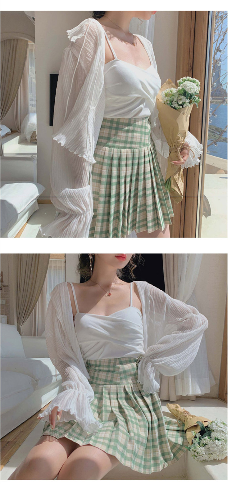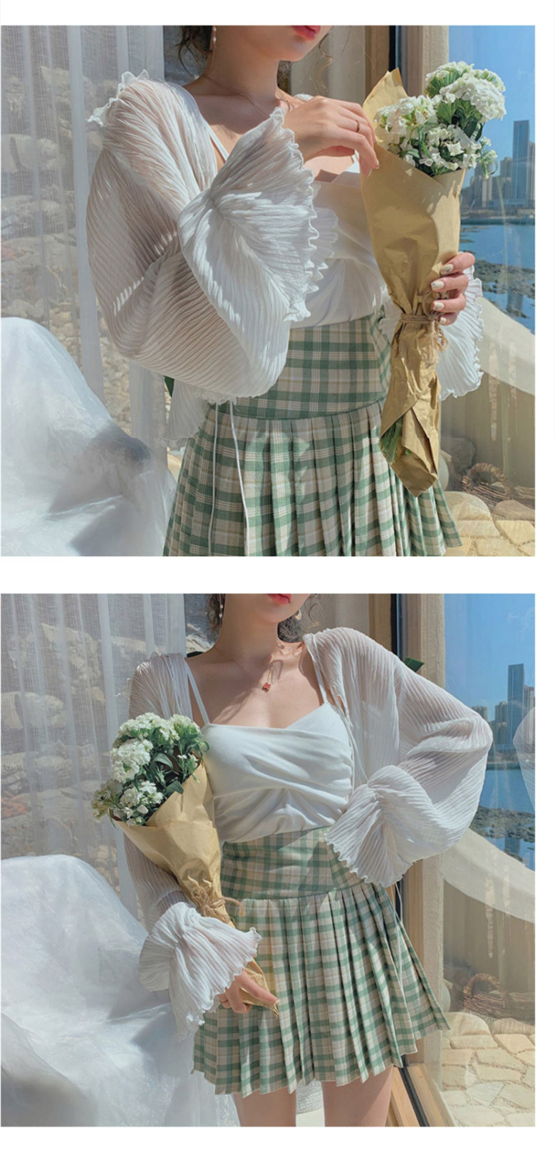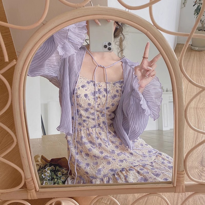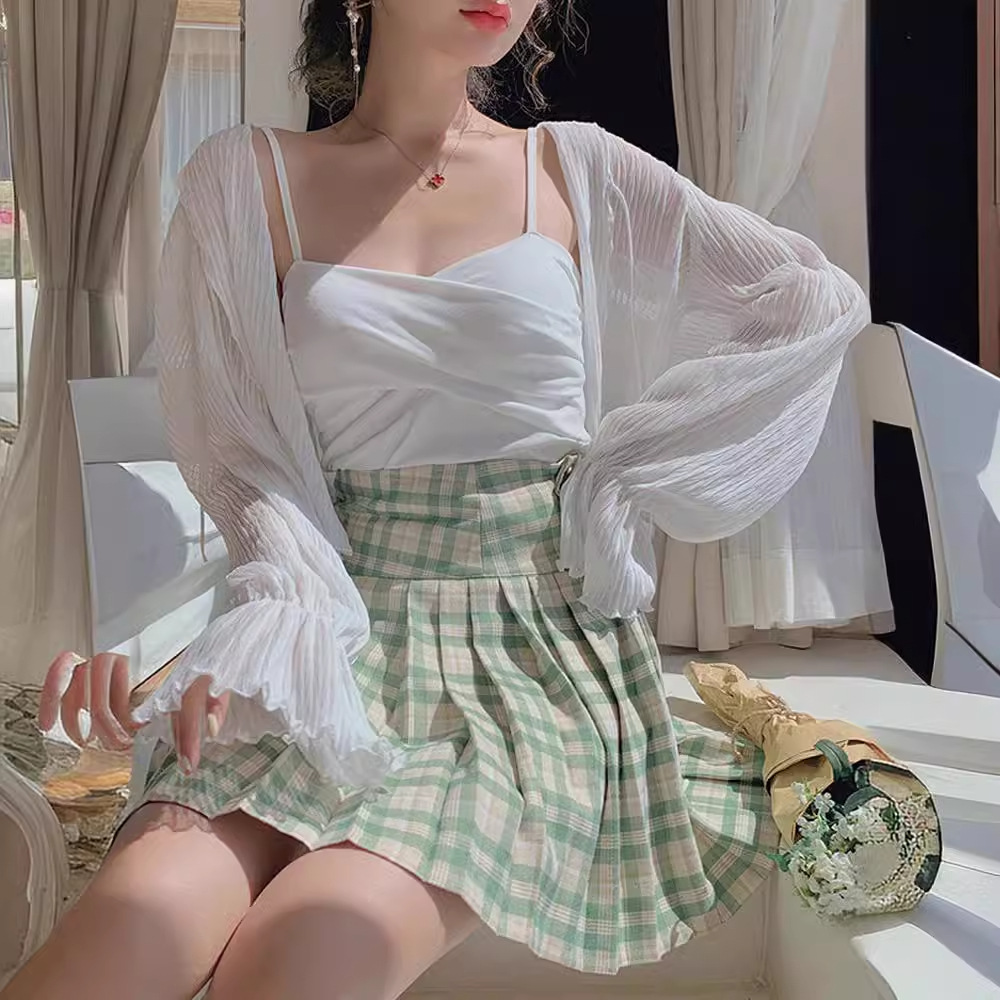 2025 슈퍼 페어리 쉬폰 선 스크린 의류 여성 여름 얇은 카디건 코트 짧은 슬링 스커트 외부 작은 목도리