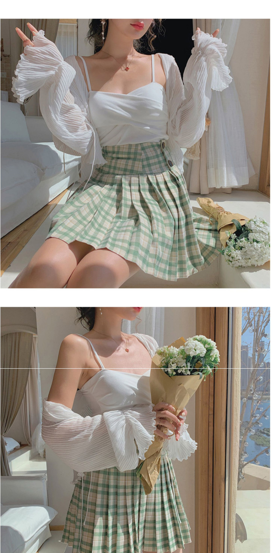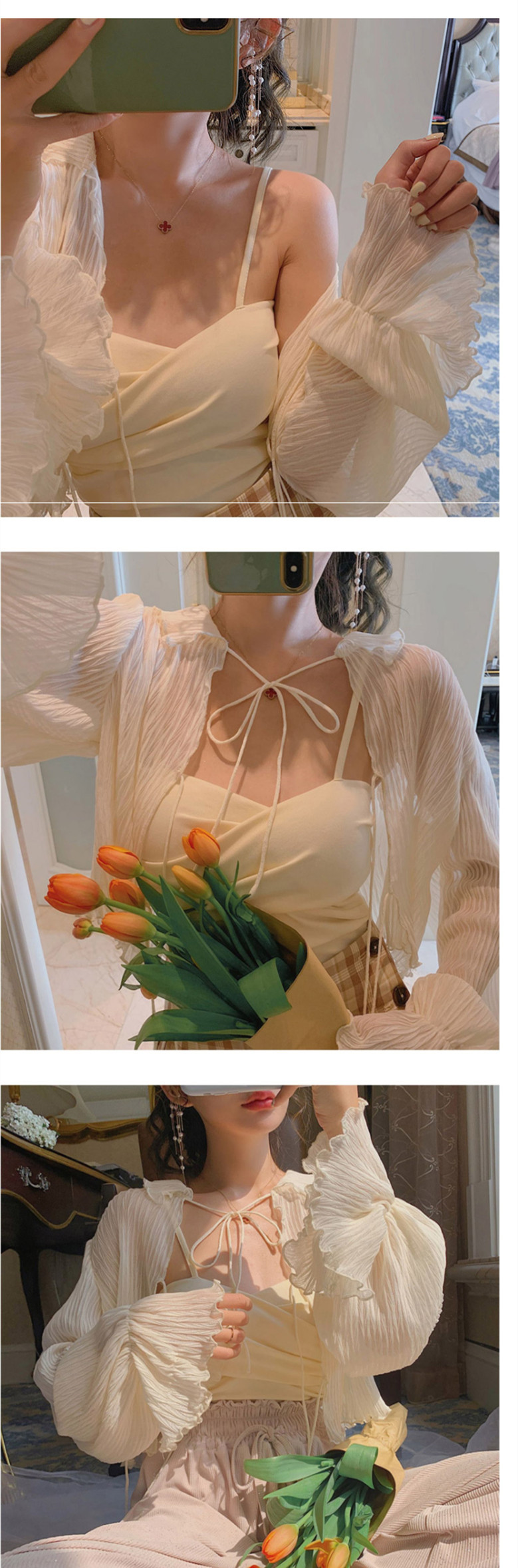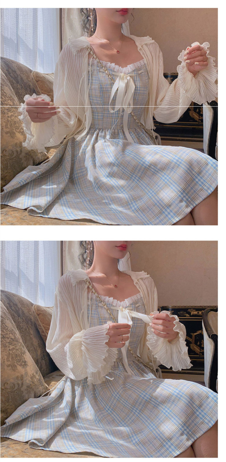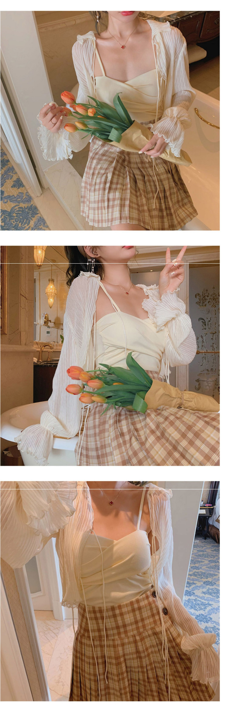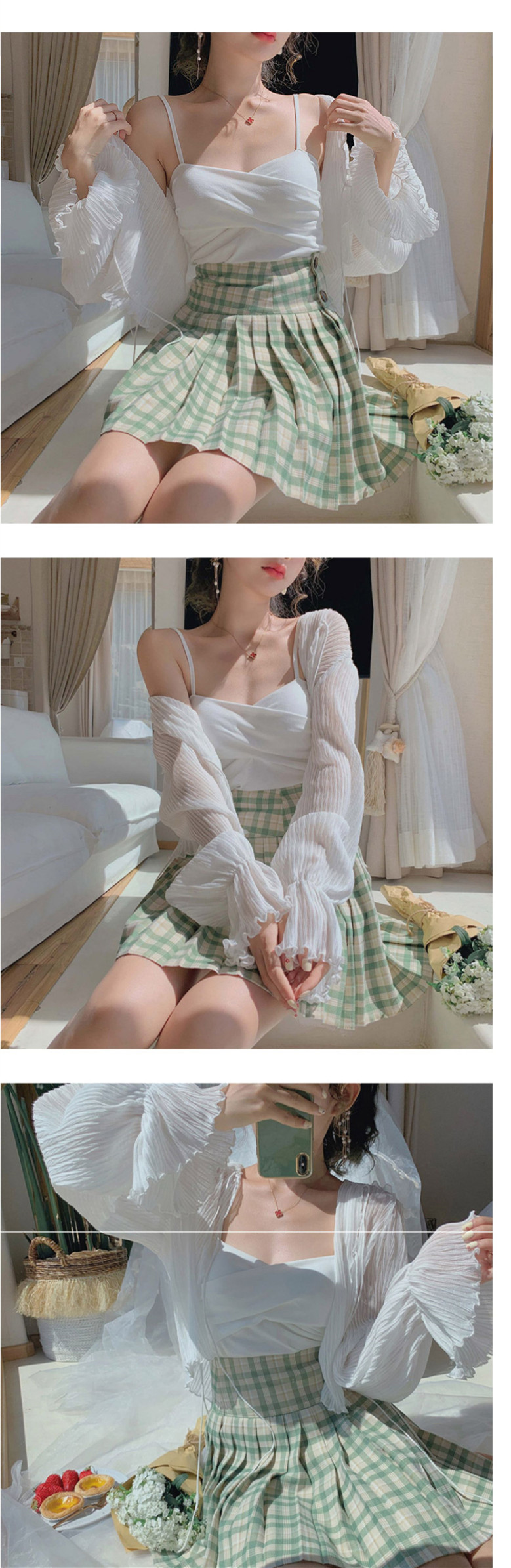 2025 슈퍼 페어리 쉬폰 선 스크린 의류 여성 여름 얇은 카디건 코트 짧은 슬링 스커트 외부 작은 목도리