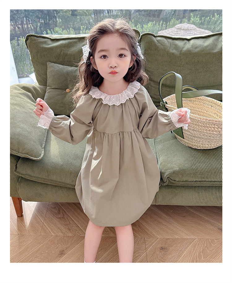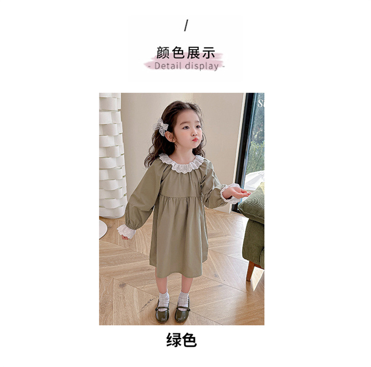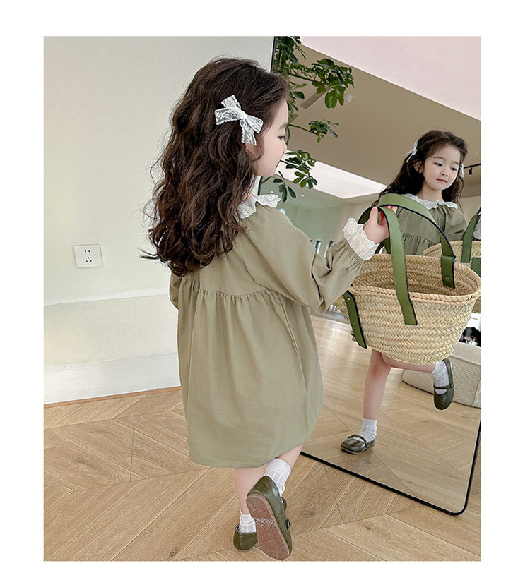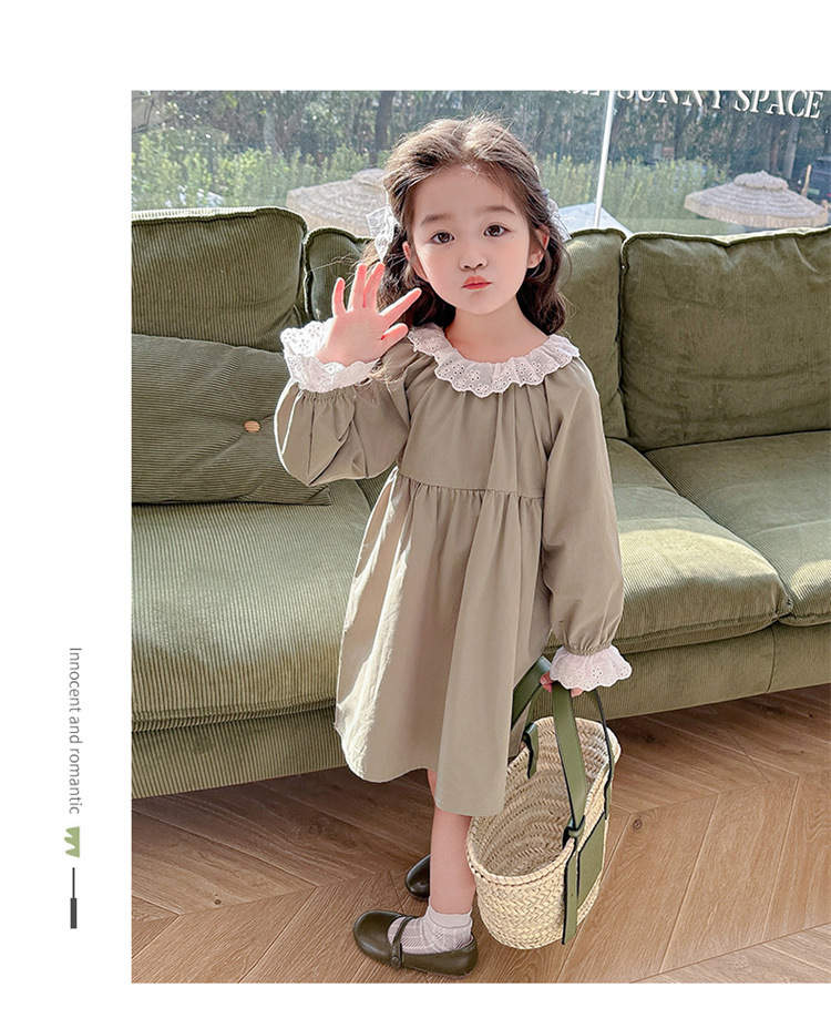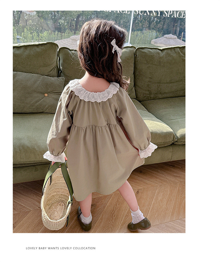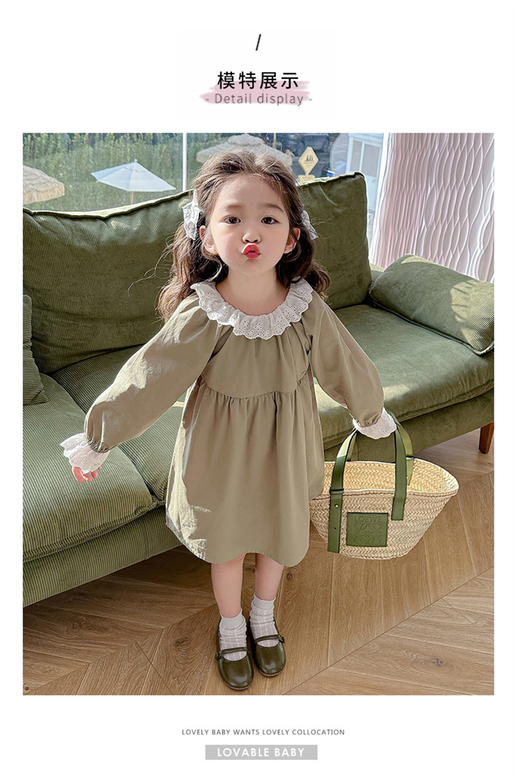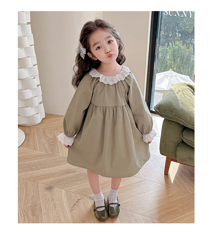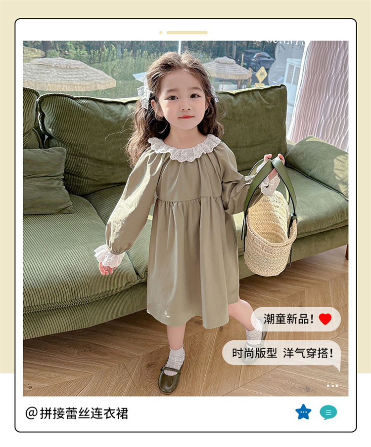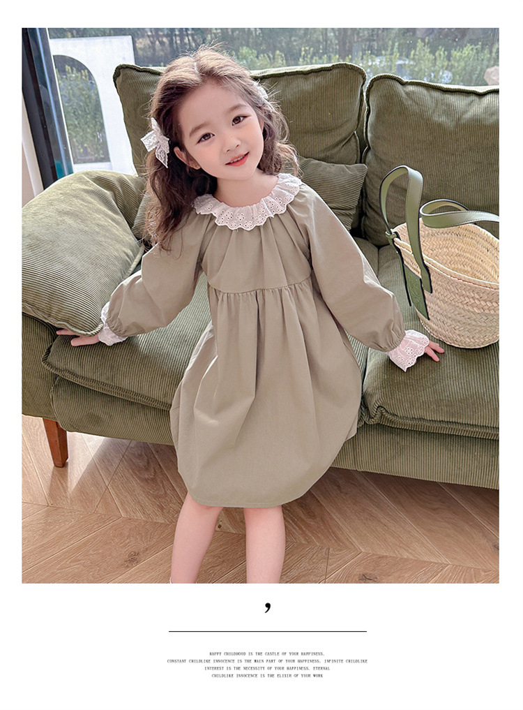 소녀 레이스 칼라 원피스 2024 봄 새로운 서양식 유행 아동복 아기 소녀의 긴 소매 공주 원피스 패션스토어 가기
