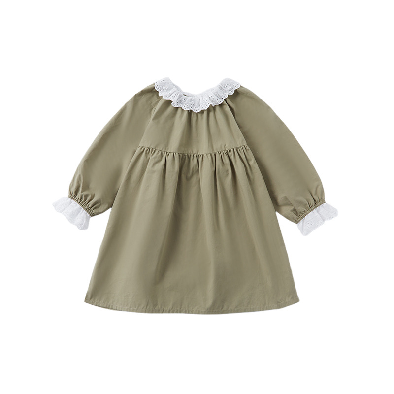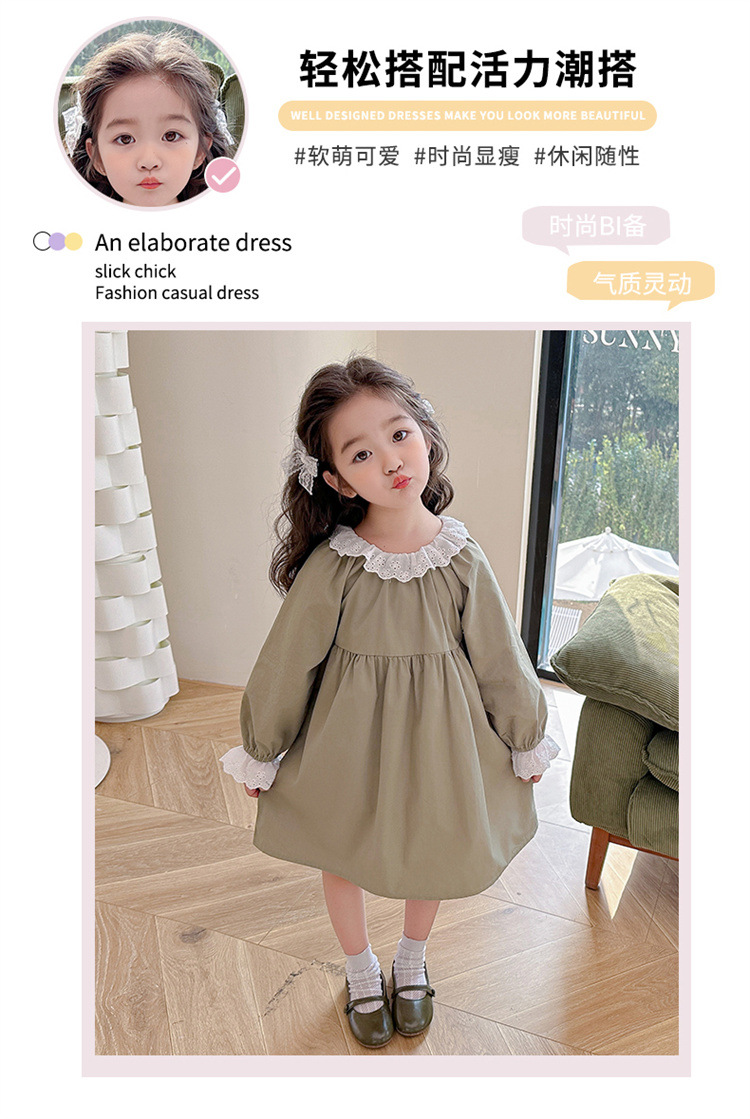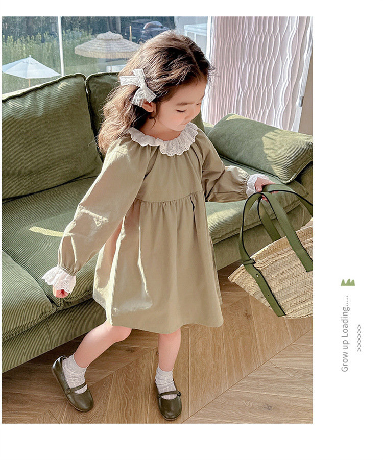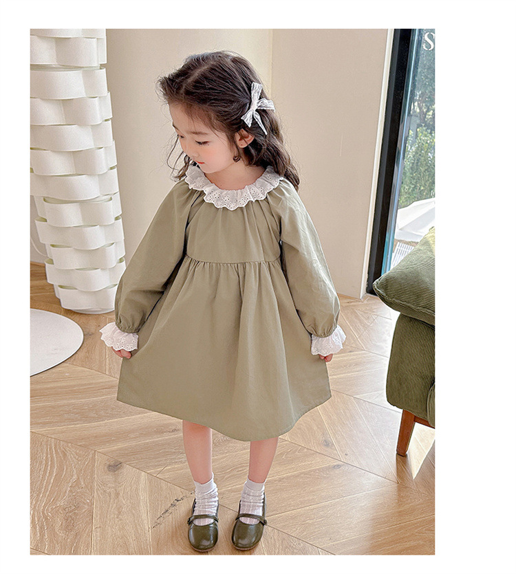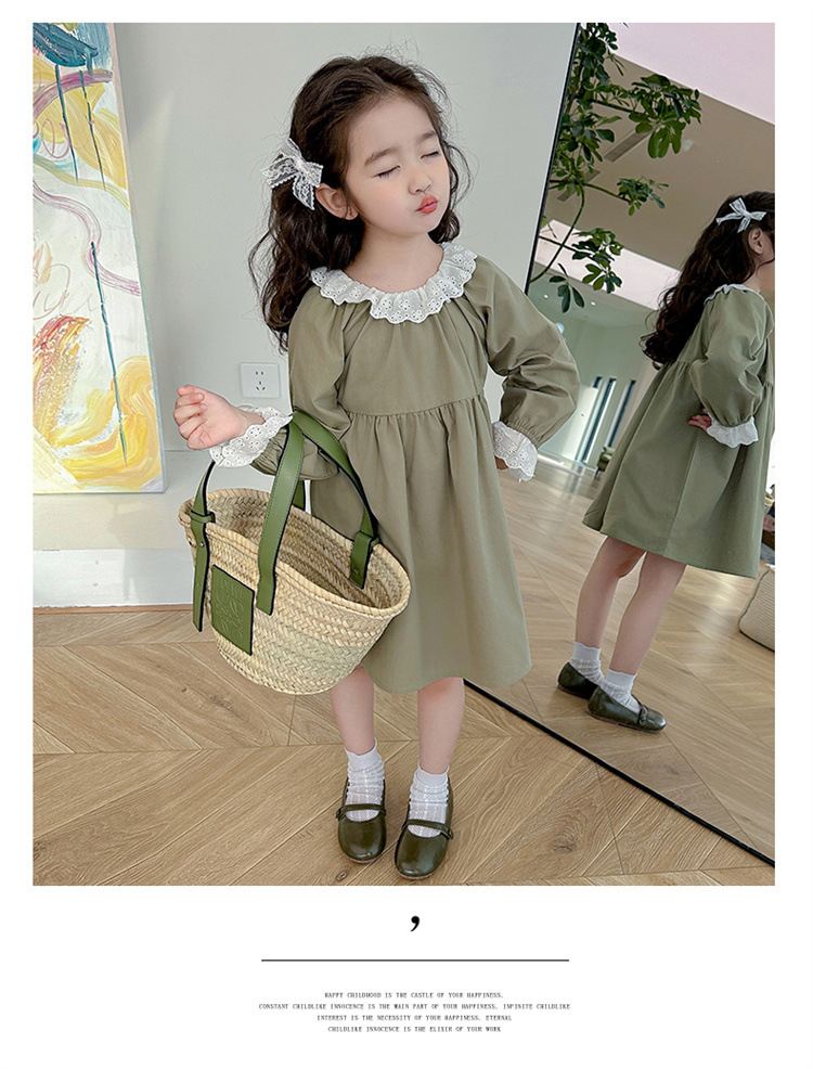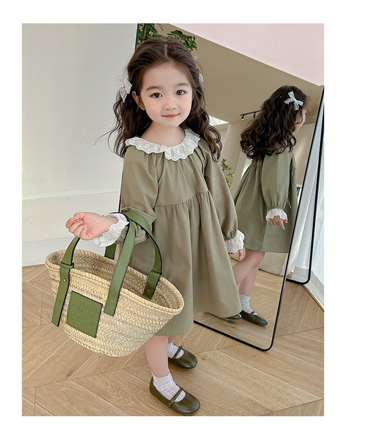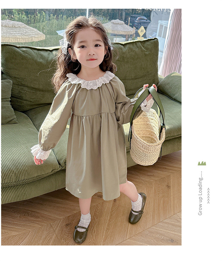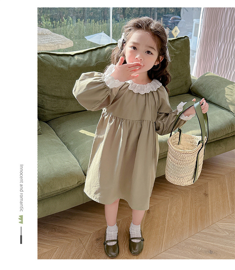 소녀 레이스 칼라 원피스 2024 봄 새로운 서양식 유행 아동복 아기 소녀의 긴 소매 공주 원피스 패션스토어 가기