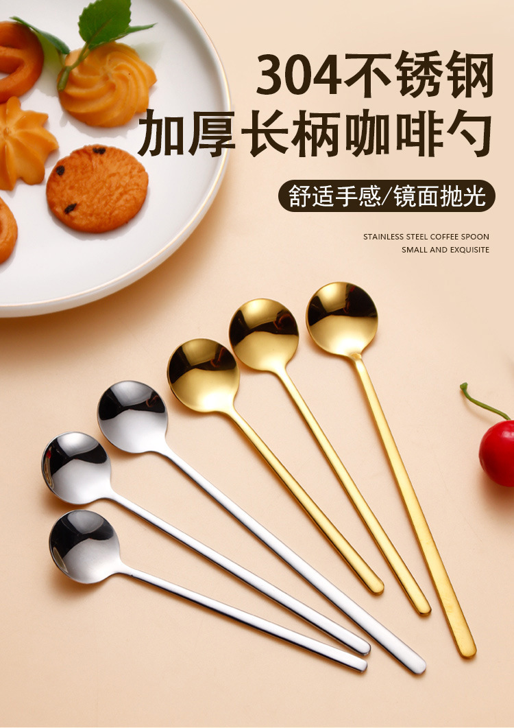 304 스테인레스 스틸 스푼 제조 업체 긴 핸들 혼합 숟가락 조미료 얼음 숟가락 새 둥지 작은 둥근 숟가락 꿀 디저트 커피 스푼스토어 가기