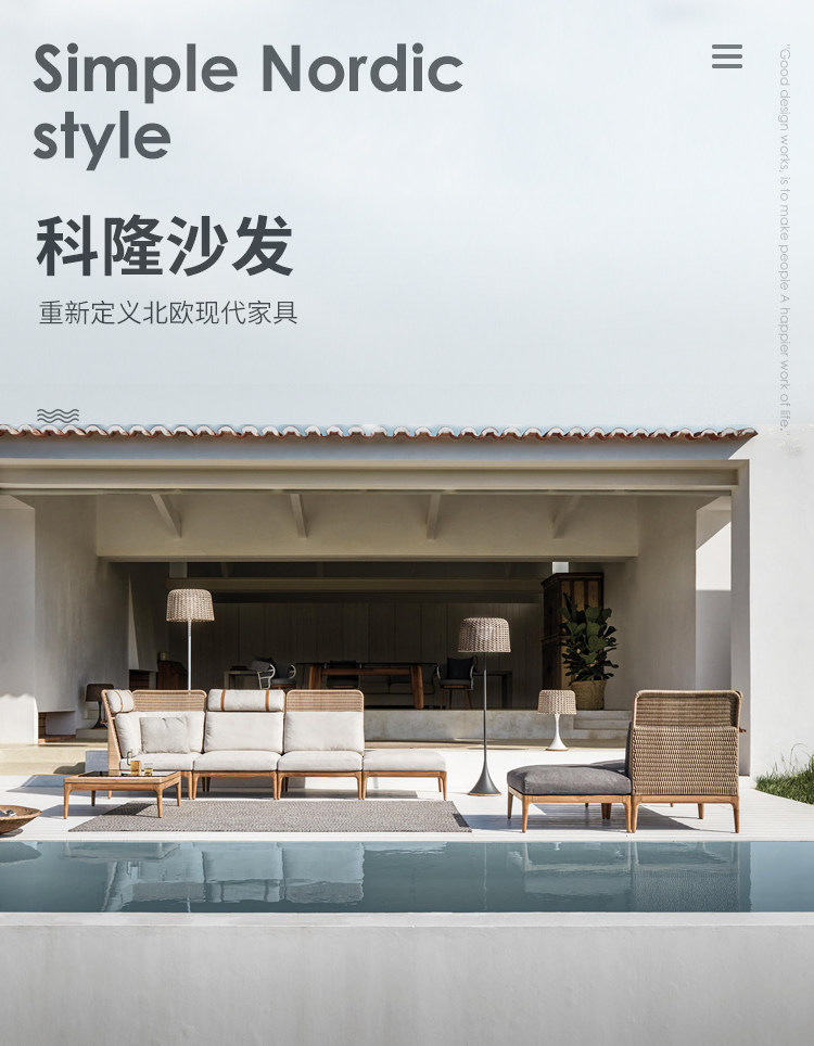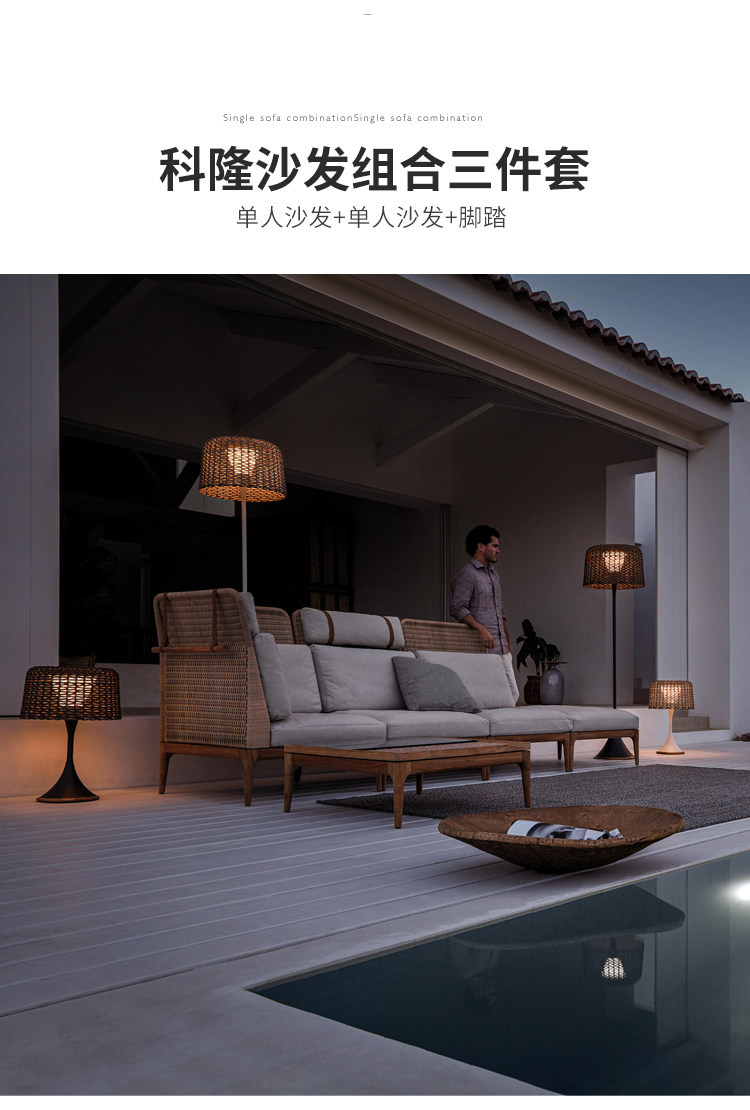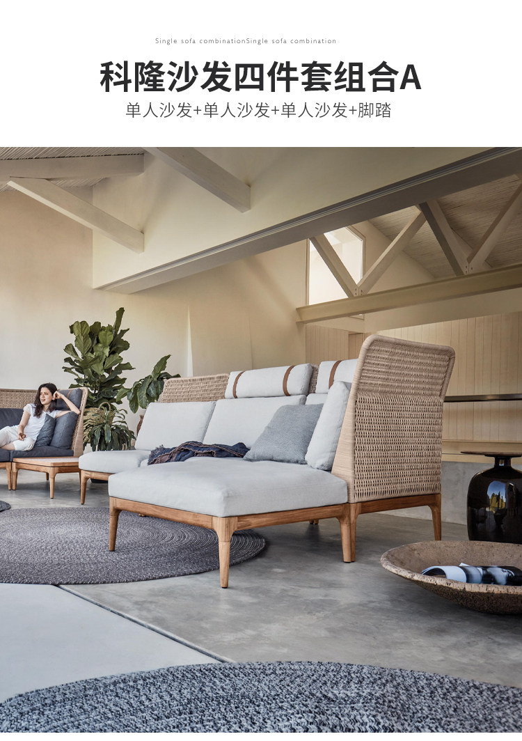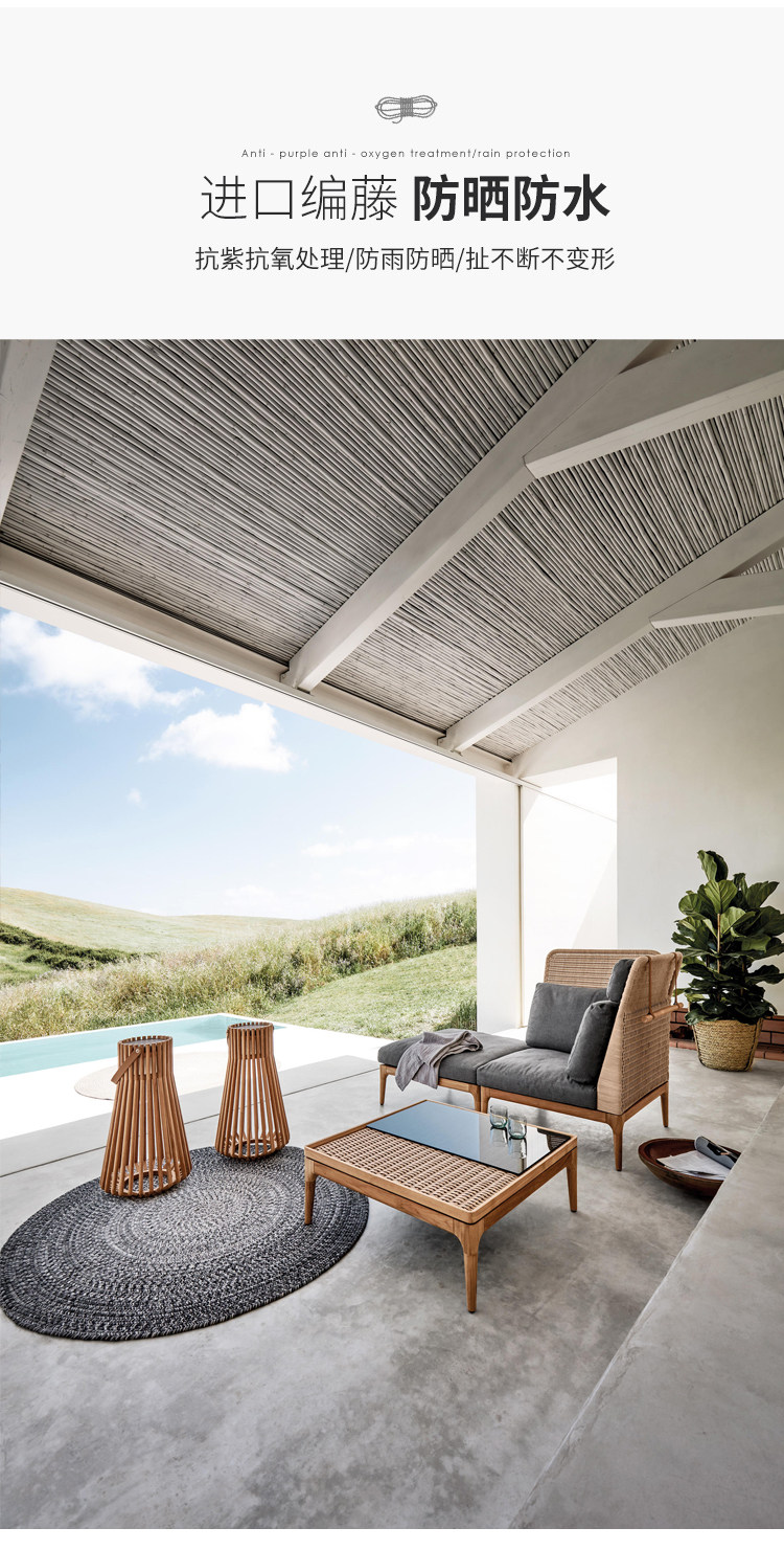 야외 등나무 소파 단단한 나무 안뜰 빌라 정원 비 방지 태양 보호 Dew Tianyang 테이블 모델 룸 의자 레저 가구스토어 가기