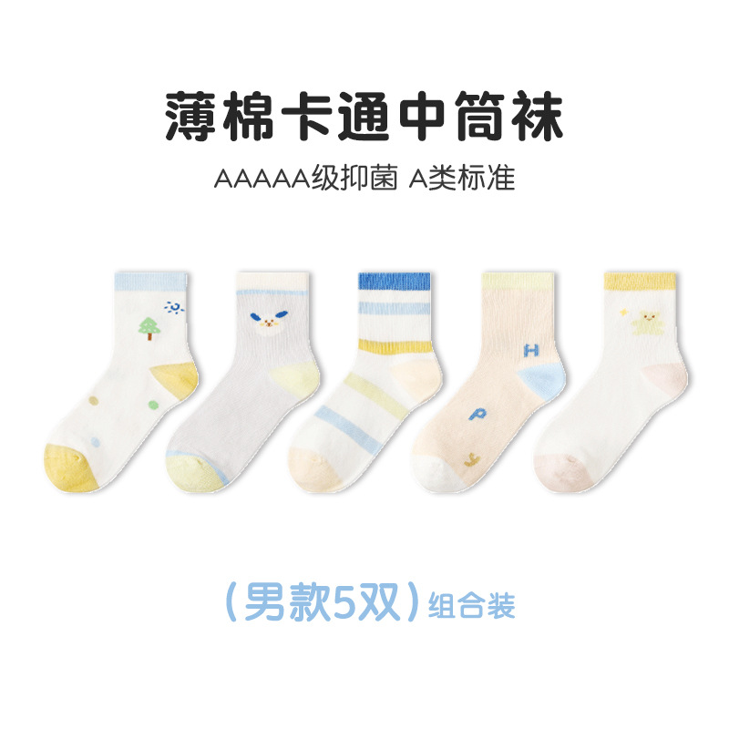 Tangram 어린이 양말 봄과 여름 얇은 여학생 양말 어린이 뼈없는 얇은면 중간 종아리 양말 소년 양말스토어 가기