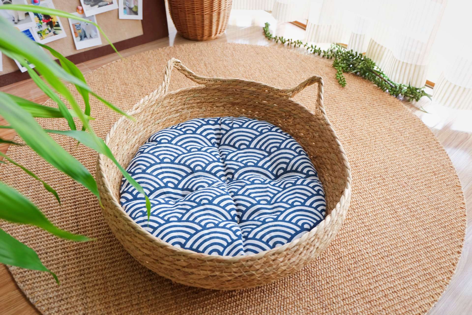• 고양이 귀 둥지 + 블루 쿠션 + 베개