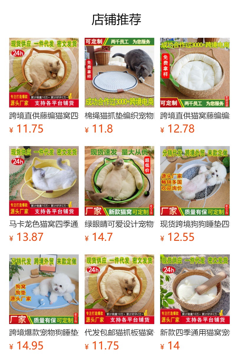고양이 케이지 고양이 스크래치 보드 등나무로 만든 분리 세탁 가능 사계절 고양이 수면 매트 고양이 집 강아지 집 애완동물 용품 통기성스토어 가기