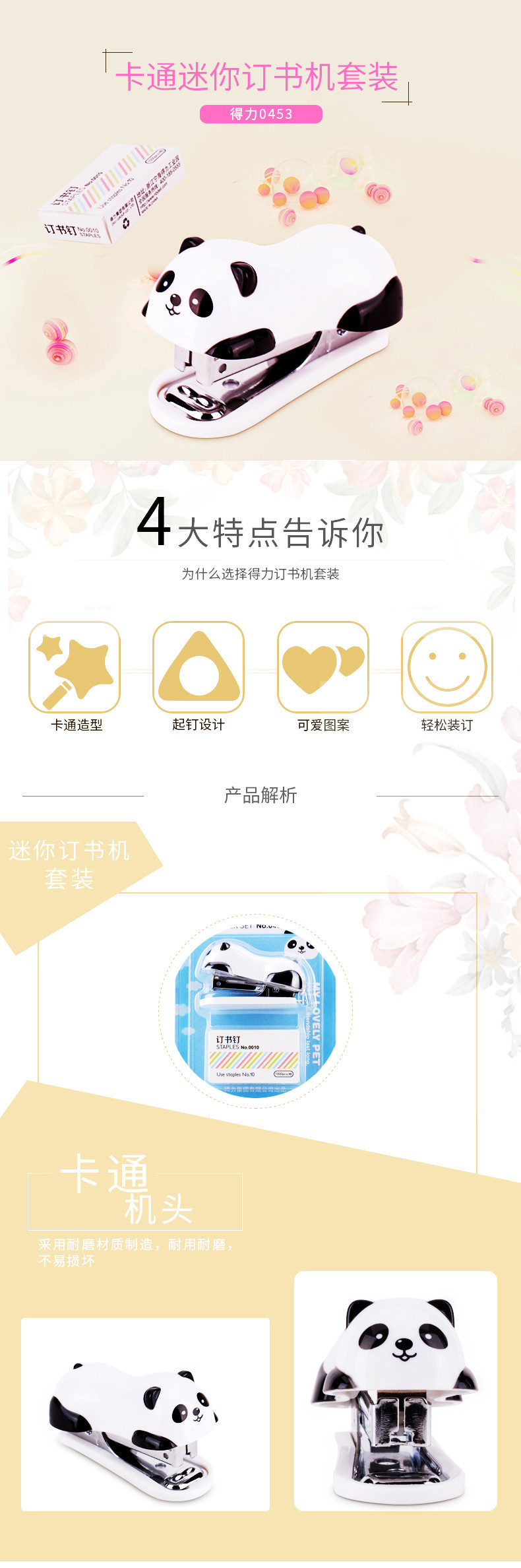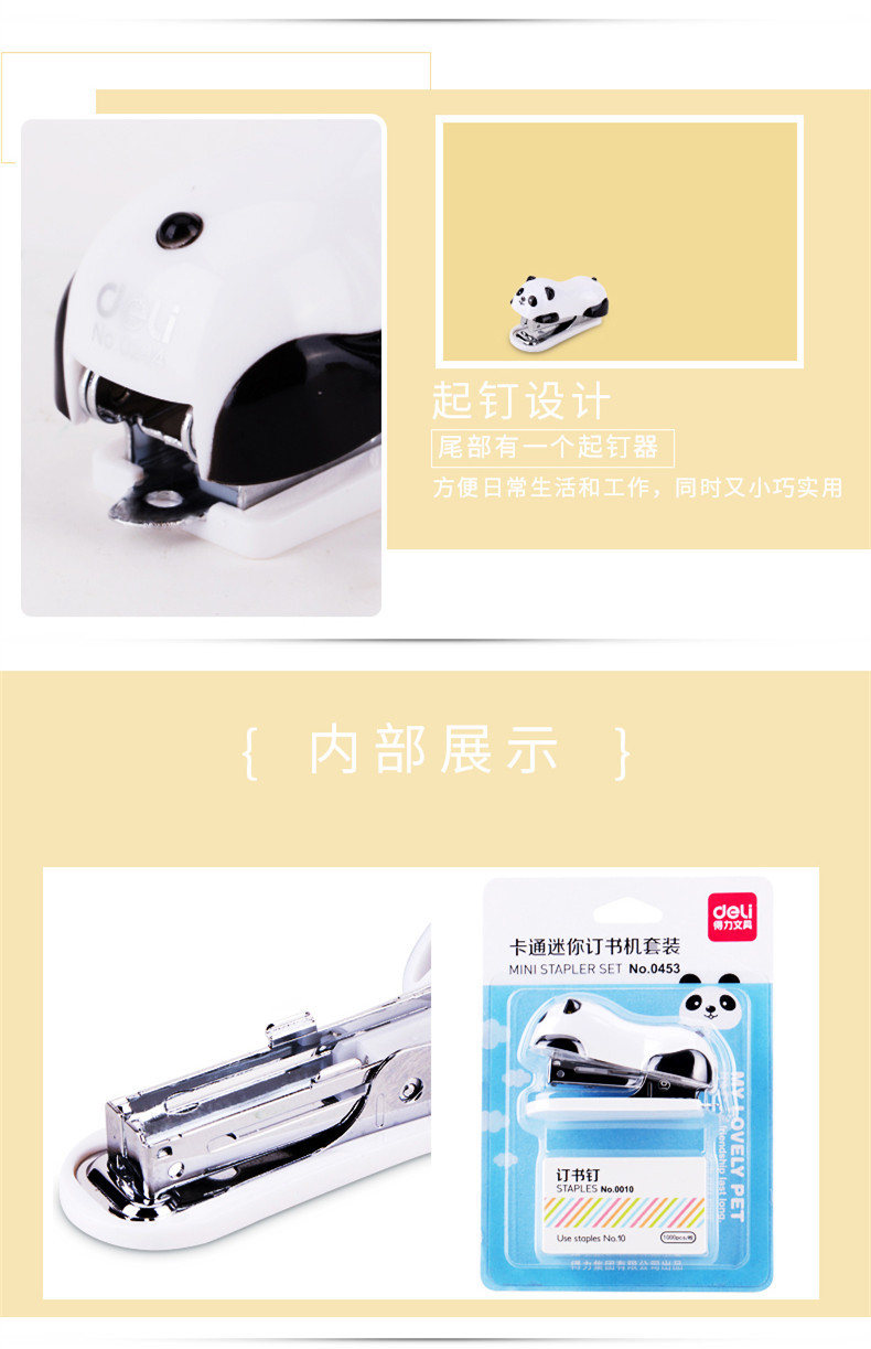 델리 0453 스테이플러 만화 작은 학생 가정 독립형 네일 풀러 10 # 바인딩 기계 스테이플러 세트스토어 가기