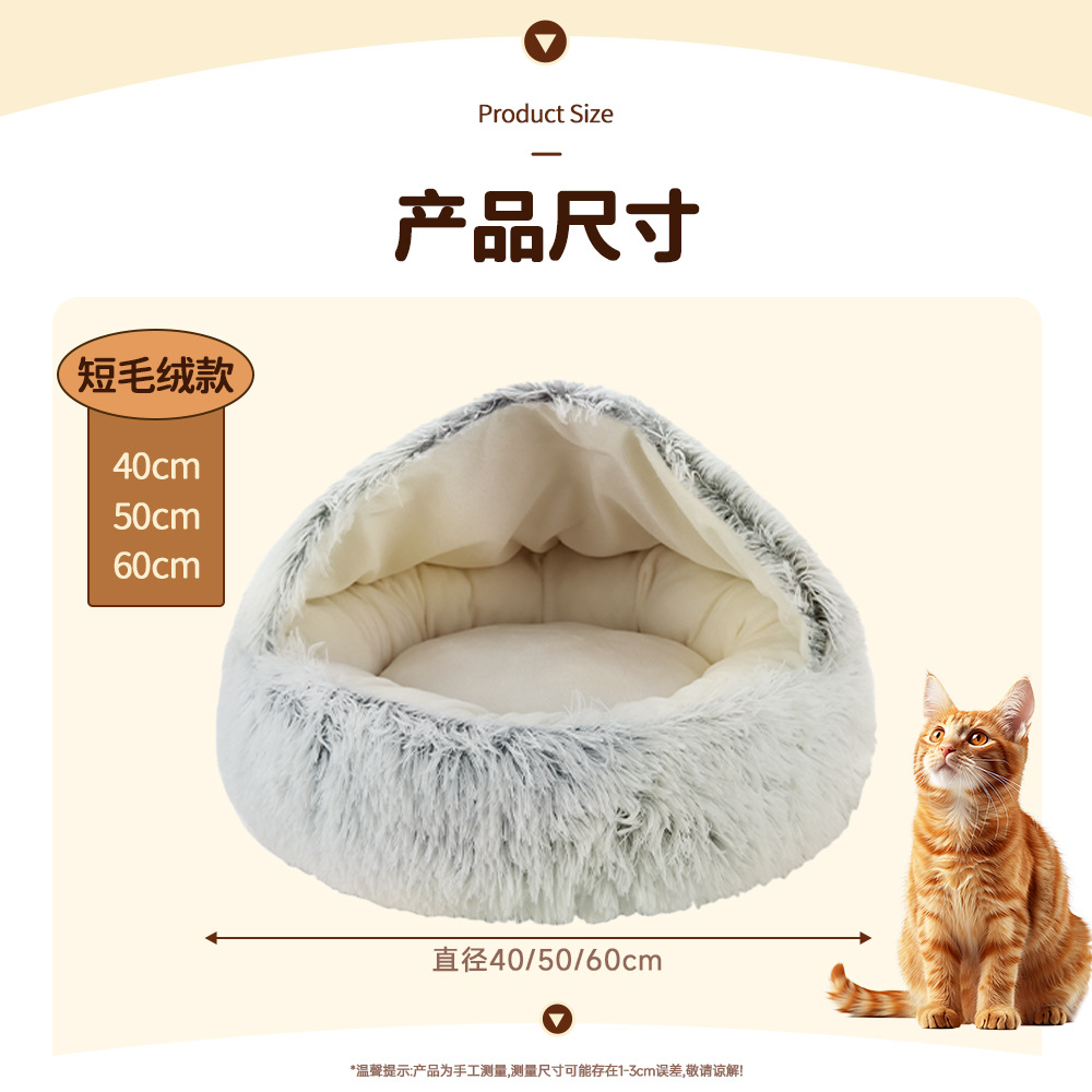 产品名称:贝壳短毛绒/长毛绒猫窝