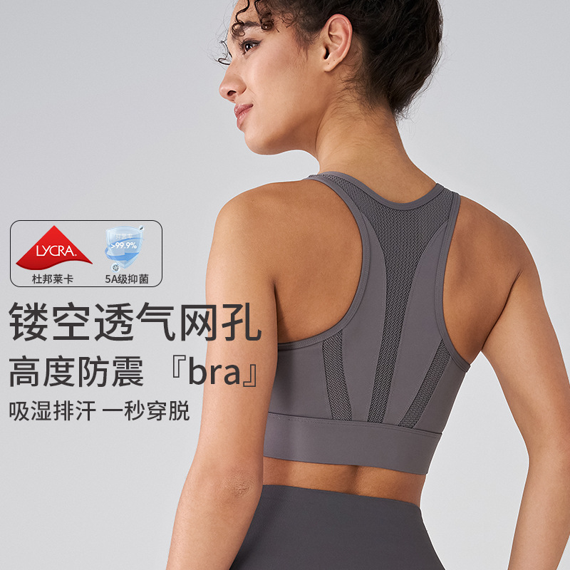 라이크라 항균 스포츠 속옷 가슴 패드 지퍼 충격 방지 운동 의류 고강도 요가 조끼를 입은 여성용 브래지어