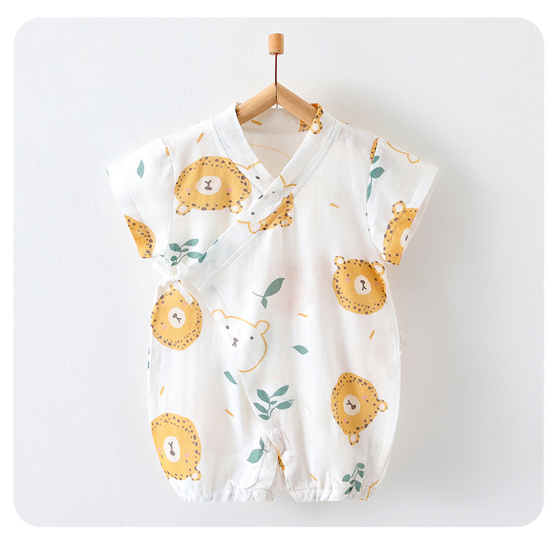 여름 새로운 아기 점프 수트 클래스 대나무 코튼 거즈 신생아 옷 짧은 소매 아기 옷 얇은 에어컨 옷