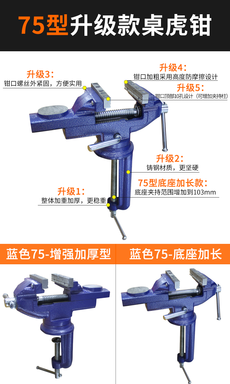 • 강화된 중량 증가형 75 테이블 바이스(클램핑 컬럼 포함)