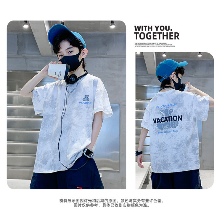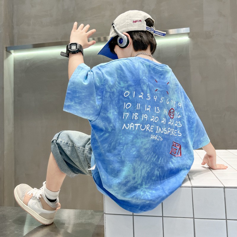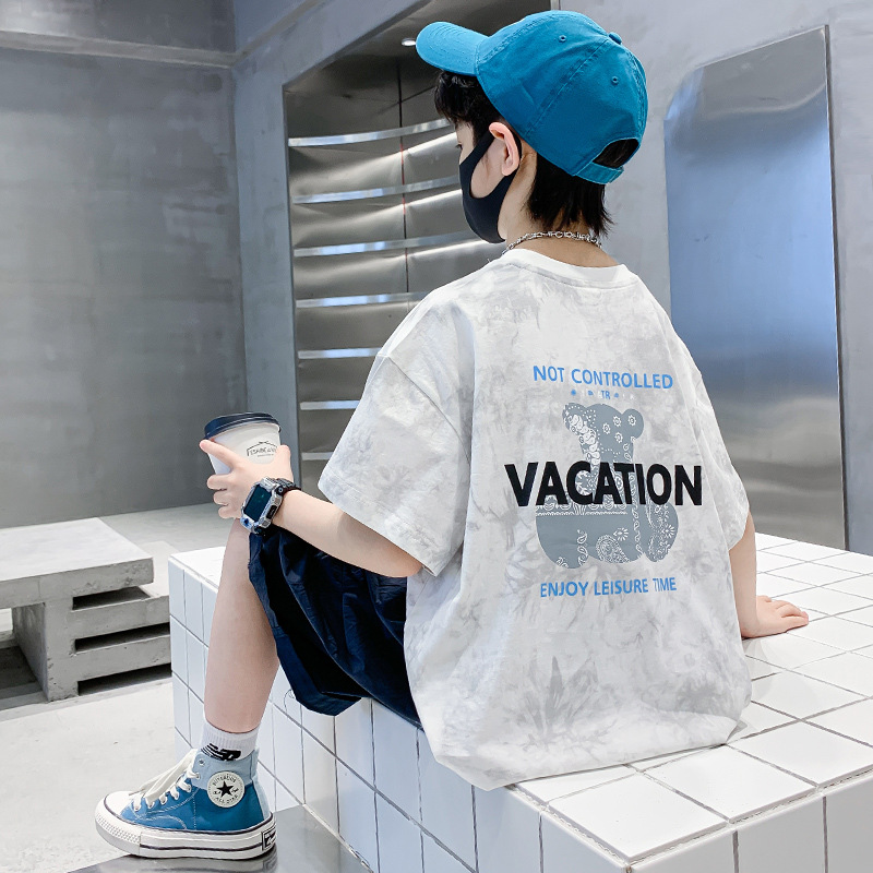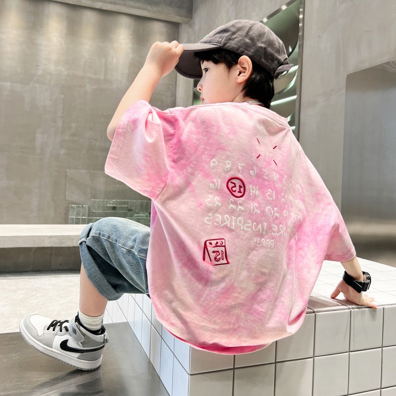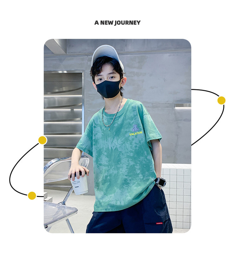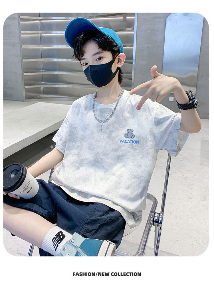 남학생 반소매 티셔츠 여름 2025 년 새 스타일 남학생 여름 반소매 티셔츠 아동용 의류스토어 가기