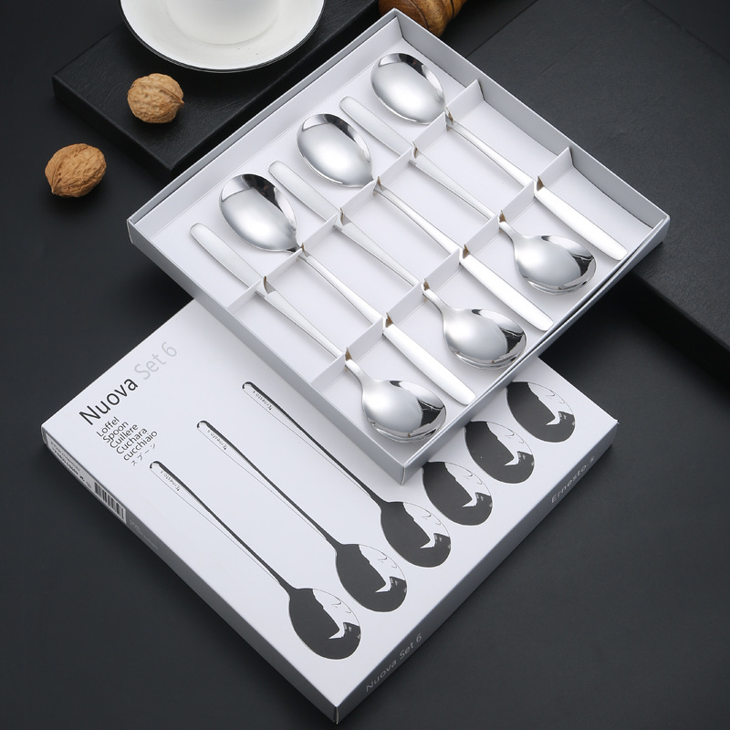 한국식 스테인레스 스틸 스푼 긴 손잡이 수프 숟가락 두꺼운 가정 먹는 숟가락 숟가락 감동적인 숟가락 6 개의 선물 상자 세트