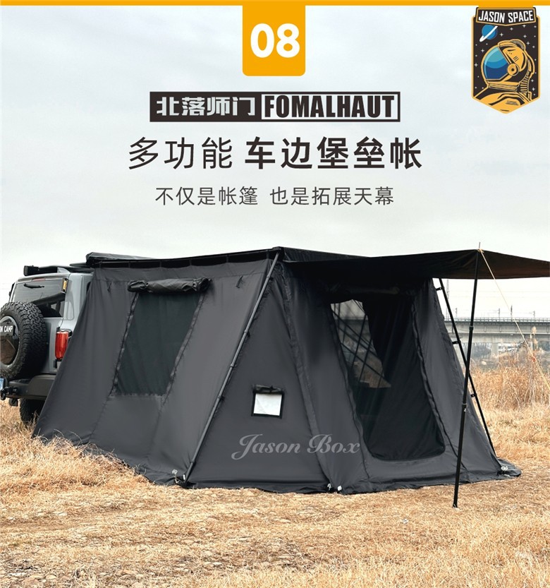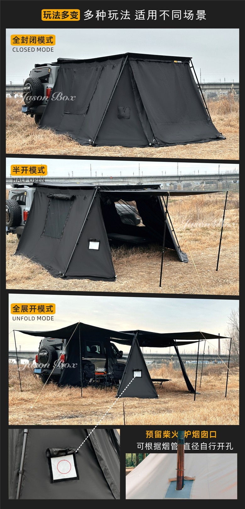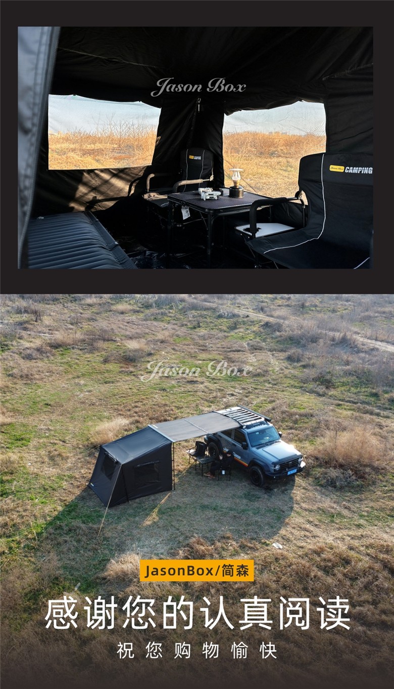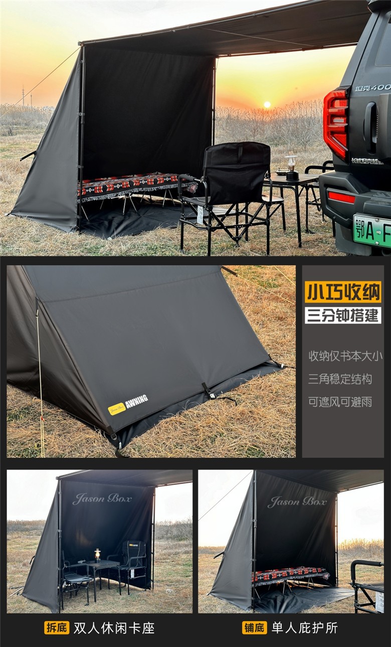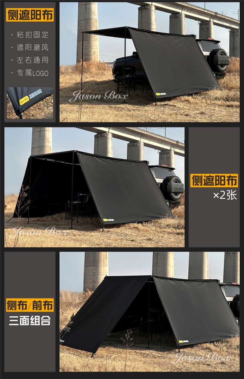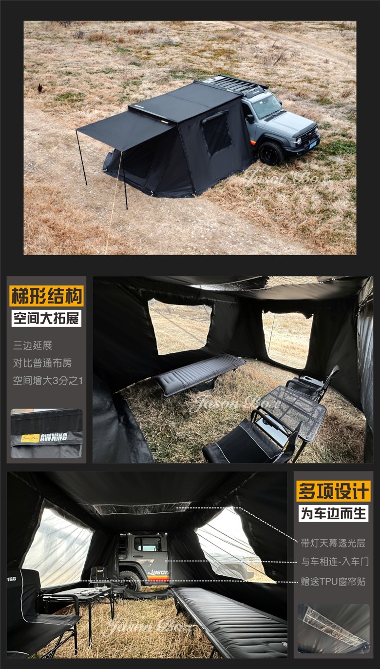 Jiansen 야외 검은 자동차 측면 텐트 검은 접착제 캐노피 텐트 알루미늄 사이드 텐트 오프로드 차양 캠핑 룸 자동차 우주