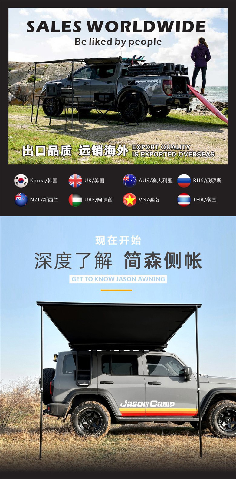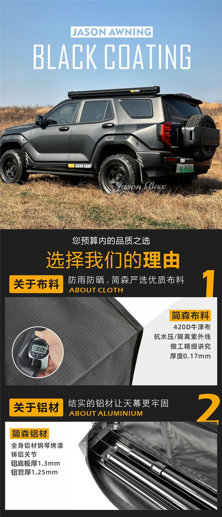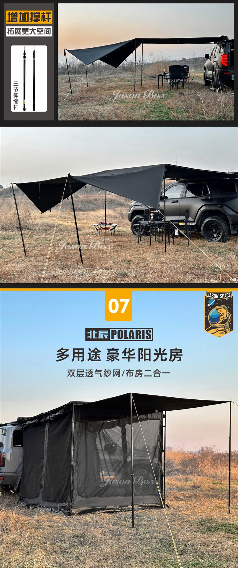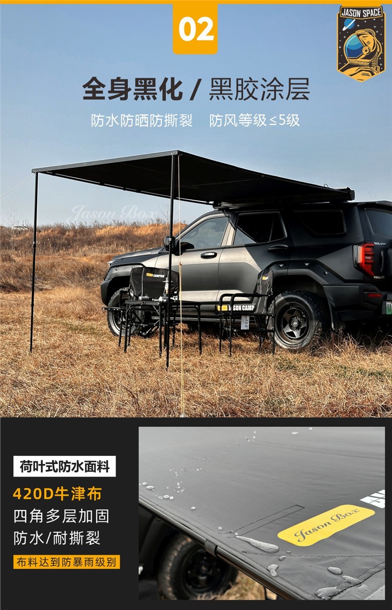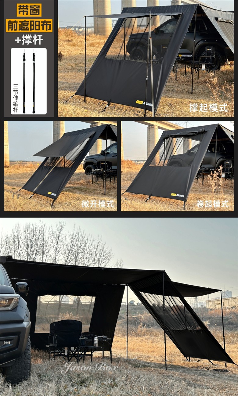 Jiansen 야외 검은 자동차 측면 텐트 검은 접착제 캐노피 텐트 알루미늄 사이드 텐트 오프로드 차양 캠핑 룸 자동차 우주