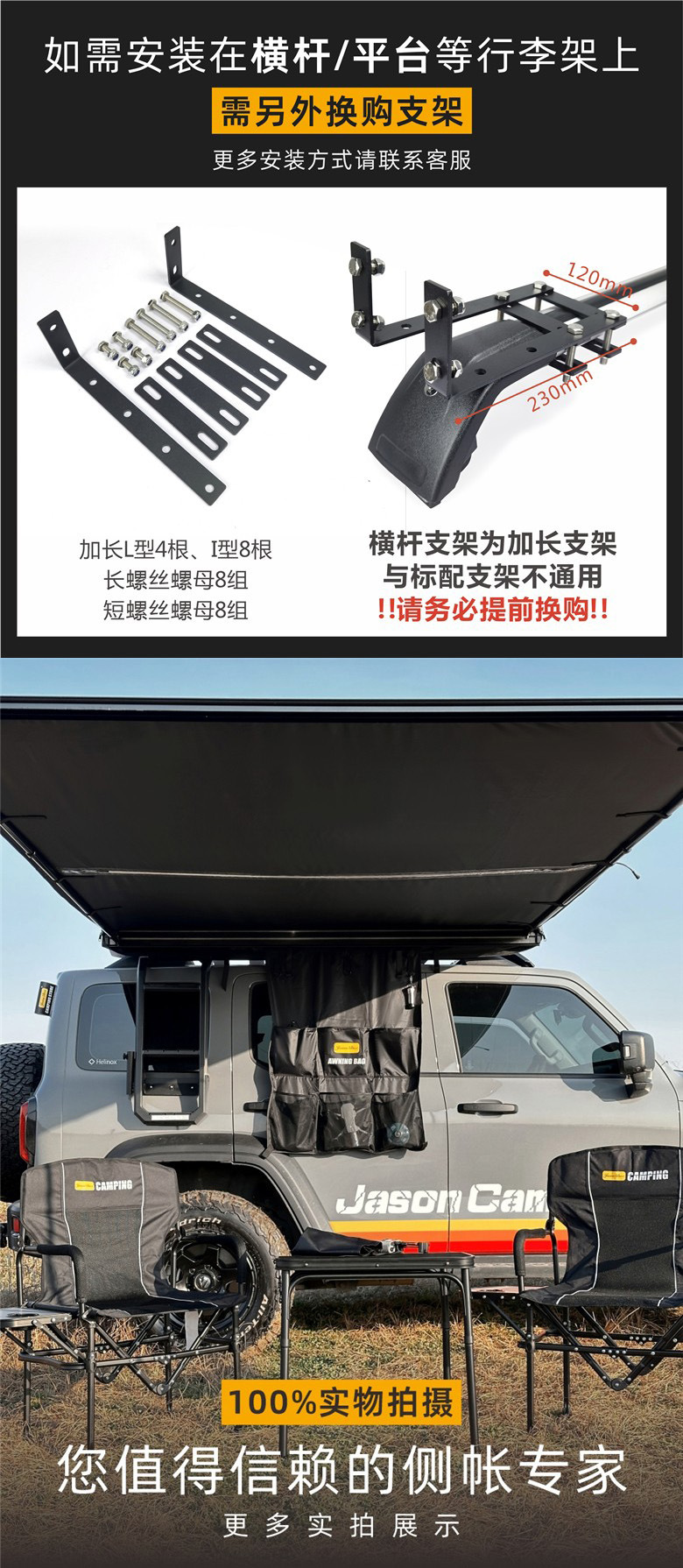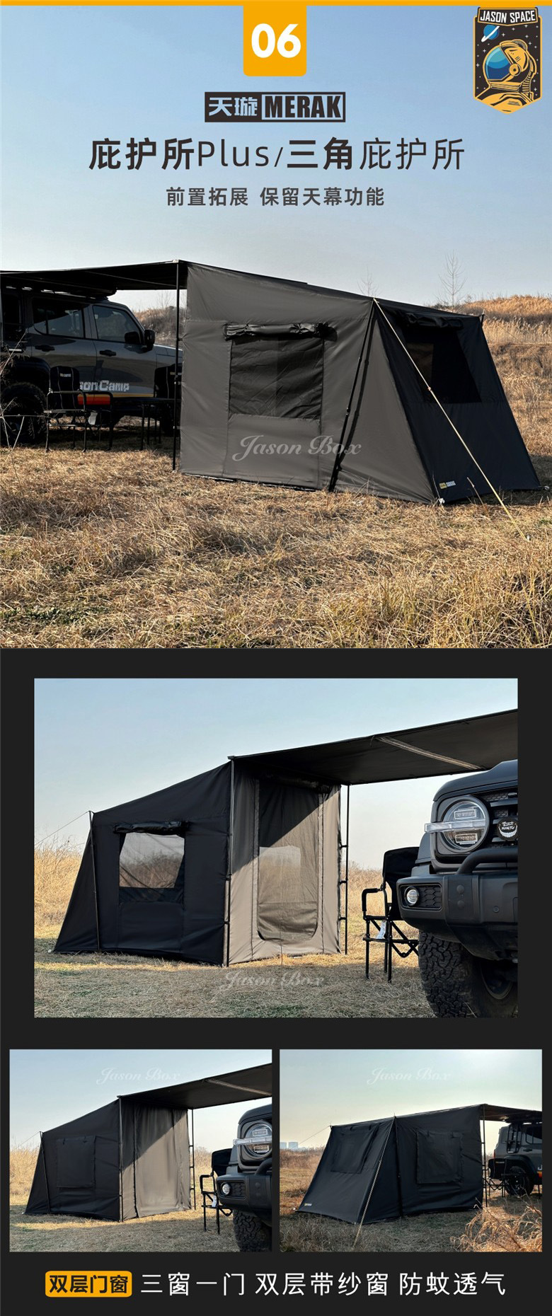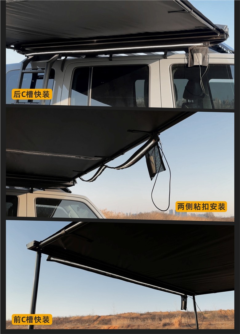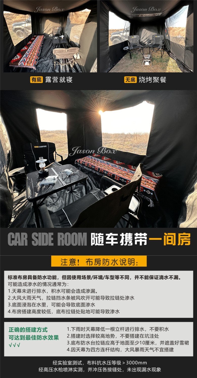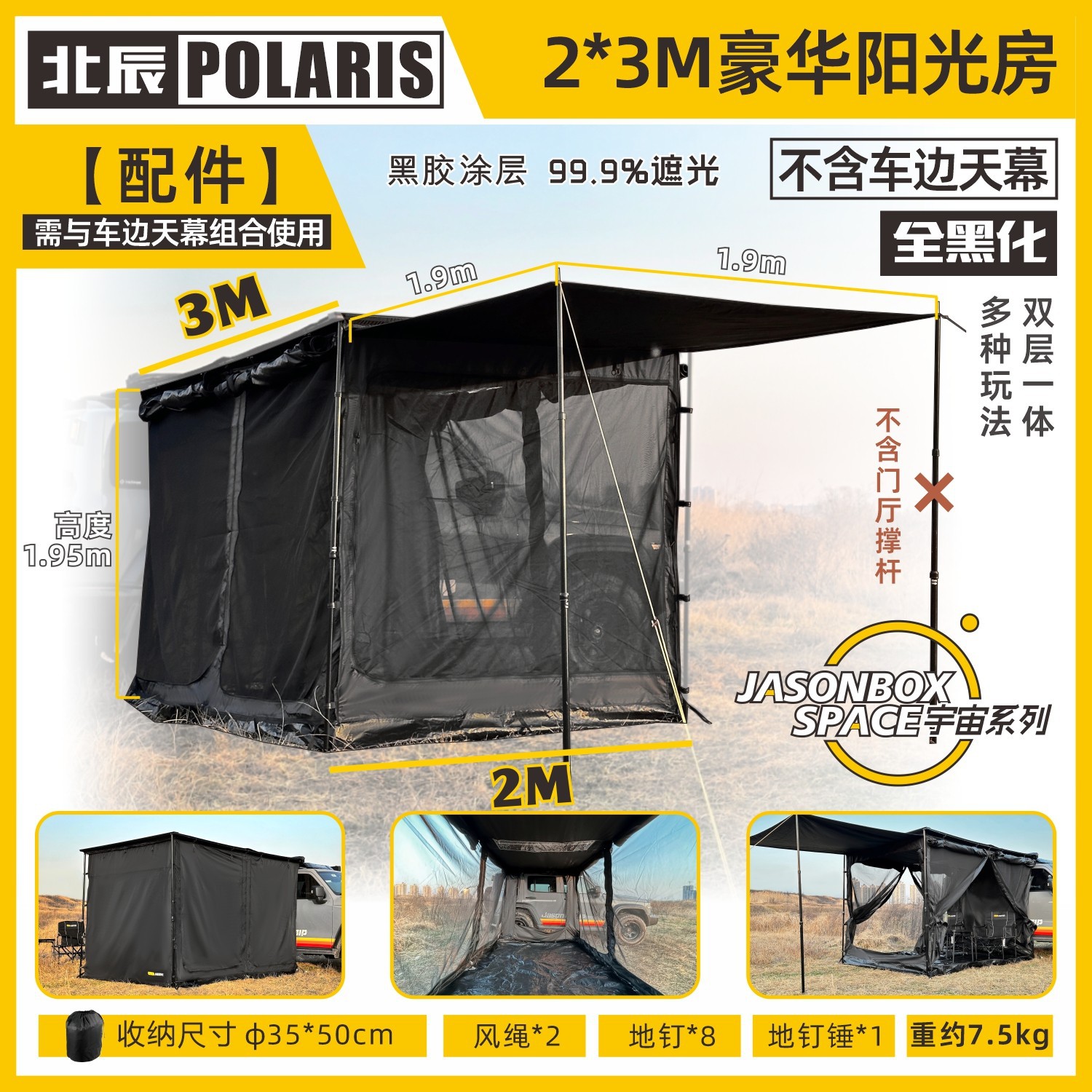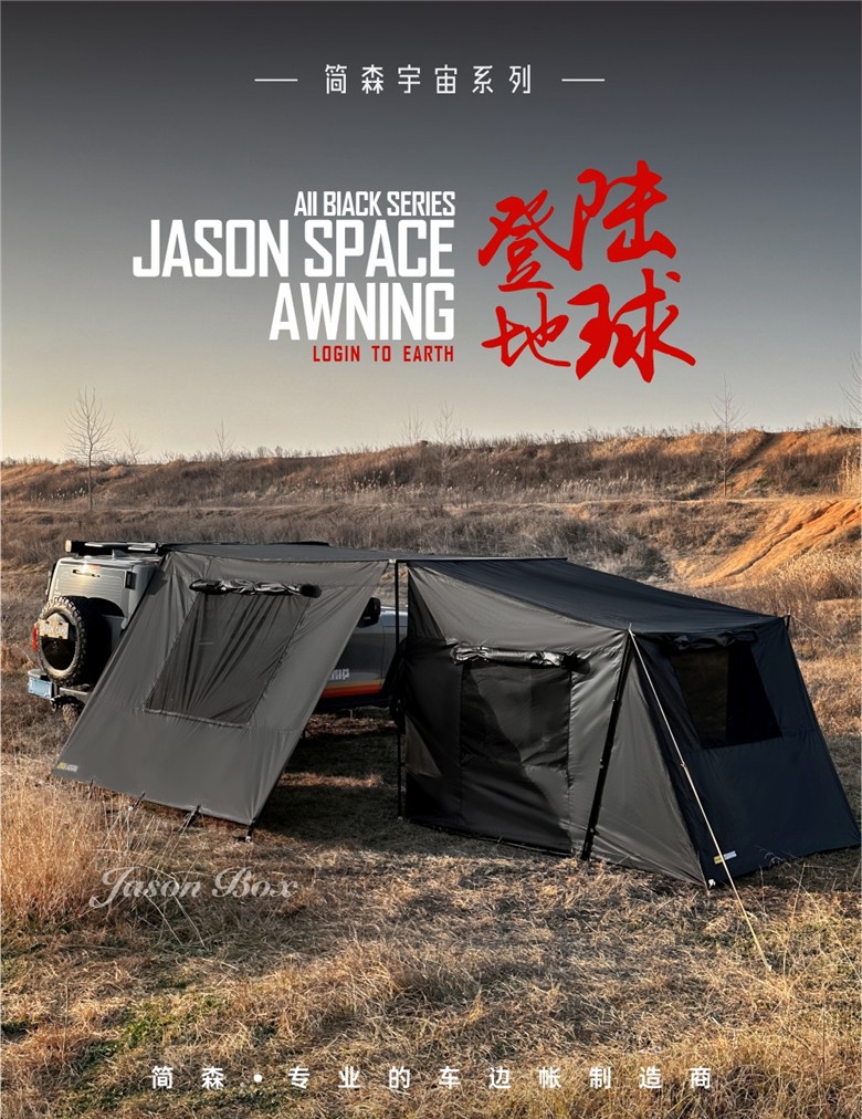 Jiansen 야외 검은 자동차 측면 텐트 검은 접착제 캐노피 텐트 알루미늄 사이드 텐트 오프로드 차양 캠핑 룸 자동차 우주