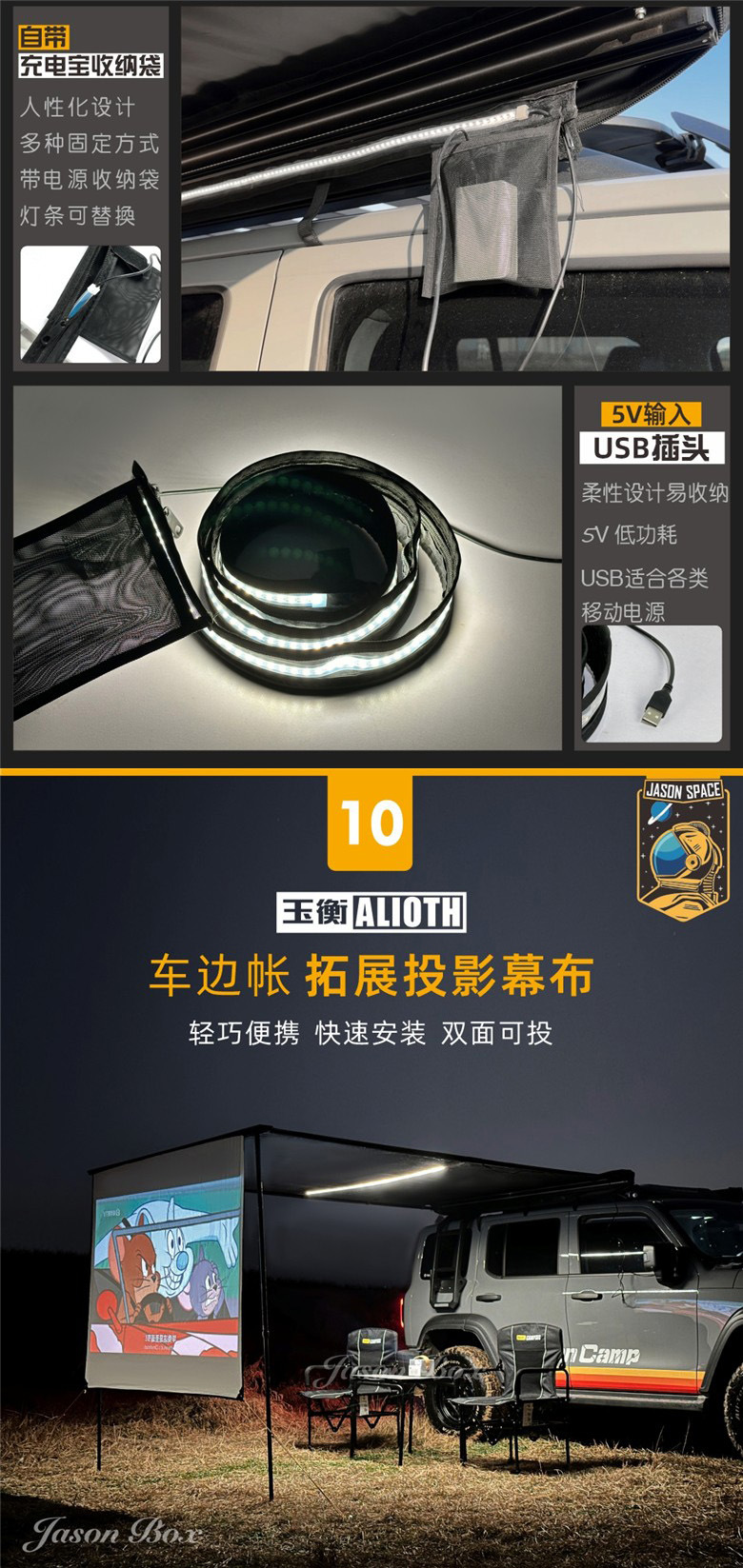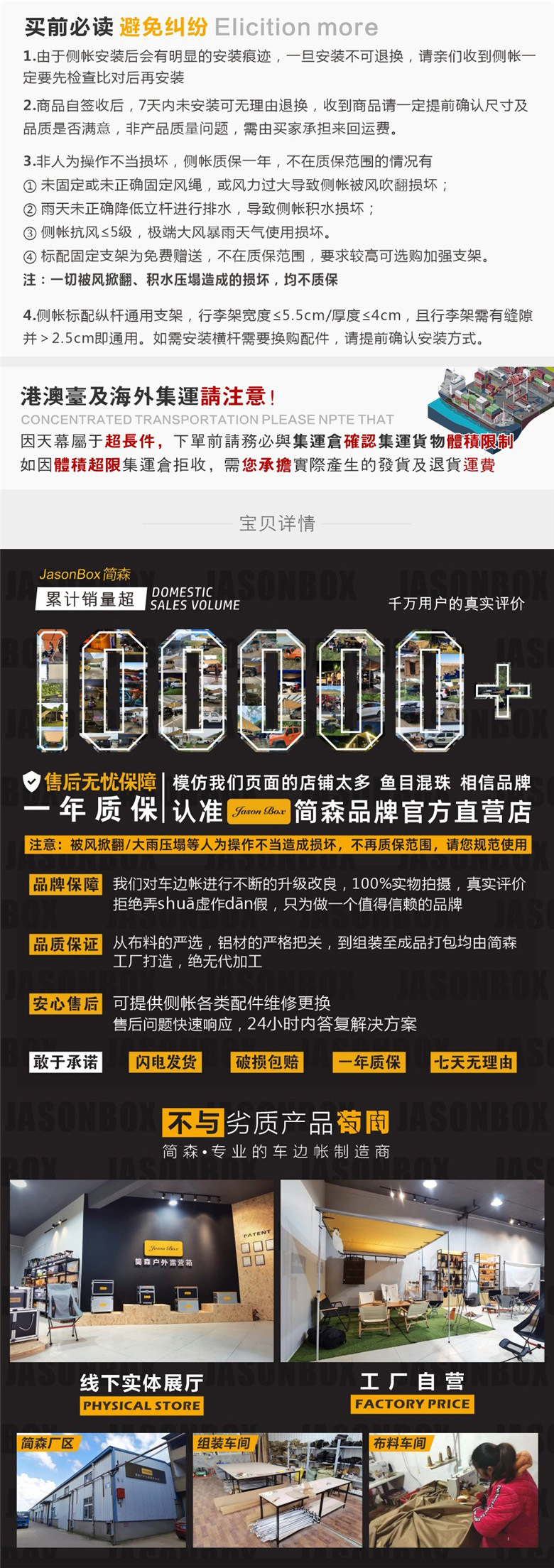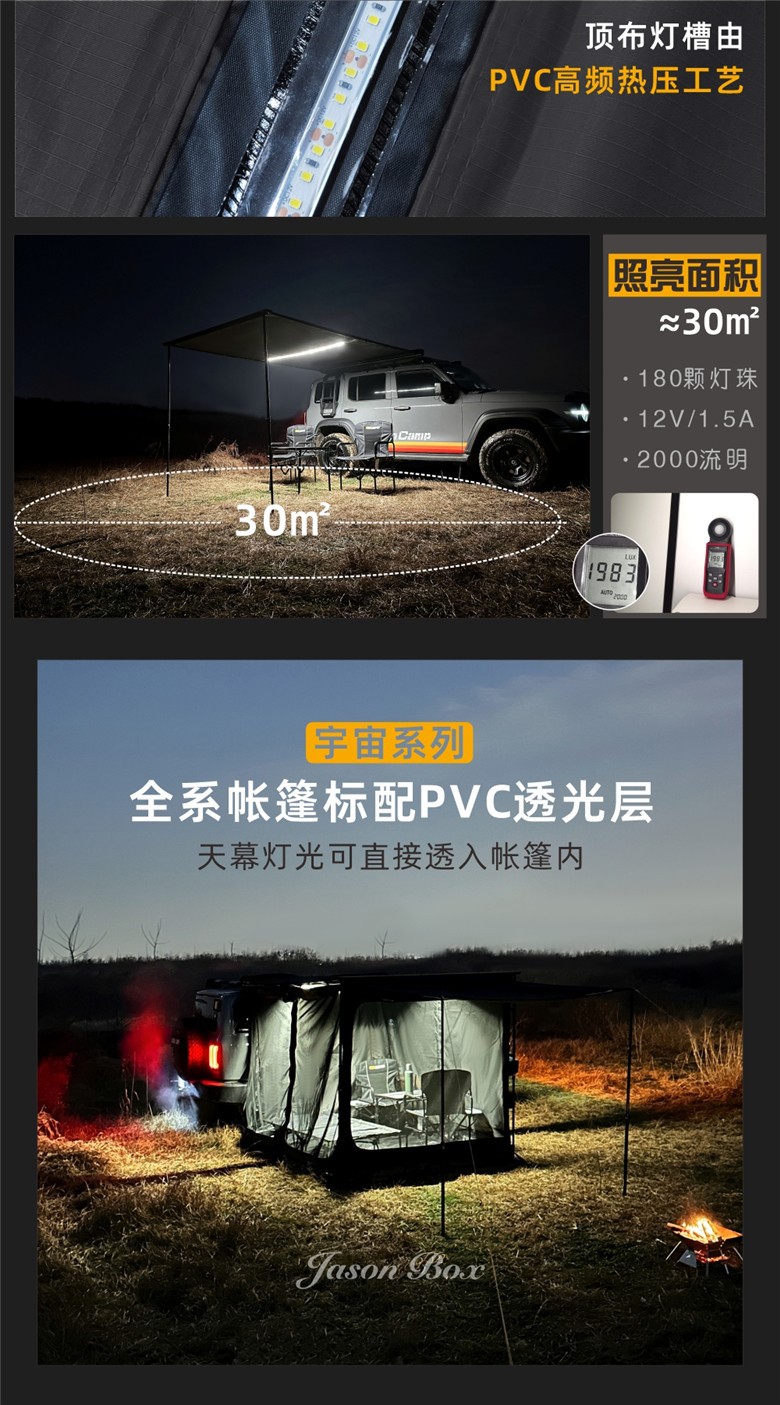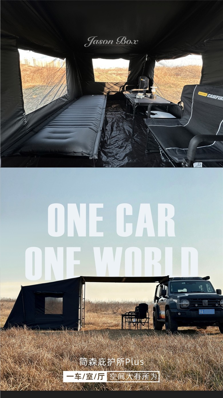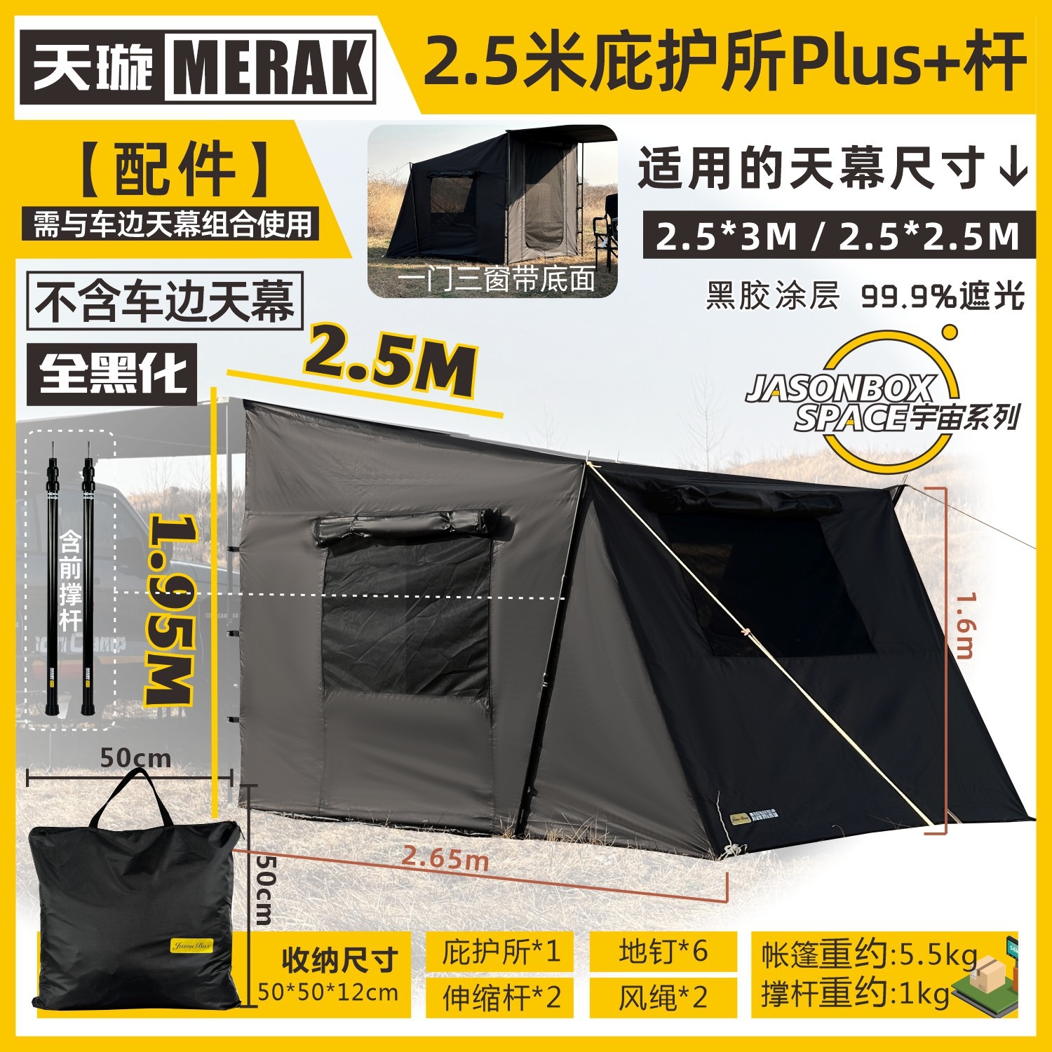 Jiansen 야외 검은 자동차 측면 텐트 검은 접착제 캐노피 텐트 알루미늄 사이드 텐트 오프로드 차양 캠핑 룸 자동차 우주