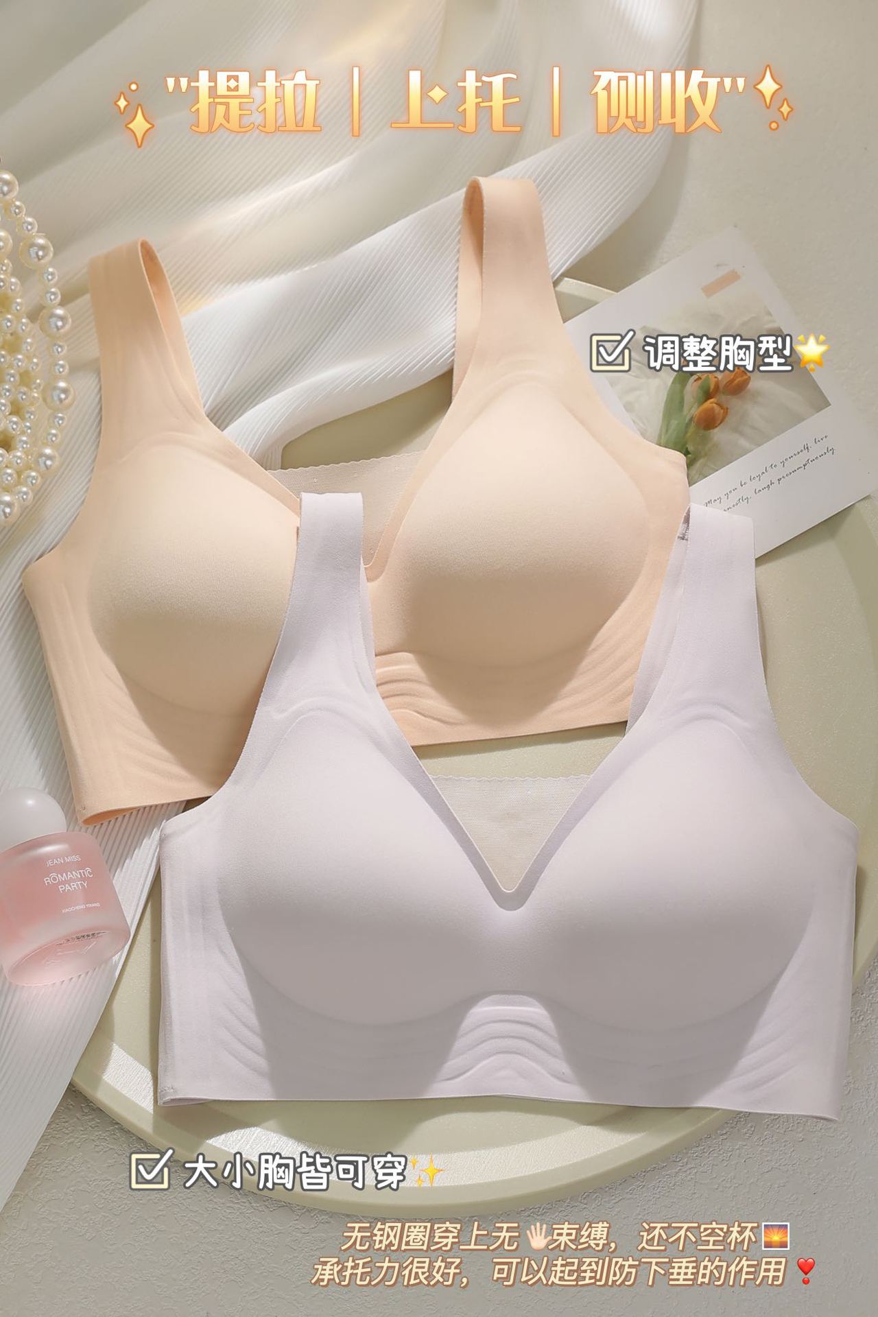 609 여름 새로운 원활한 속옷 여성 브래지어 조절 라이브 방송 큰 가슴 작은 얇은 통기성 푸시 업스토어 가기