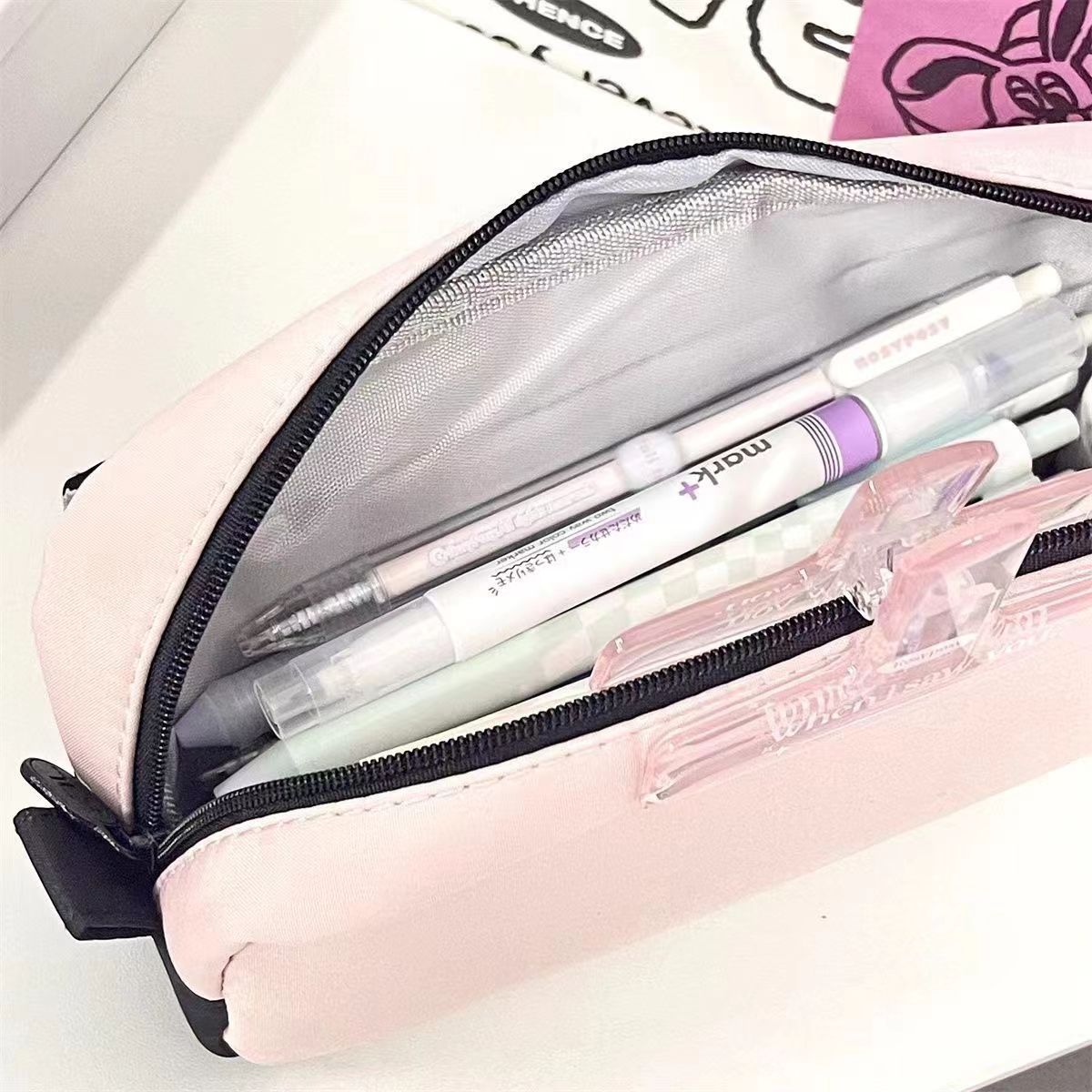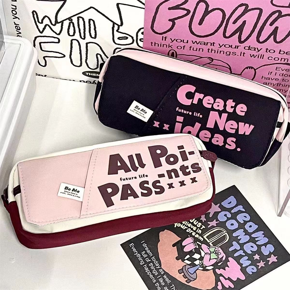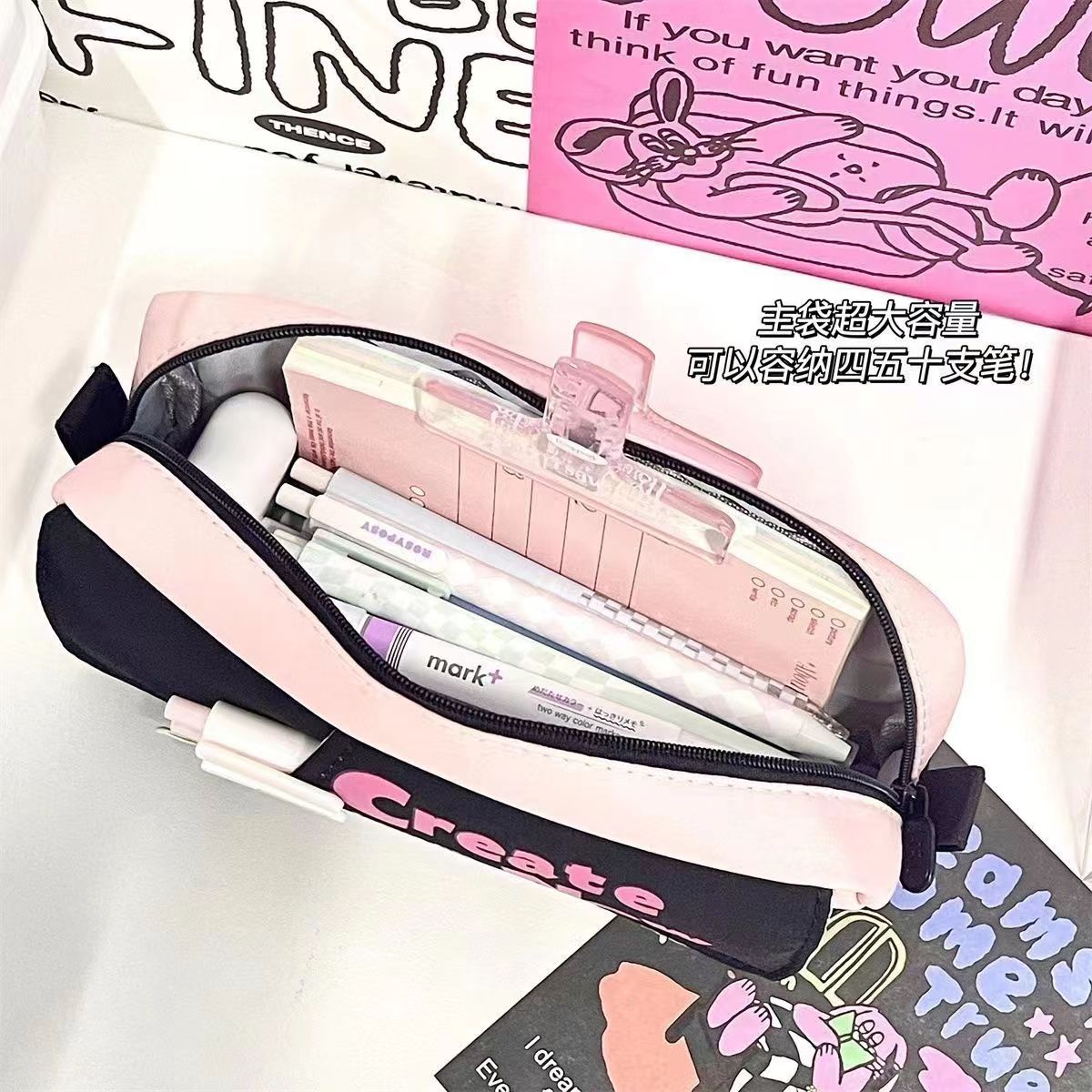 미국 복고풍 연필 케이스 높은 용량 지퍼 학생 더블 레이어 커플 연필 케이스 도파민 연필 케이스스토어 가기