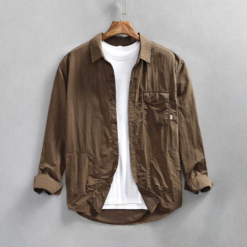 Z994 순수 컬러 봄과 가을 남성 캐주얼 긴팔 셔츠 원피스 배달스토어 가기