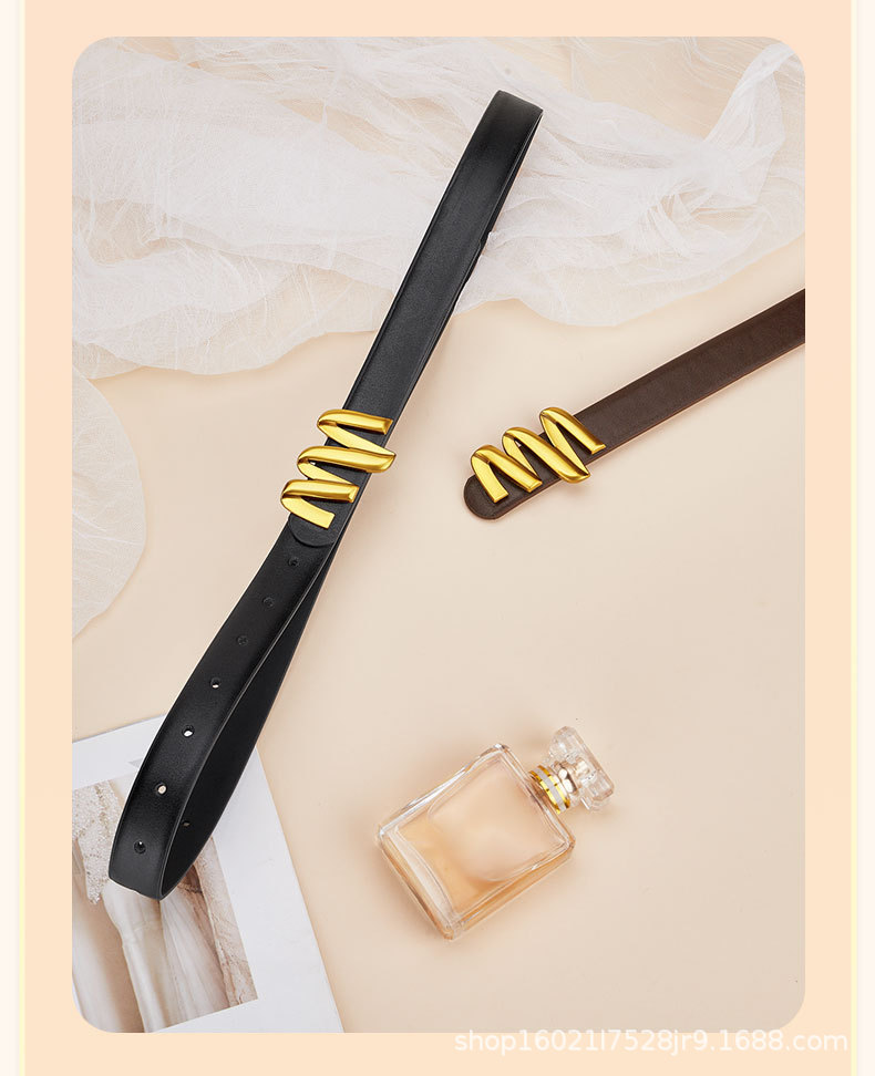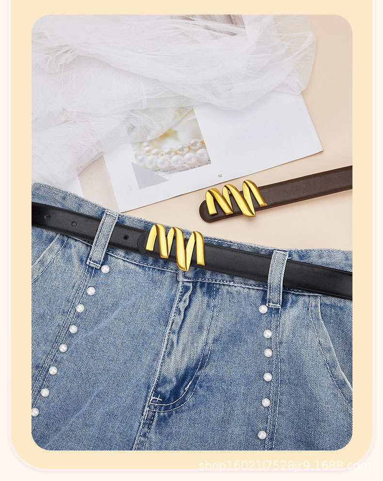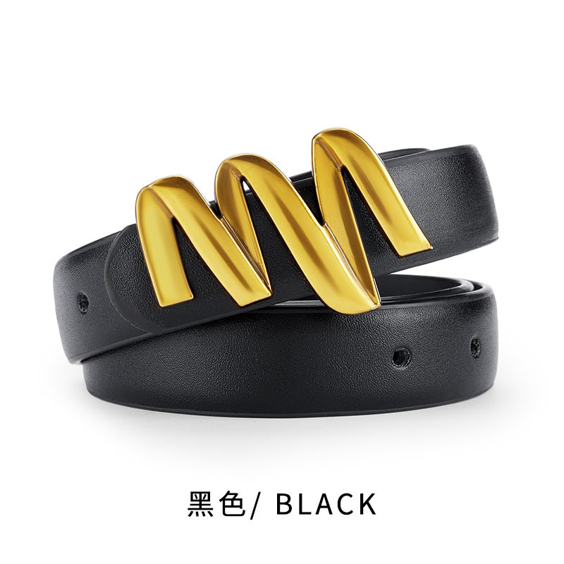 여성 벨트 2024 새로운 M 버클 패션 올 매치 트렌디 인 스타일 한국식 블랙 벨트 청바지 벨트