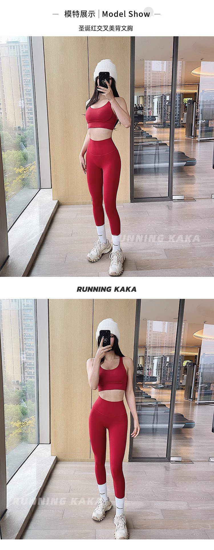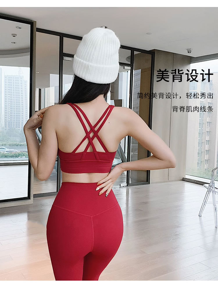 • [중국 빨간 세트] [뷰티 백 브라 + 하이 허리 요가 바지]]