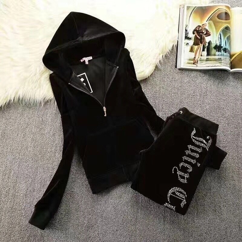 2023 년 가을과 겨울 유럽과 미국의 골드 벨벳 크라운 힌트 편지 캐주얼 스포츠 세트 바지스토어 가기