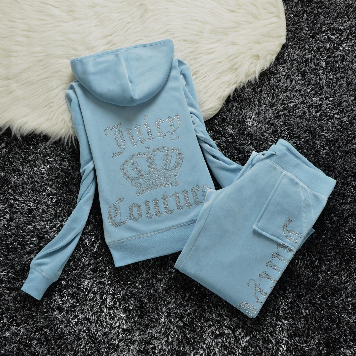 2023 년 가을과 겨울 유럽과 미국의 골드 벨벳 크라운 힌트 편지 캐주얼 스포츠 세트 바지