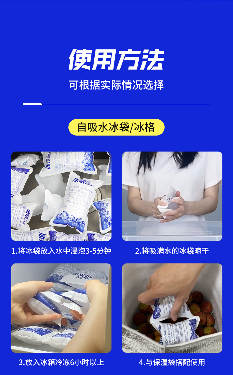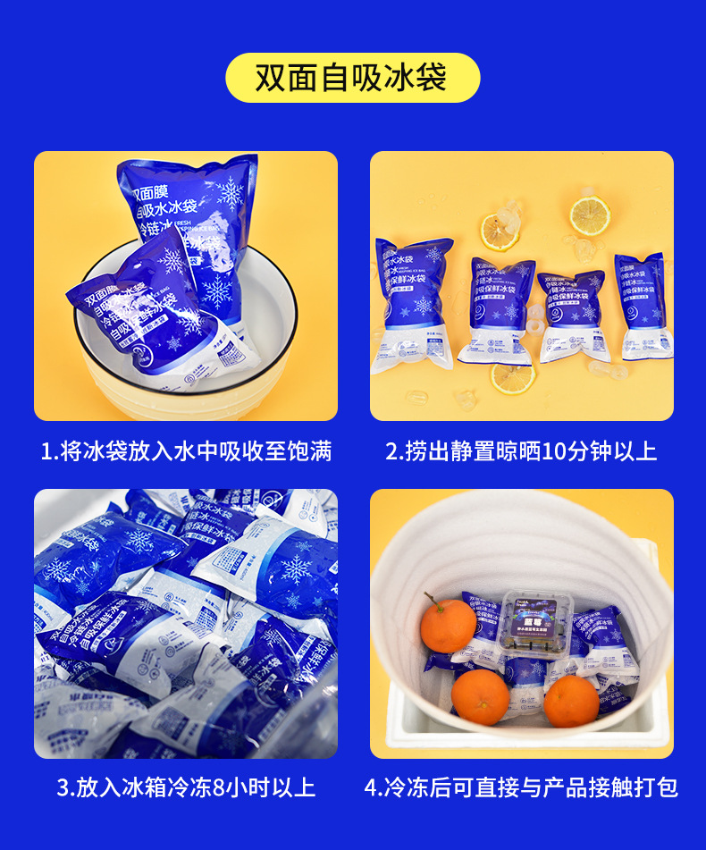 자체 흡수성 아이스 백 제조 업체 식품 보존 휴대용 재고 냉동 냉각 특급 운송 일회용 아이스 백 사용자 정의스토어 가기