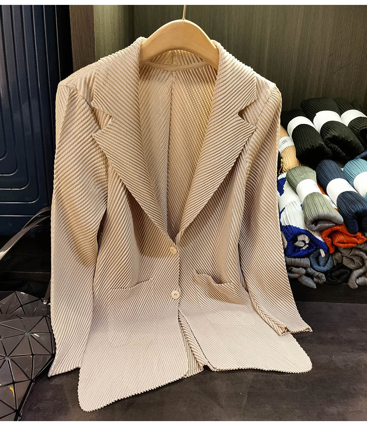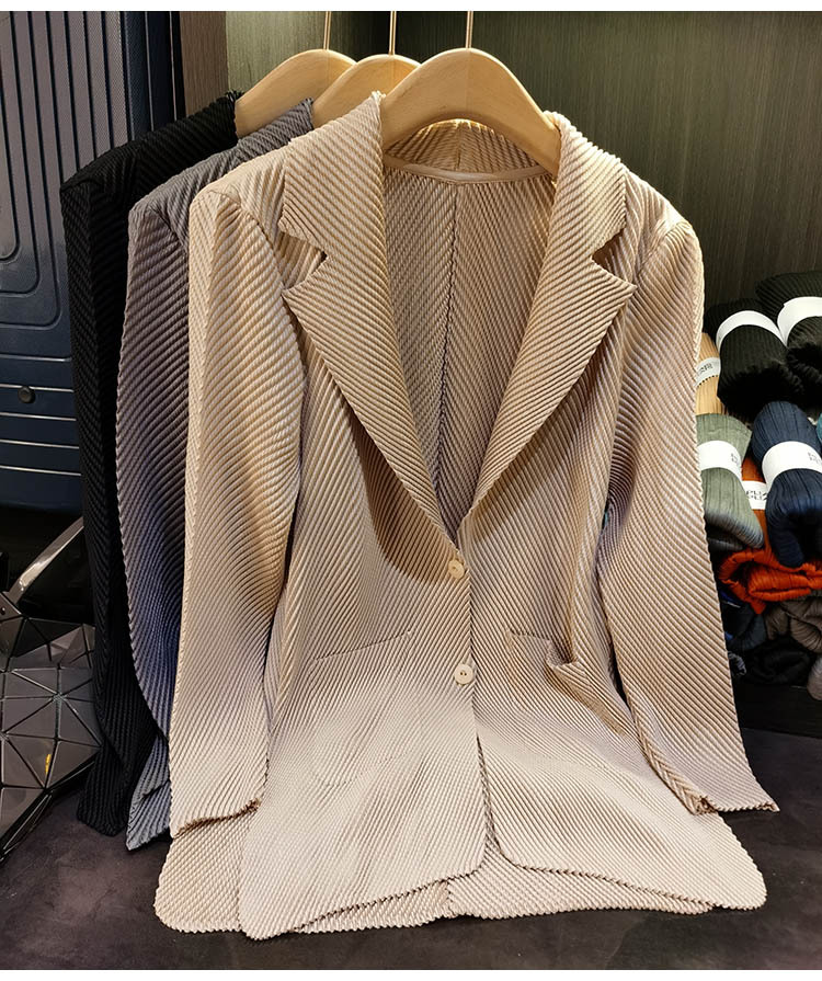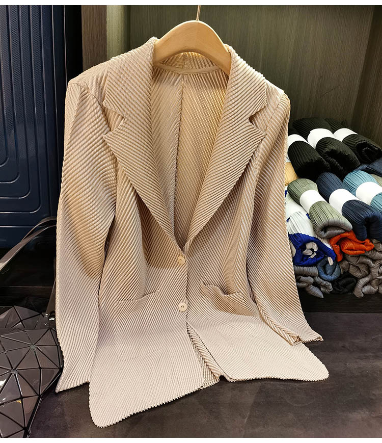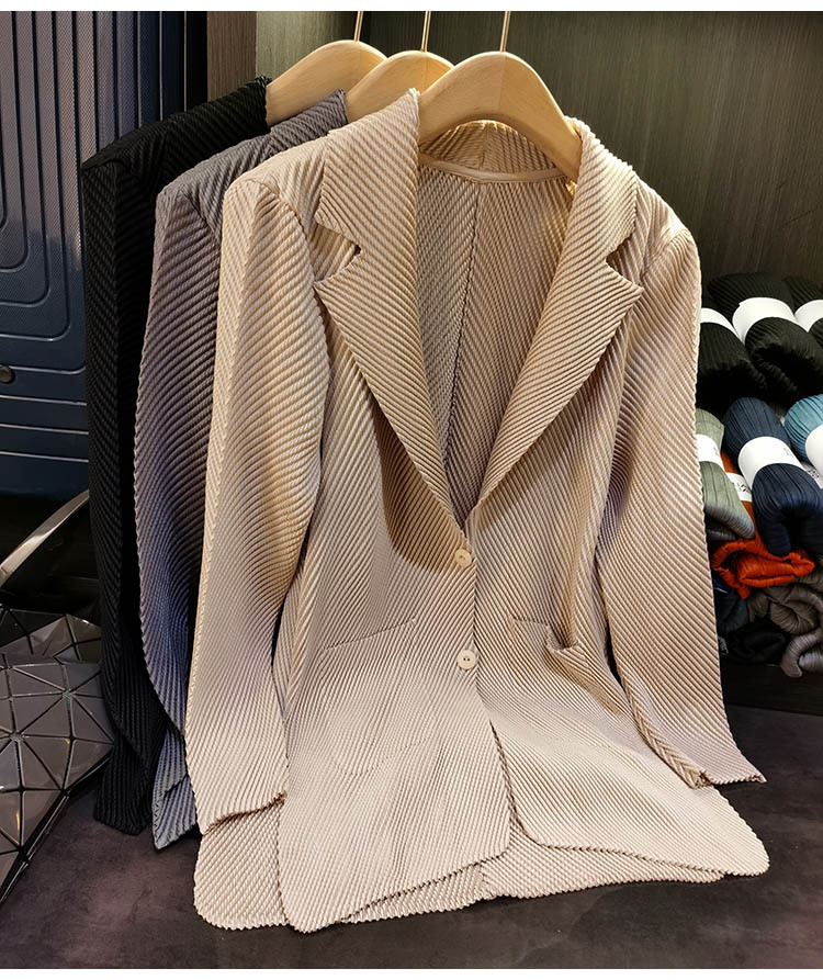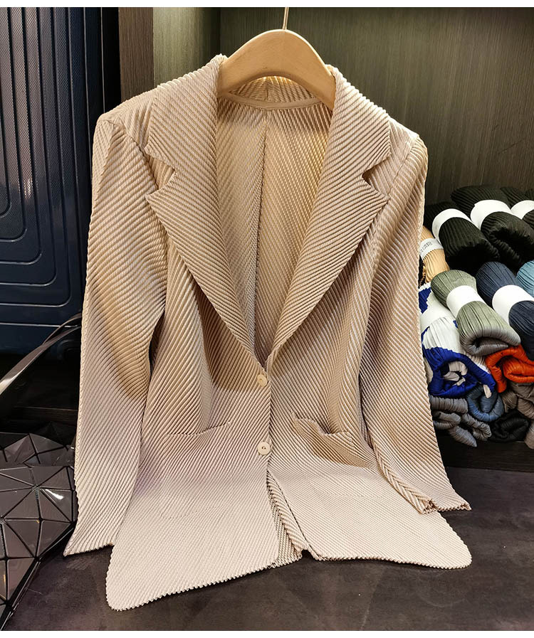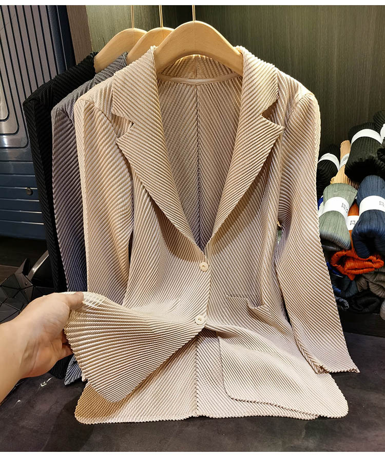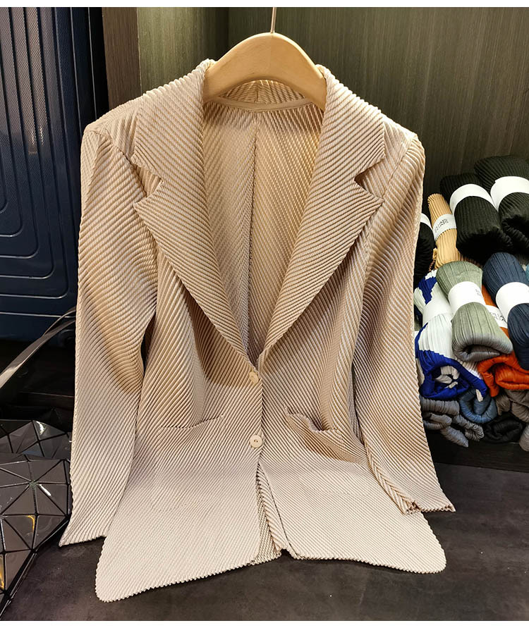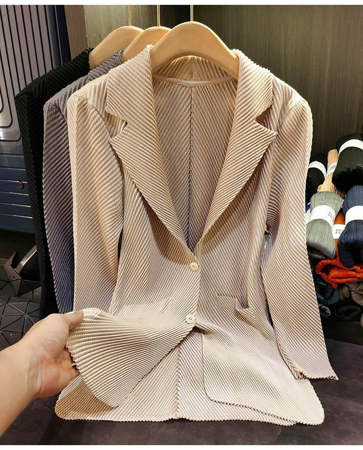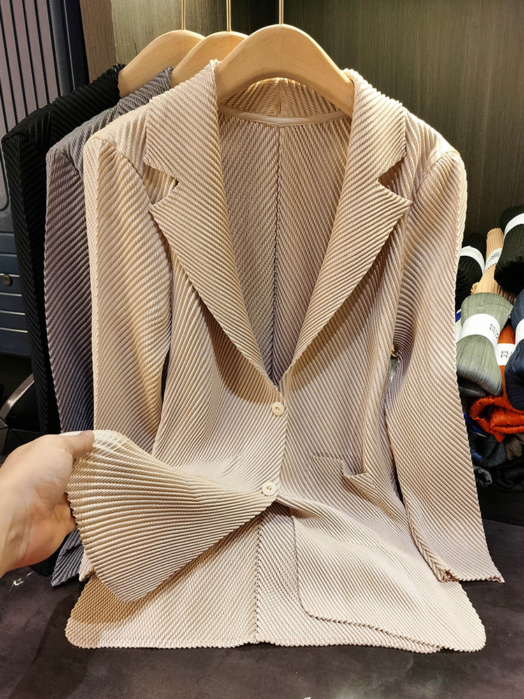 심플한 솔리드 컬러 드래곤 스케일 플리츠 블레이저, 우아한 통근 스타일, 투버튼 긴팔 가디건, 여성 가을 신상스토어 가기