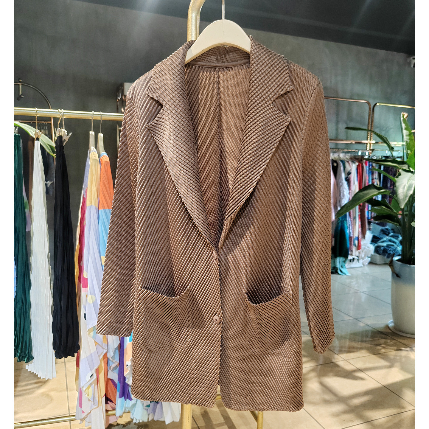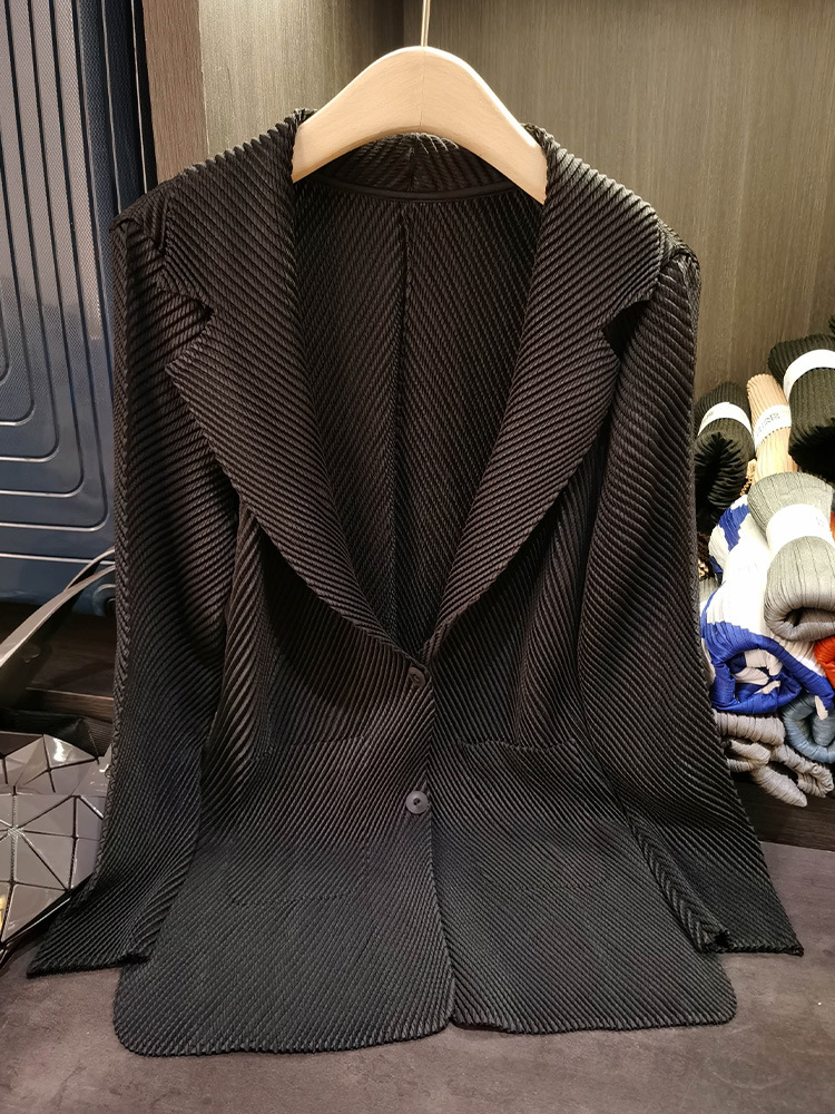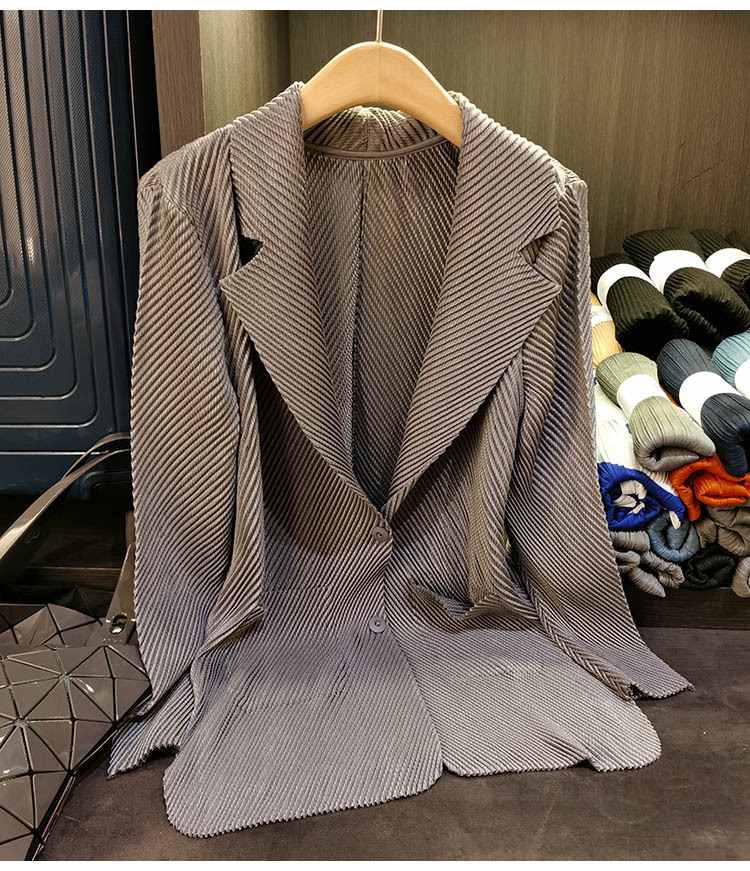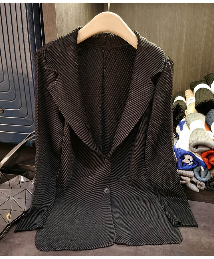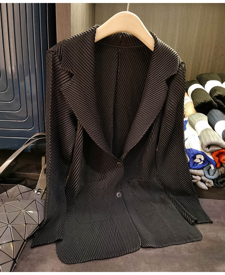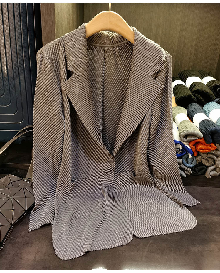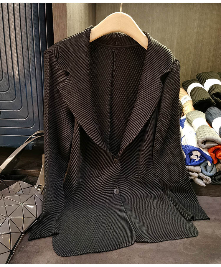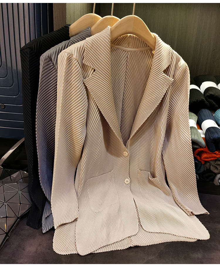 심플한 솔리드 컬러 드래곤 스케일 플리츠 블레이저, 우아한 통근 스타일, 투버튼 긴팔 가디건, 여성 가을 신상스토어 가기