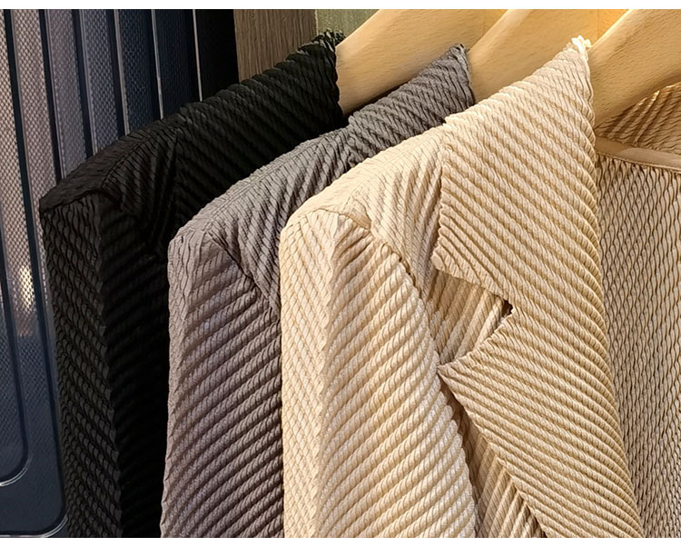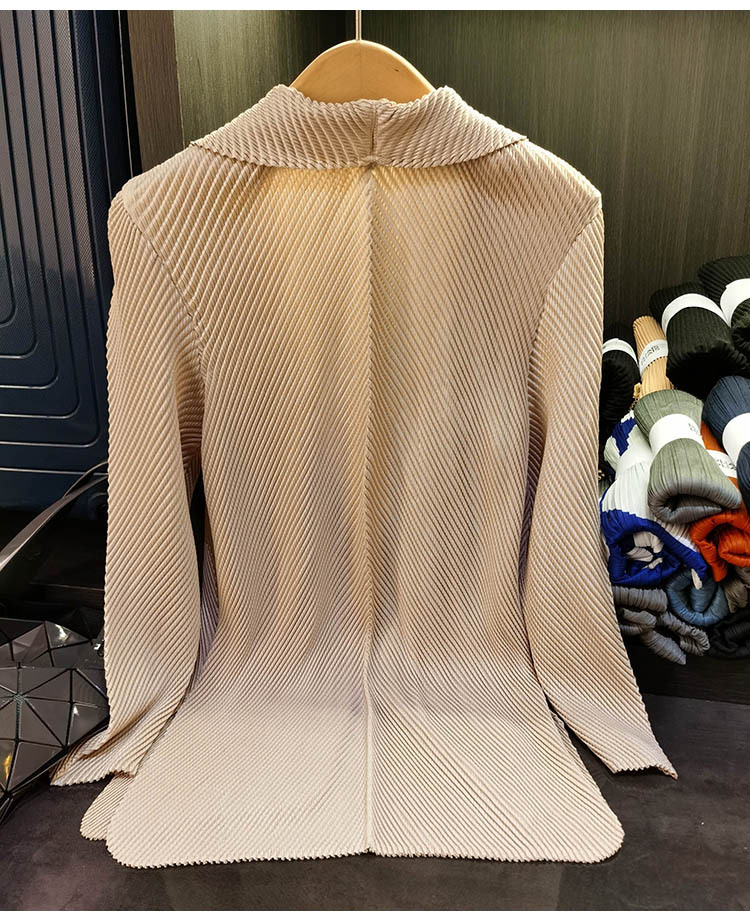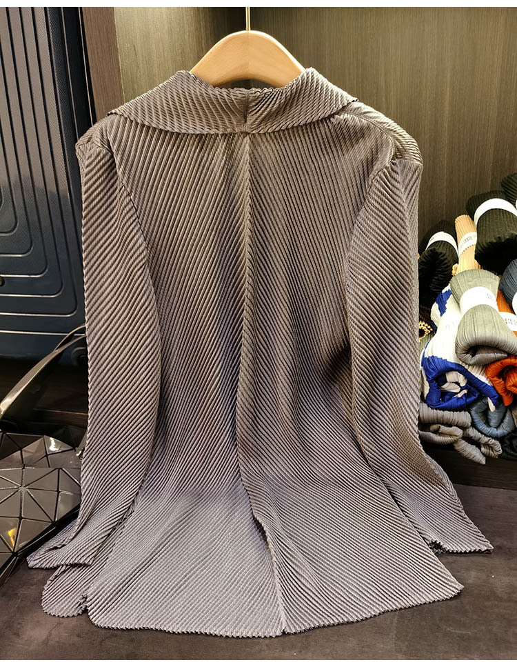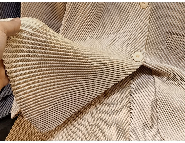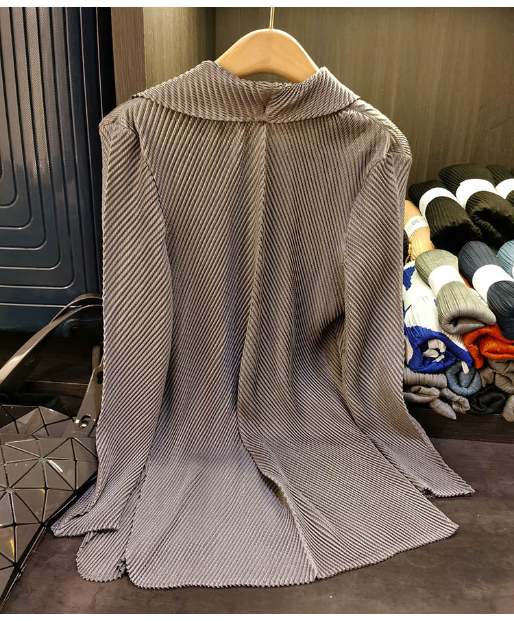 심플한 솔리드 컬러 드래곤 스케일 플리츠 블레이저, 우아한 통근 스타일, 투버튼 긴팔 가디건, 여성 가을 신상