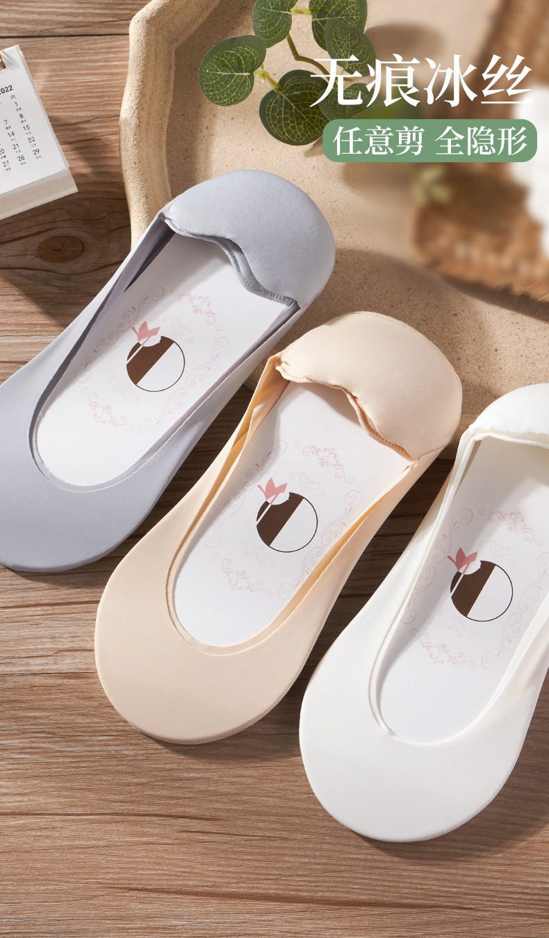 스폰지 패드 보이지 않는 양말 여성용 아이스 실크 타월 바닥 땀 흡수성 통기성 미끄럼 방지 실리콘 주지 공장 보트 양말 도매스토어 가기