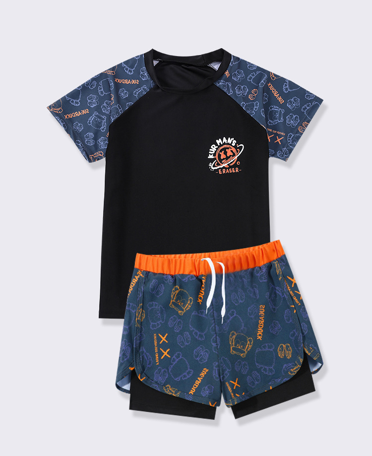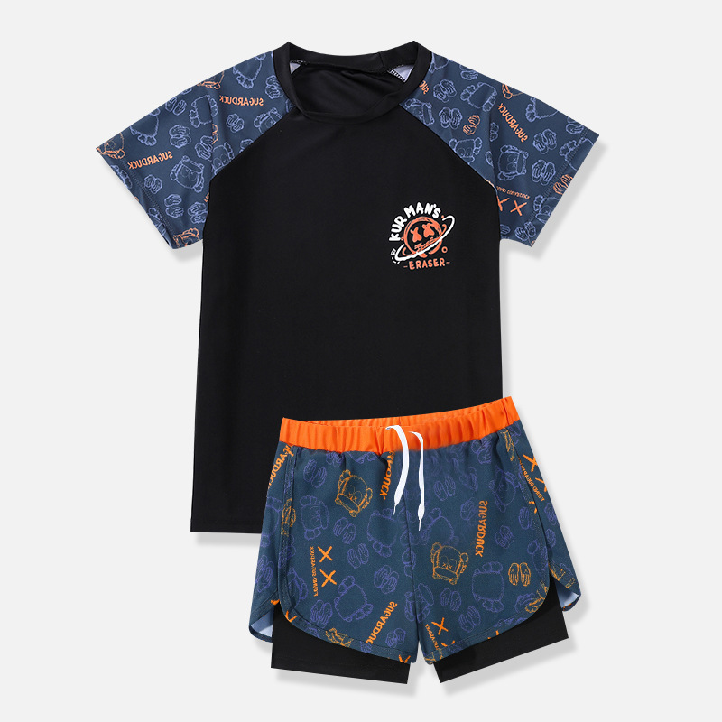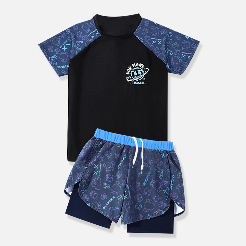 어린이 수영복 소년 투피스 2024 새 소년 수영복 중대형 10 대 겨울 더블 레이어 수영 트렁크 세트 장비