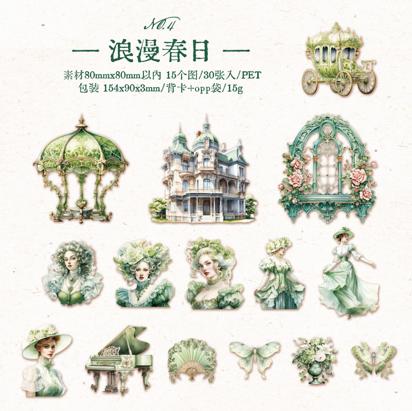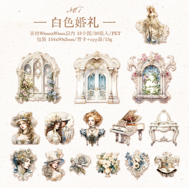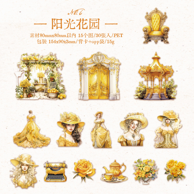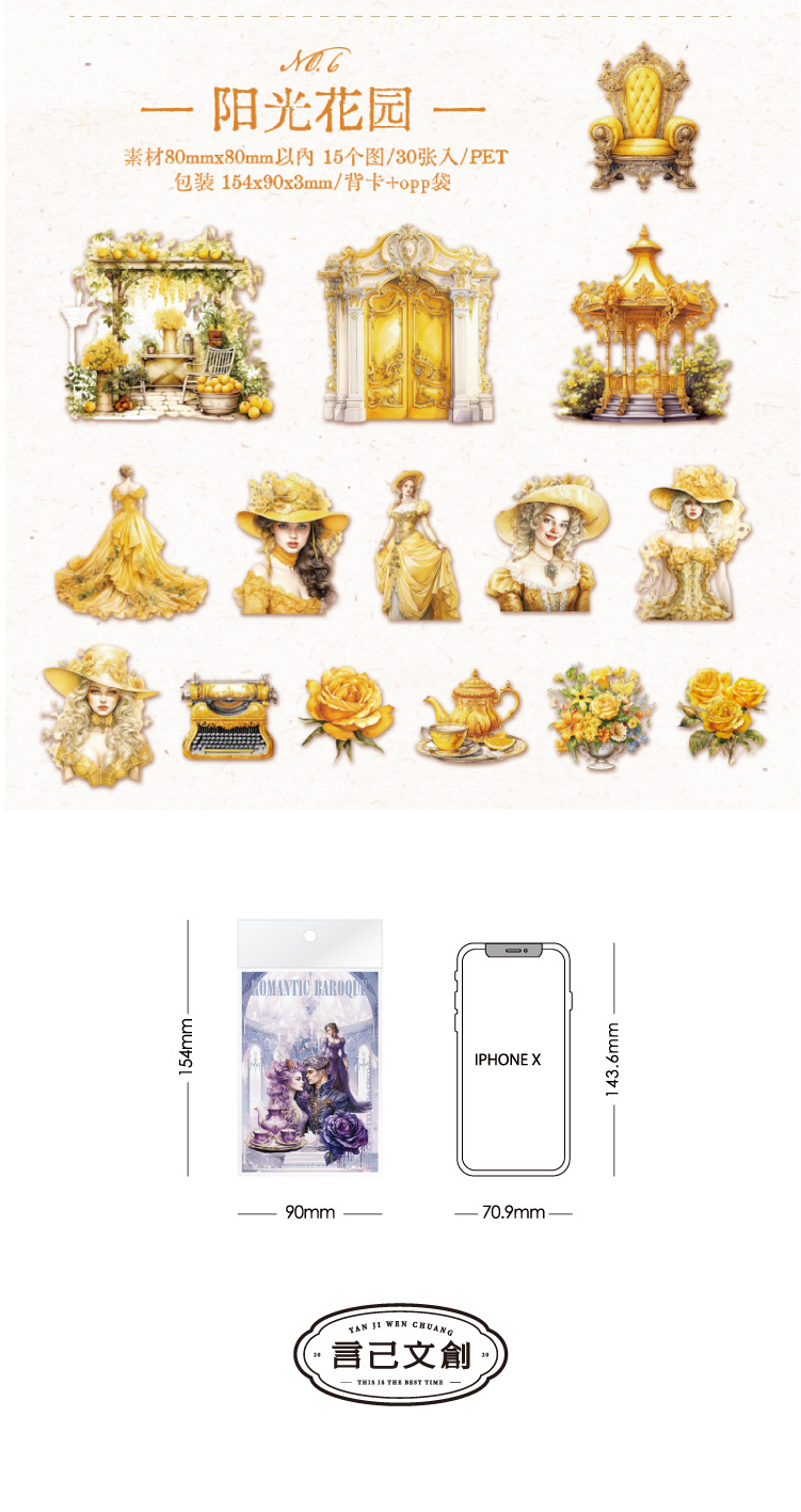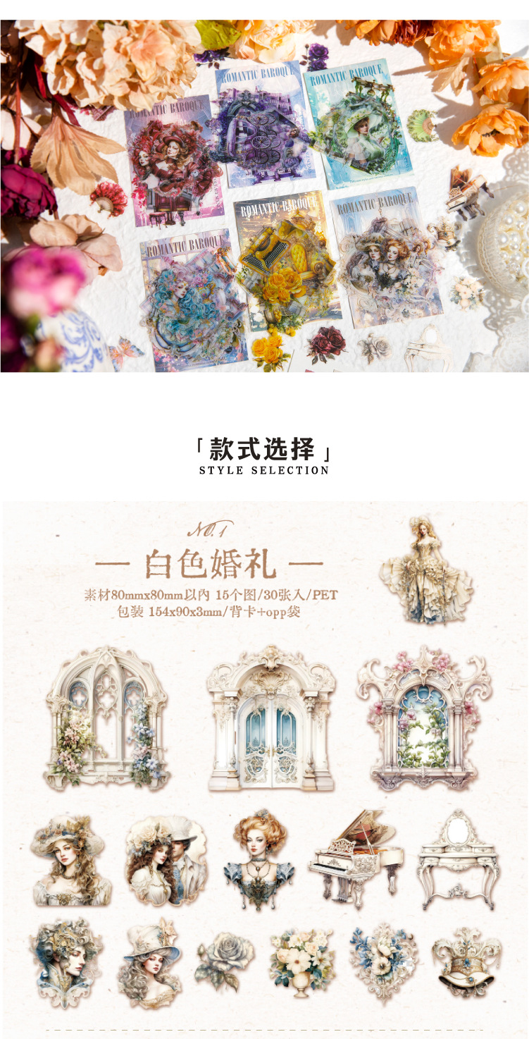 Yanji PET 스티커 패키지 로맨틱 바로크 시리즈 복고풍 저널 소재 장식 콜라주 스티커 6 모델