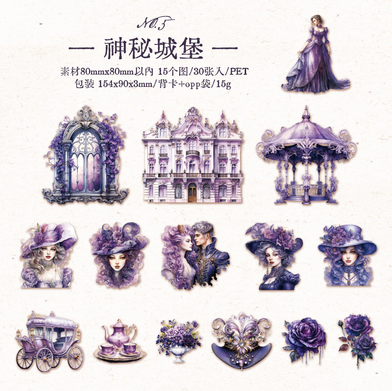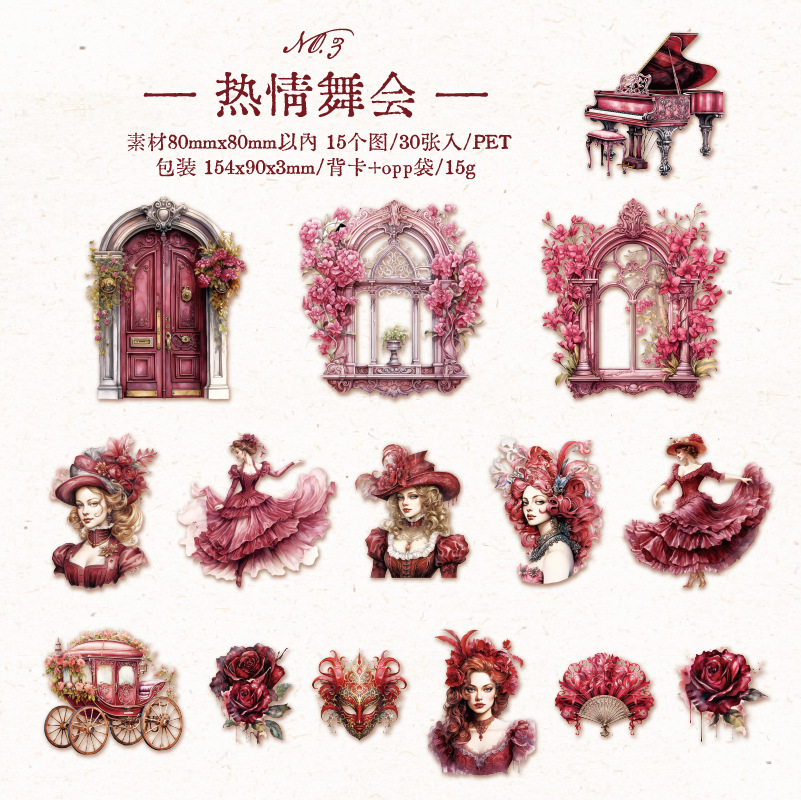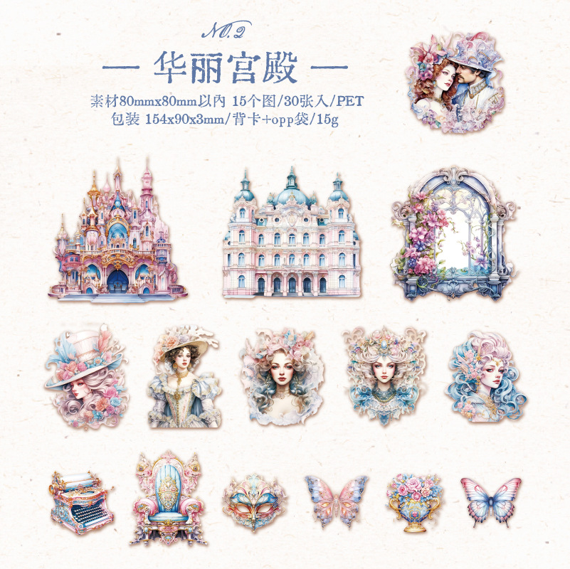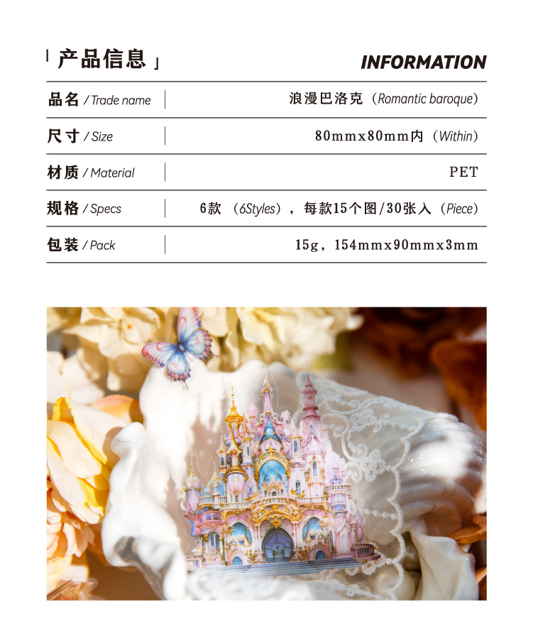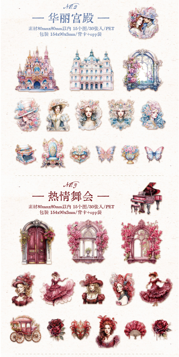 Yanji PET 스티커 패키지 로맨틱 바로크 시리즈 복고풍 저널 소재 장식 콜라주 스티커 6 모델