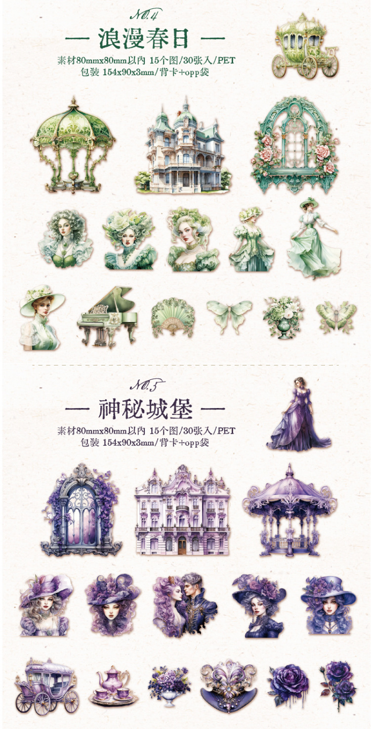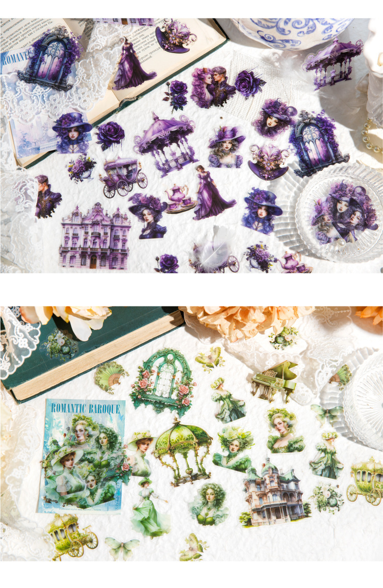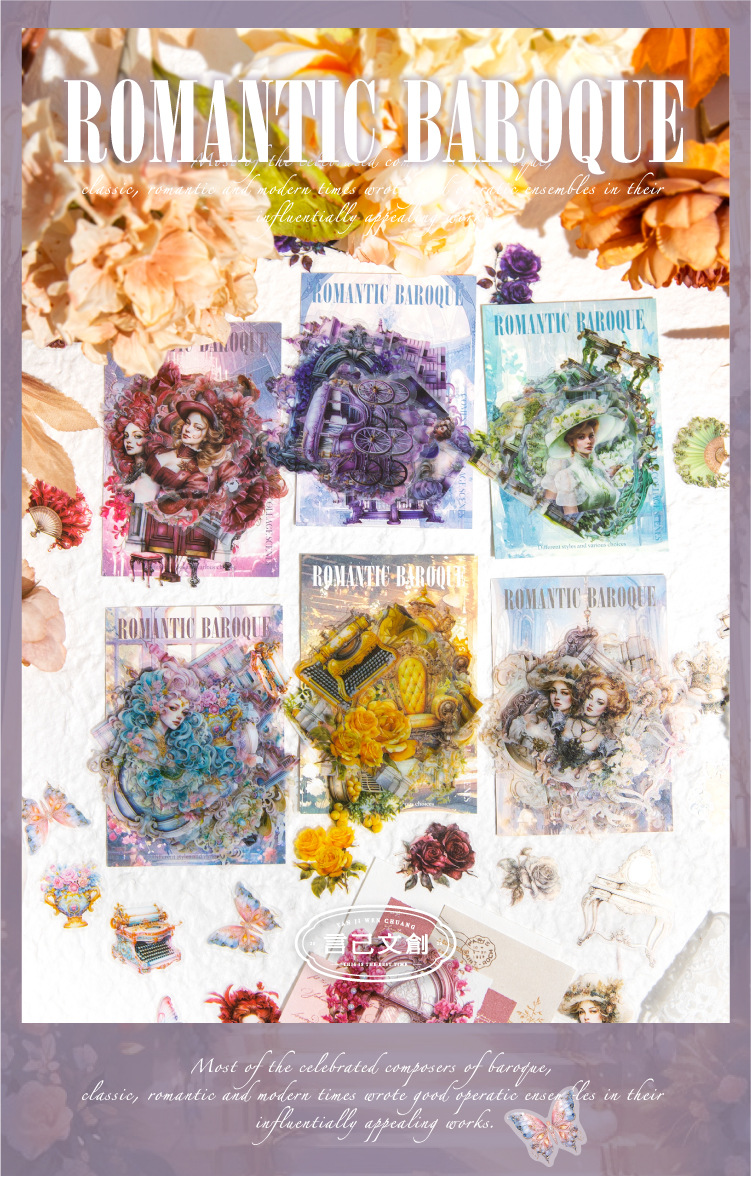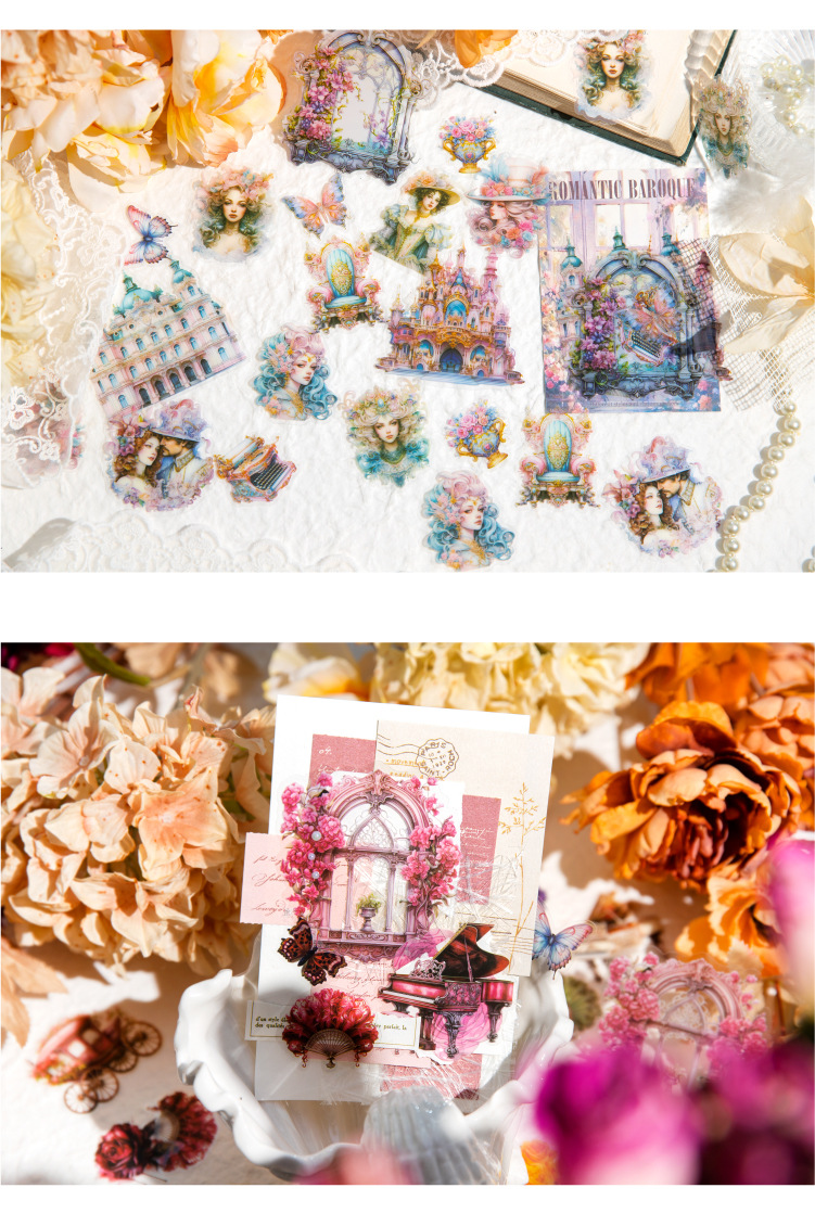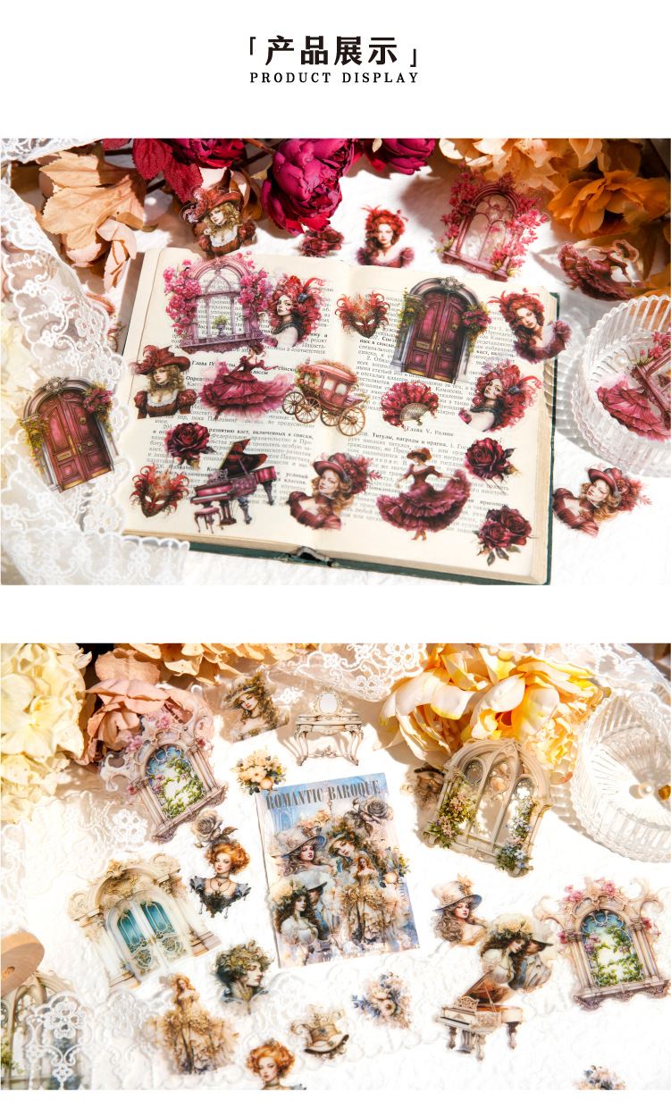 Yanji PET 스티커 패키지 로맨틱 바로크 시리즈 복고풍 저널 소재 장식 콜라주 스티커 6 모델스토어 가기