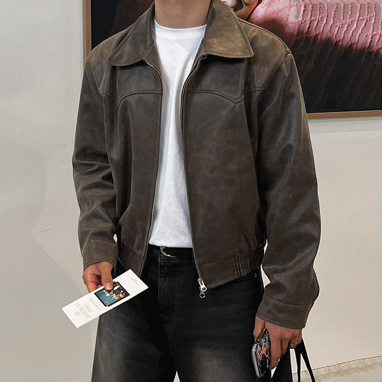 MYQ 미국 복고풍 짧은 가죽 코트 남성용 봄 느슨한 옷깃 코트 한국식 트렌디 한 고급 재킷스토어 가기