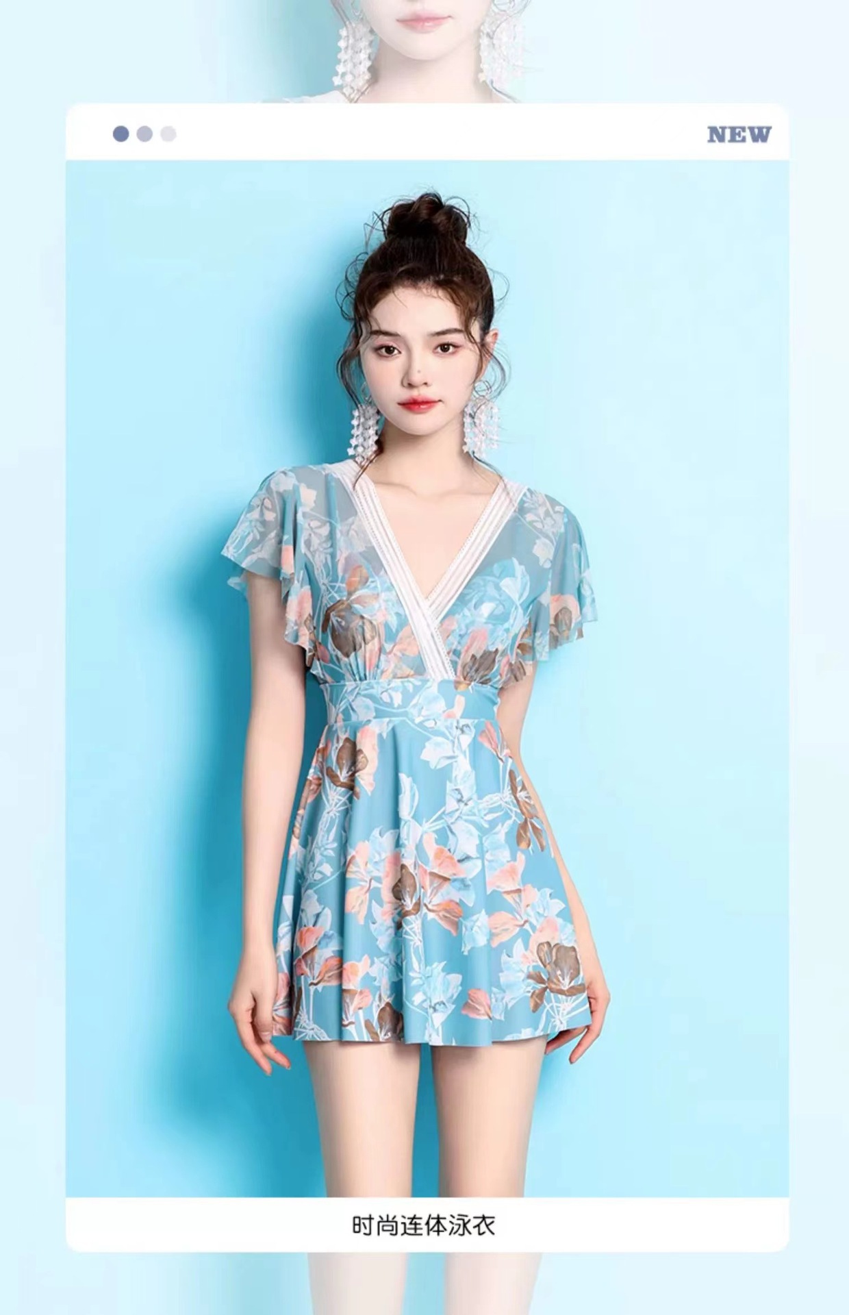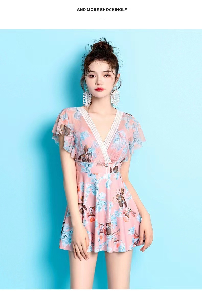 수영복 여성 원피스 패션 프랑스 인쇄 새로운 원피스 스틸 지원 브래지어 신선한 보수적 인 수영복 온천
