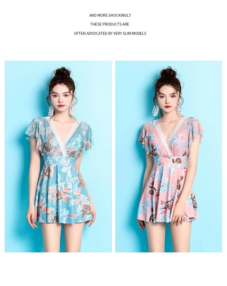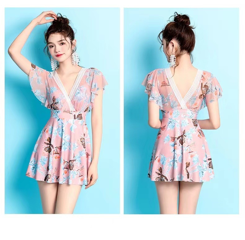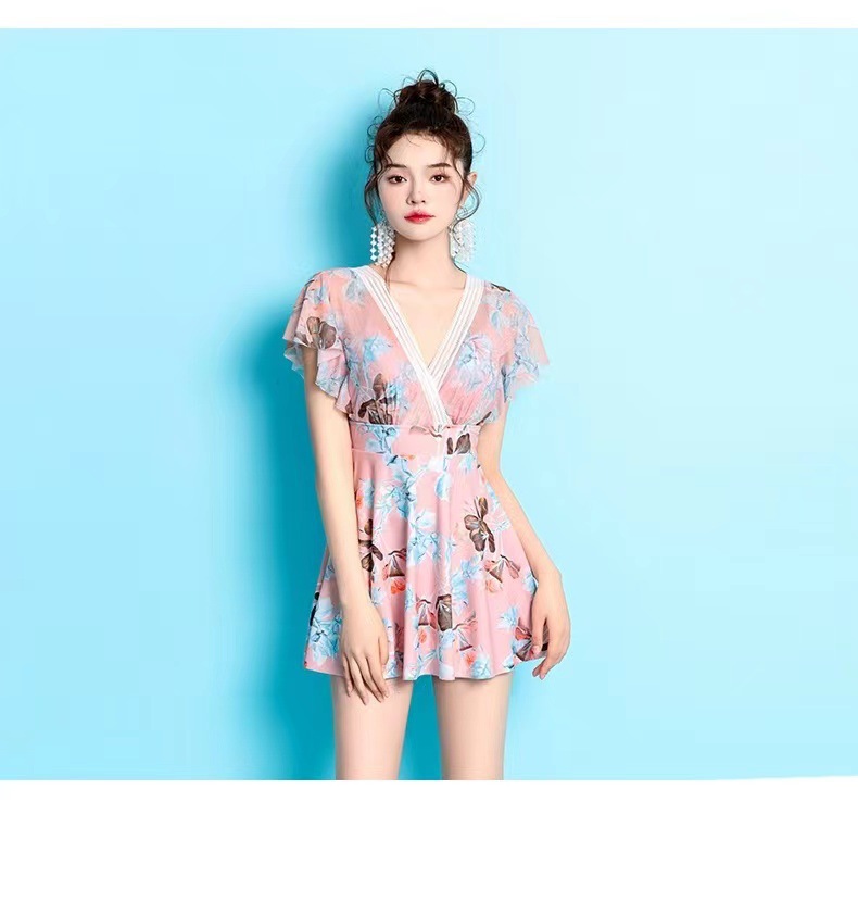 수영복 여성 원피스 패션 프랑스 인쇄 새로운 원피스 스틸 지원 브래지어 신선한 보수적 인 수영복 온천스토어 가기